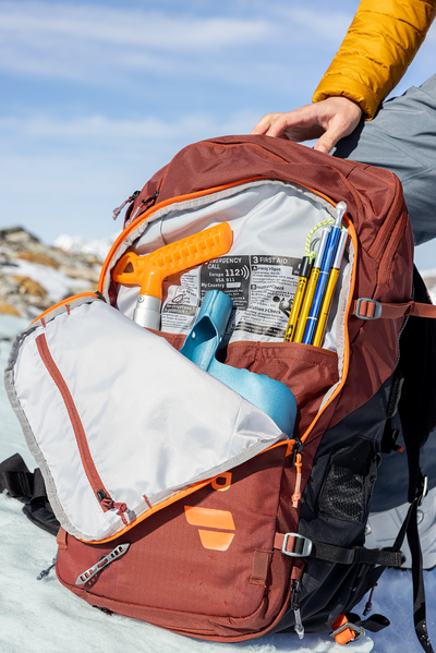 -          Der Skitouren Airbag-Rucksack bietet einen hohen Tragekomfort, viel Bewegungsfreiheit und durchdachte