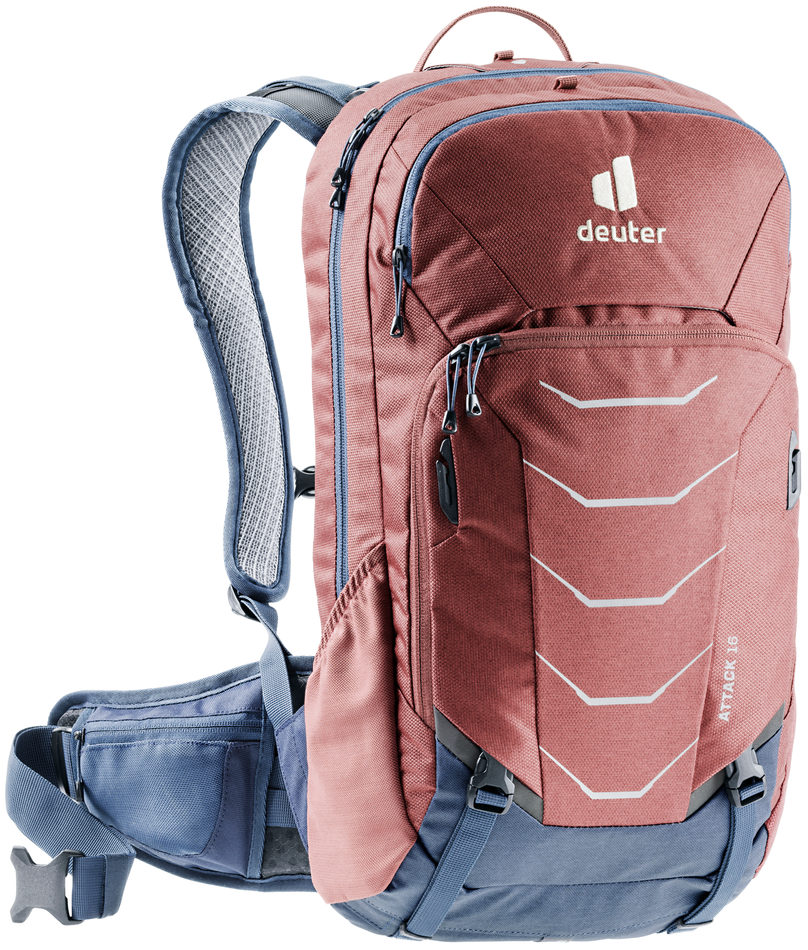 Hip fins set far inside and high fix the Attack directly under the ribcage - on steep descents or steps, the backpack cannot slide upwards.