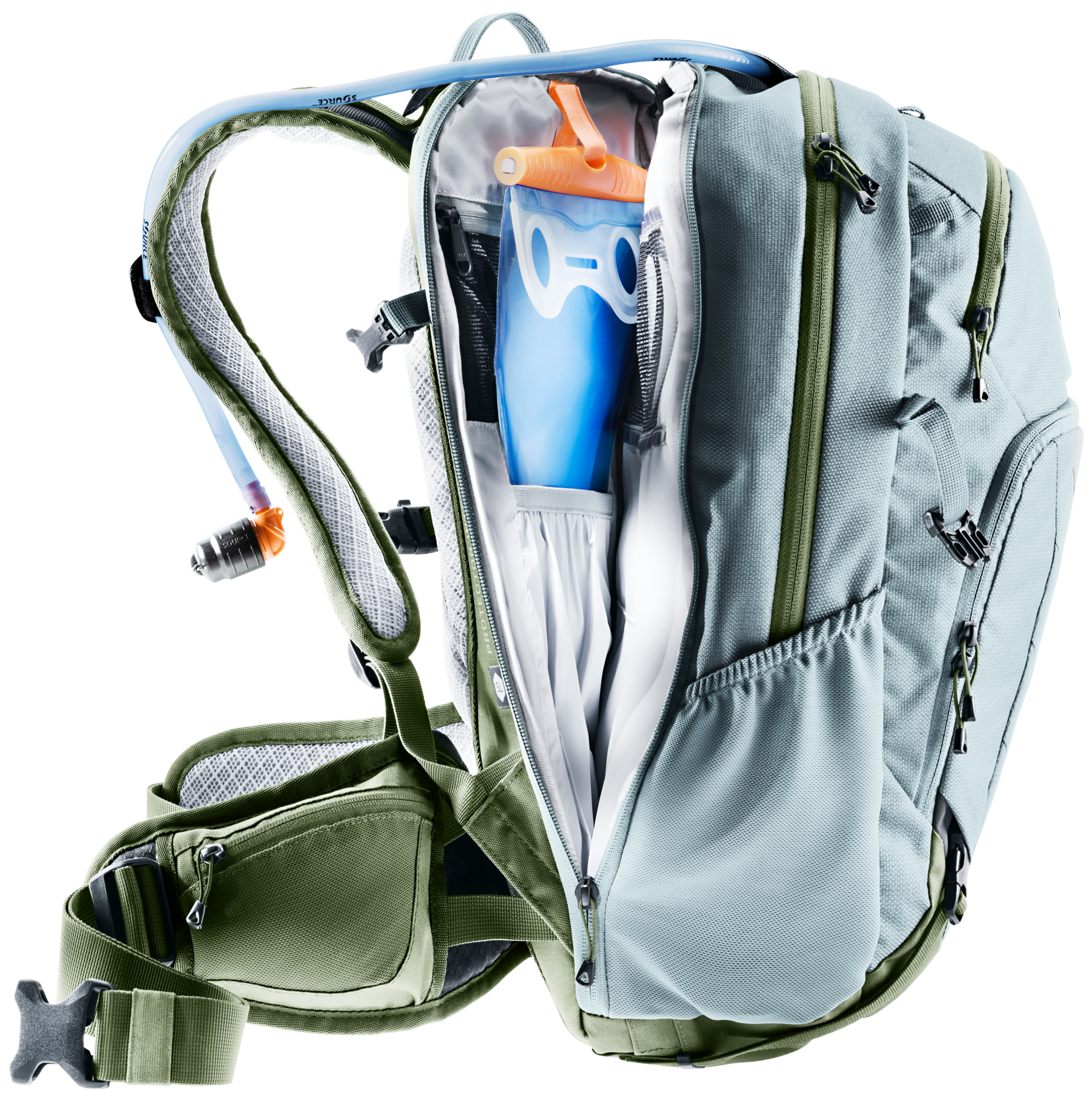 The new Attack is a TÜV/GS-certified protector backpack that ups the safety for ambitious mountain bikers, even on the gnarliest of trails. A removable SAS-TEC back protector with multiple impact protection (depending on the severity of the impact) prevents injuries. High-set hip fins create a snug, secure fit – no matter how rough the ride. And when riding uphill, a full-face helmet and protective gear is quickly strapped to the outside of the pack.