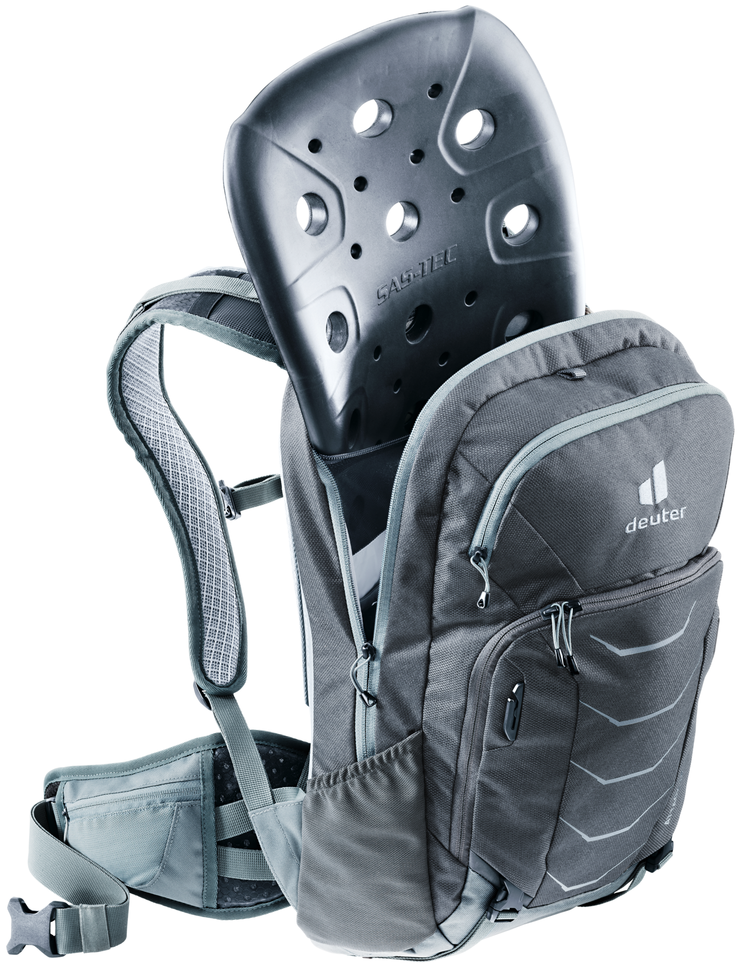 The new Attack is a TÜV/GS-certified protector backpack that ups the safety for ambitious mountain bikers, even on the gnarliest of trails. A removable SAS-TEC back protector with multiple impact protection (depending on the severity of the impact) prevents injuries. High-set hip fins create a snug, secure fit – no matter how rough the ride. And when riding uphill, a full-face helmet and protective gear is quickly strapped to the outside of the pack.
