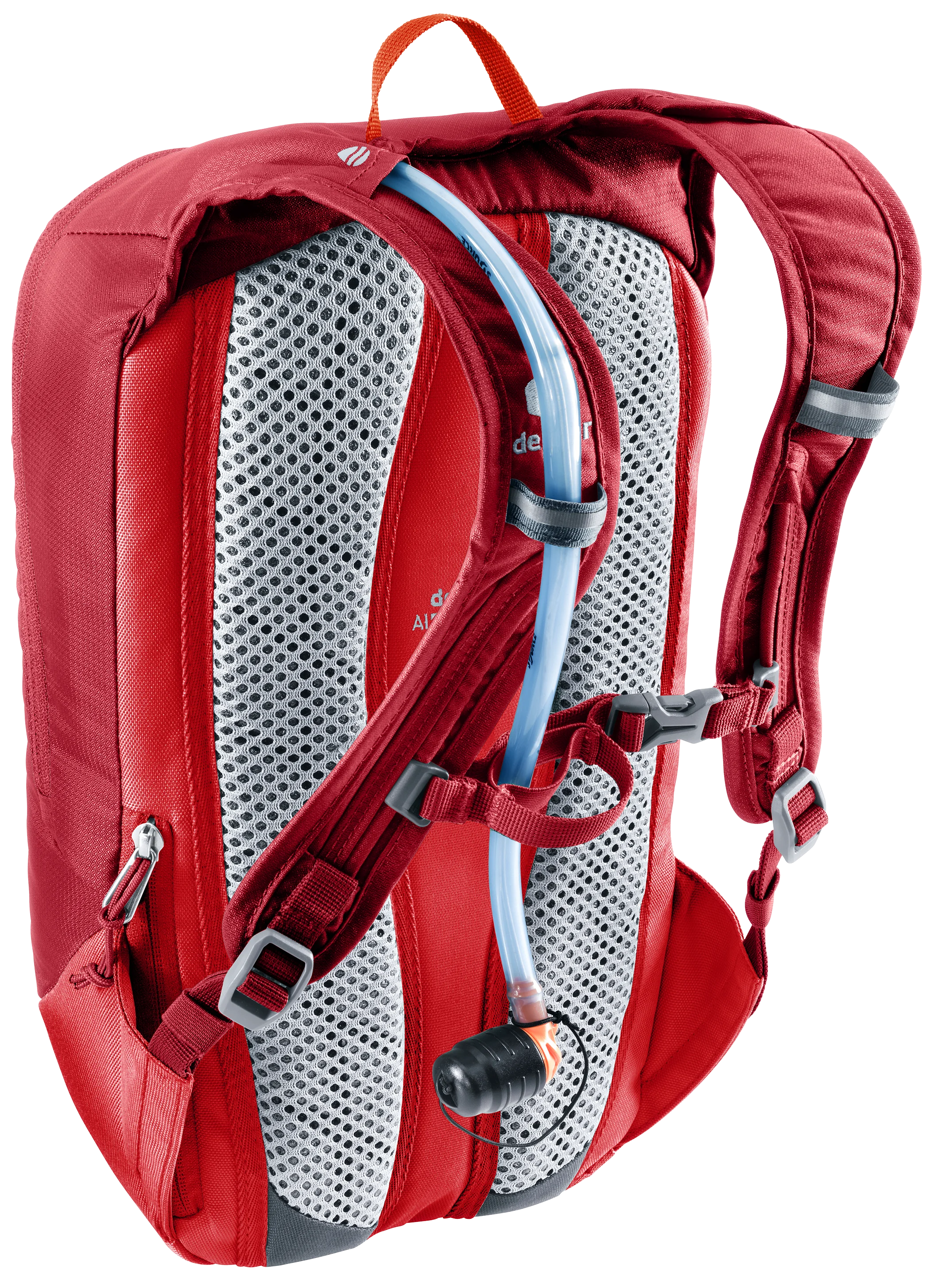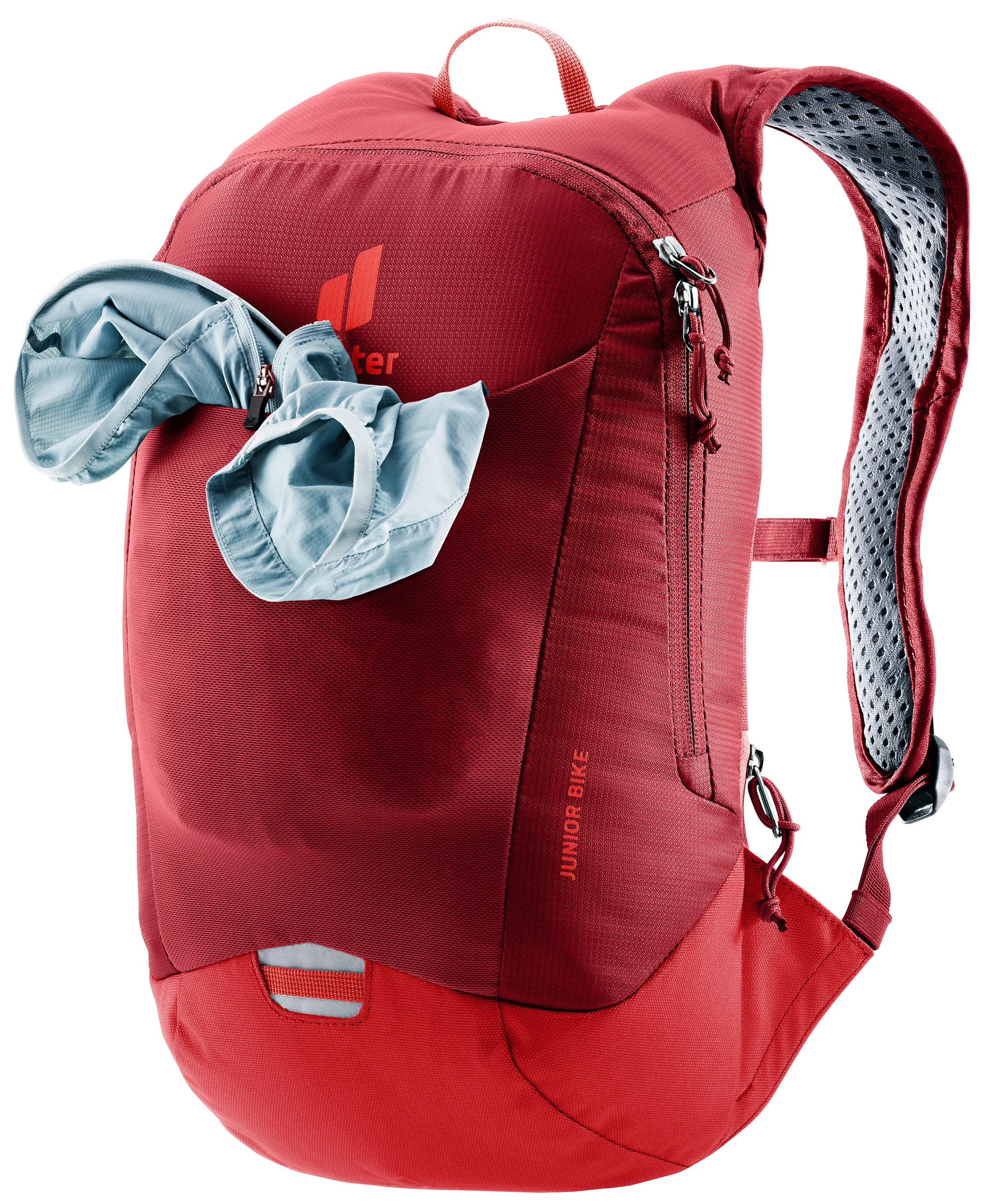 Der Bike-Rucksack für den Nachwuchs bietet dank Airstripes-Rückensystem einen kompakten Sitz, ordentlich Bewegungsfreiheit und eine gute Belüftung des Rückens auch auf rasanten Radl-Touren. Die große Rundbogenöffnung macht alles Wichtige im Hauptfach leicht zugänglich und bietet Platz für ein 2 Liter Trinksystem. In der elastischen Front- und der Seitentasche mit Reißverschluss sind Riegel und Smartphone schnell zur Hand. Reflektierende Elemente sorgen zudem für den nötigen Schutz im Straßenverkehr.