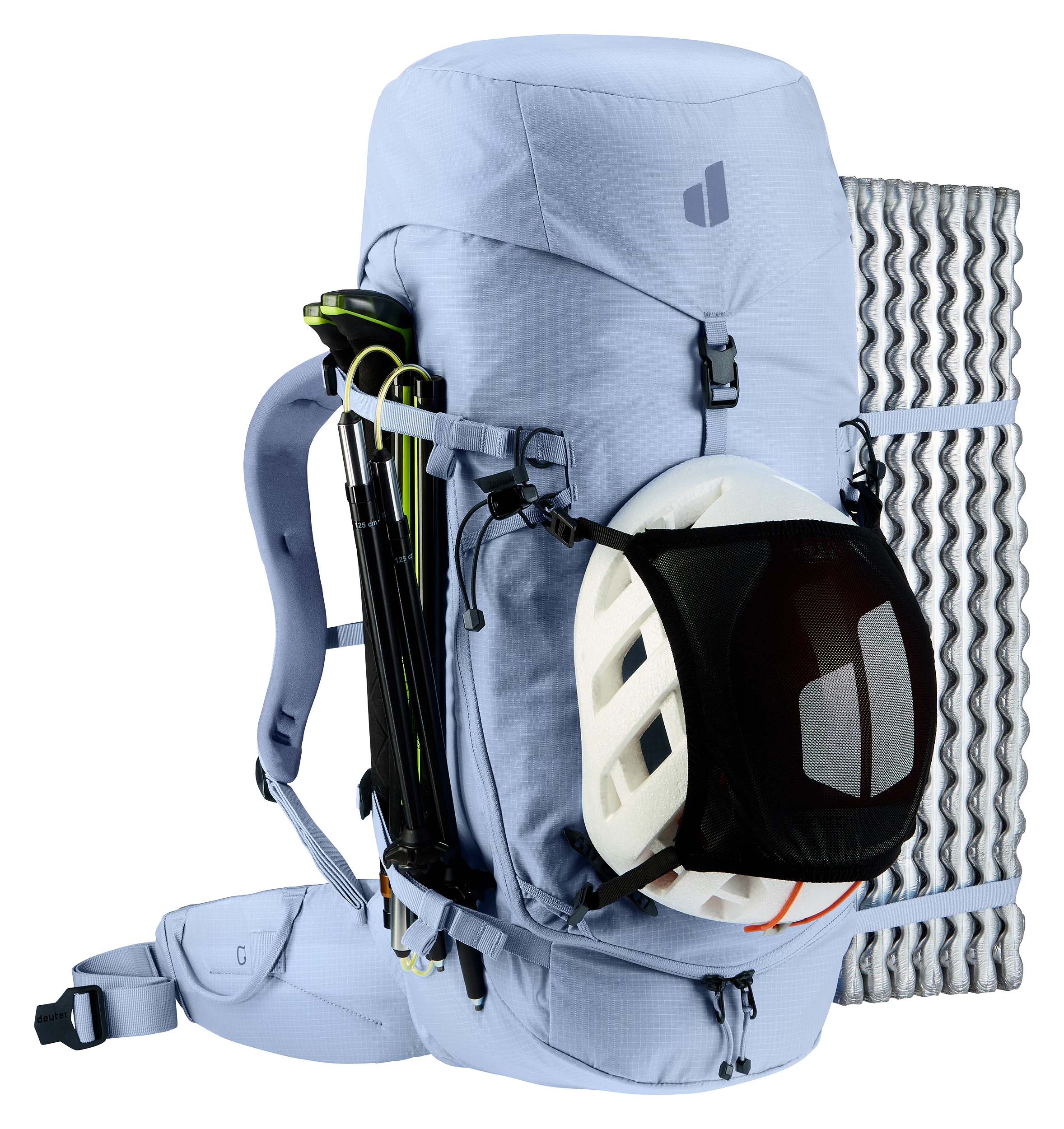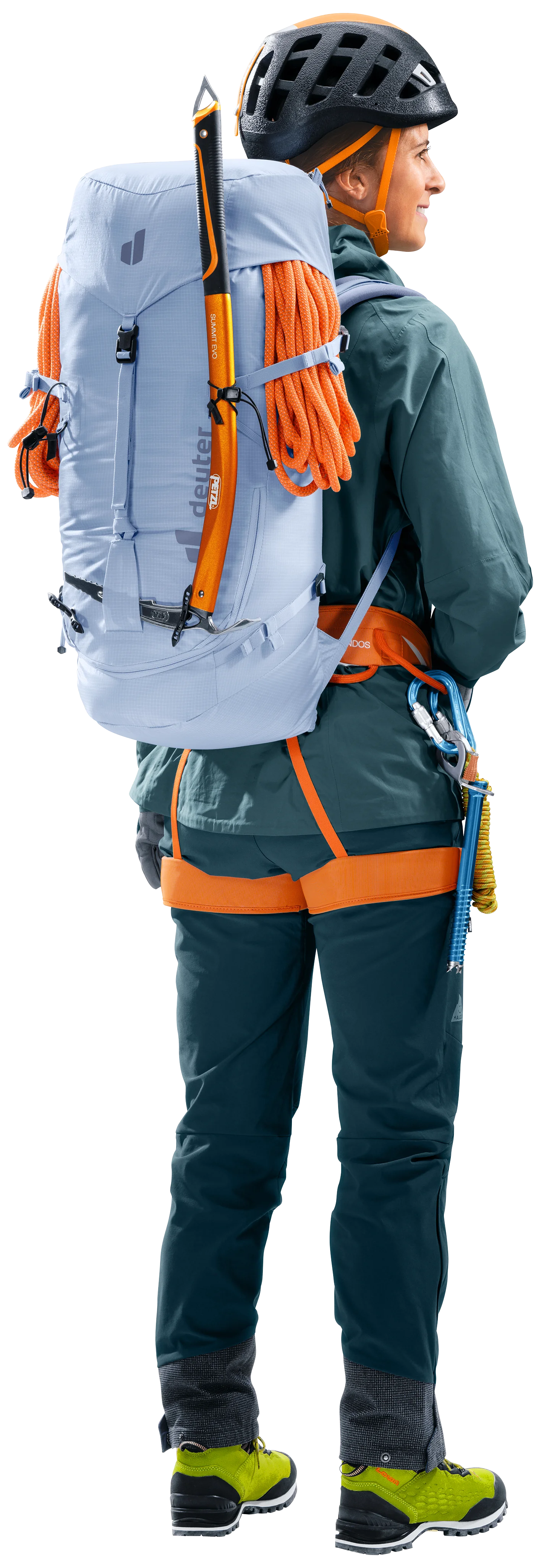 Stabilisateurs de hanche et rabat amovibles, boucles de fixation et porte-matériel, fixation pour piolets des deux côtés, fixation latérale des skis, fixation de corde, filet pour casque et extension du volume : tous les ingrédients sont réunis pour faire le bonheur des alpinistes. Avec un harnais dans les passages difficiles ou les skis attachés pour gravir les sommets : ce sac à dos est paré pour toutes les aventures en montagne.