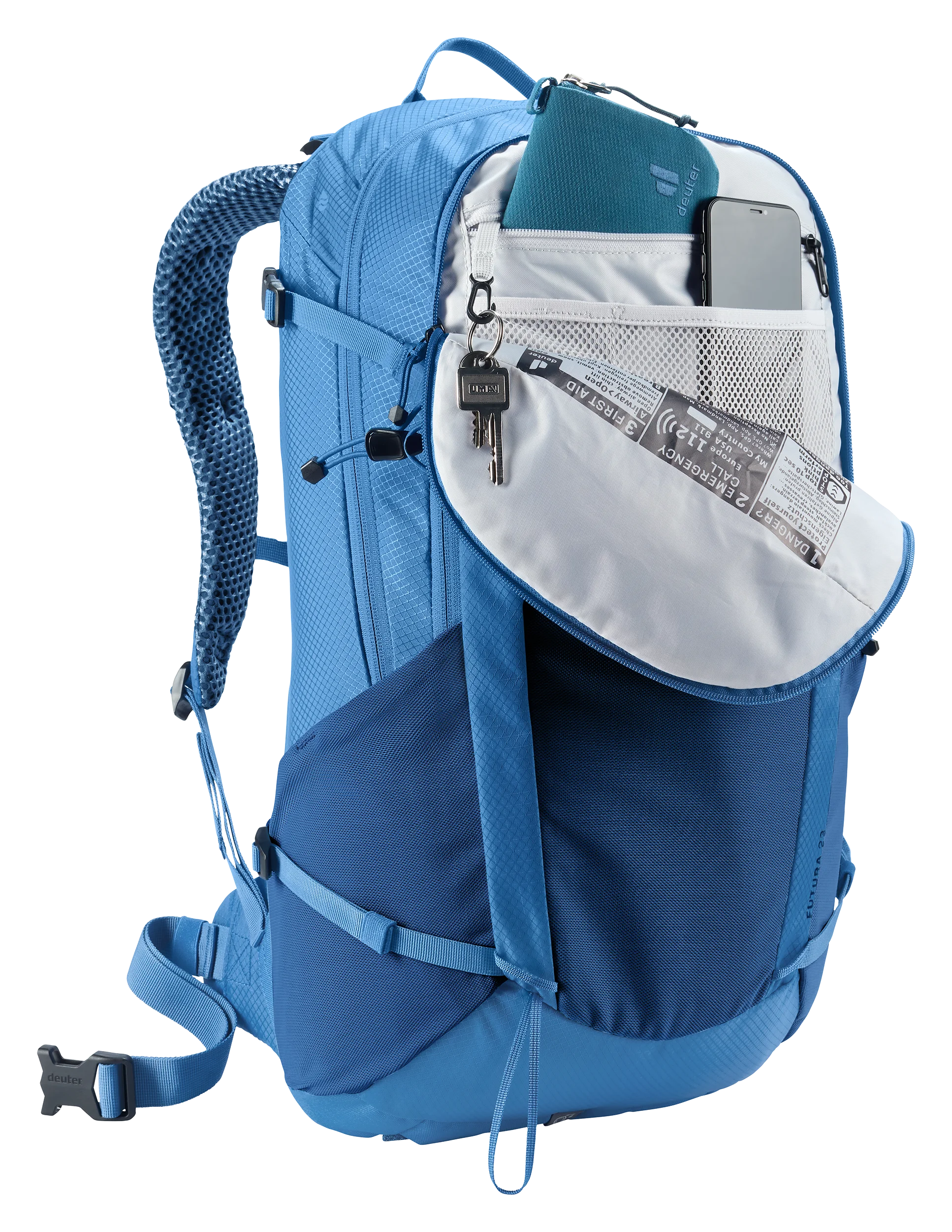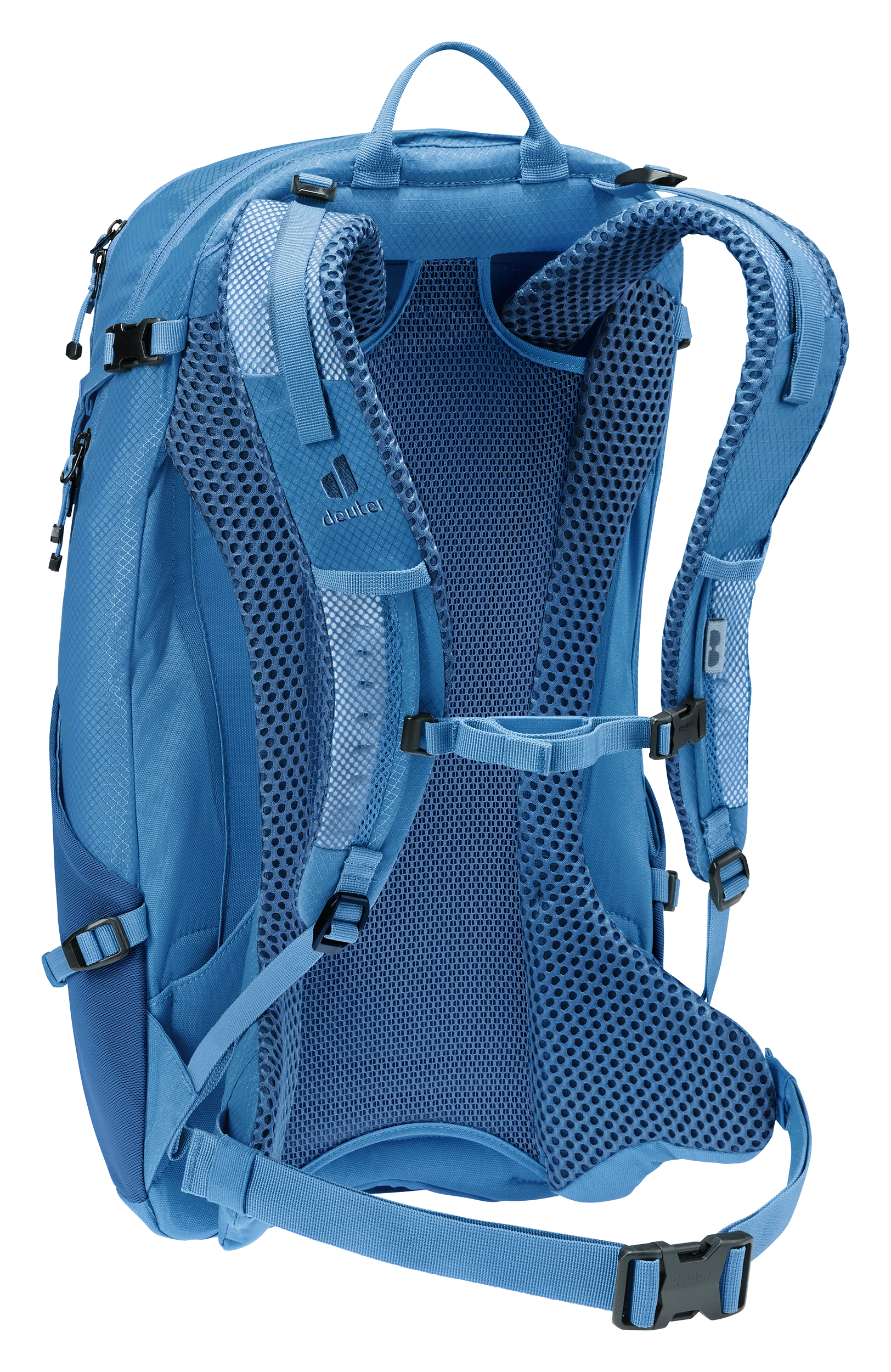 Dankzij het Aircomfort rugsysteem met ActiveFit schouderbanden en heupvinnen met pull-forward verstelling zorgt de lichtgewicht wandelrugzak voor een optimale gewichtsverdeling, gelijkmatige lastverdeling en aangename ventilatie. Alles wat je nodig hebt voor een dagwandeling kun je opbergen in de praktische stretch buitenvakken en heupvinnen. Bevestigingslussen en stokkenhouders bieden ook ruimte voor wandeluitrusting.