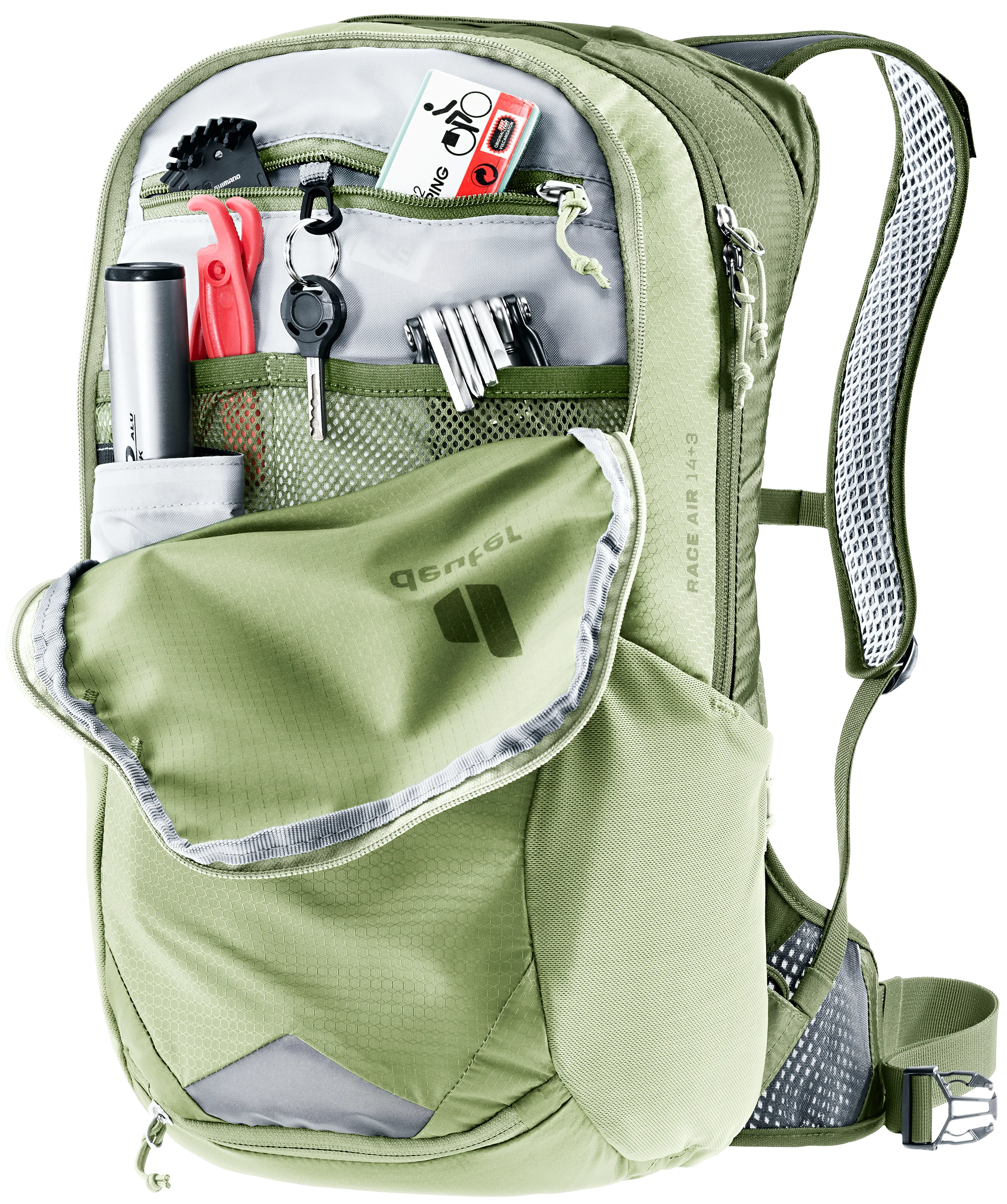 I have the Race Air 14+3, overall, this backpack is has impressed me. I can carry all I need for a day ride, jacket, fresh jersey etc and still have space to pick up a loaf of bread from a bakery. It has a stiff back and splitting the air mesh pack into two sides is a genius move as it helps keep it in place when just using the shoulder and chest straps but still quite light weight. The hip straps also tuck away quite nicely into the back section if you are riding light or on smoother surfaces. Hydration is easy to route and given the distance off my back, the contents of a bladder stay cooler for longer. When riding, the shoulder straps are very welcome as they have a nice mesh to vent and reduce sweat/heat buildup , and are fine when walking shorter distances with lighter loads. The phone pocket at the back takes a little practice to get used to, but makes a really nice addition as you can keep your pockets clear and you can access without taking the pack off. Build and stitching all seem first rate and I cannot find any niggles here, QC is spot on. As a tall person (194cm) I would love to see an actual tall version of this... as I have to slacken off the straps to get this to sit on my hips properly which is important at the start of a ride when you have an extra 3kg in the bladder. So, although it technically fits, I have to slacken off the straps to get it to sit lower on my back, but then the shape of the straps is less than ideal at this extension and might cause some chaffing of the neck if it was in my ideal location for the hips, so I have to compromise a bit here. Not a deal breaker, but the fit is what is stopping me rating this pack 5 stars. Also, it makes the sunglasses holder really hard to use in this position as it is so high up so you cannot really see it, but if it tighten the straps and wear it higher on my back like, (so the hip strap is a waist strap) then it is functional. If you are lucky enough to be averaged size, this pack will be pretty much perfect. Another point of note is that the colours from product shots are very different to how they appear in real life... studio lighting changes the yellow entirely for example, so try to find some video footage of your pack in your colour and see how it looks in real life. I actually prefer the colour in real life though, which is good. Although build quality is top notch and it seems durable enough, the outer pocket where tools are kept, it is possible to see through slightly to the contents. For example, with the bag closed, from about 4M away I can see I have a red first aid kit bag and I can read the brand of wetwipes that I am keeping inside. Not sure if this applies to all bags in the range or just the colour I have. Minor niggle but think this is done to keep weight down. The helmet carrier is a nice touch, but when you unzip the bag with a helmet attached, the tension goes and it can fall out, I would rather see the clips as featured on the flyt or compact series here instead. In short, this is a cracking daypack which can comfortably allow you to ride all day and carry lots of water, snacks, tools, first aid etc whilst being among the most vented of packs I have ever used which goes a long way towards overall comfort for the day, I much prefer to keep luggage off my bike, so it is agile and responsive rather than having bags rattling around on it, so this fits the bill. - Offer this in multiple back sizes rather than one size fits all and you have perfected it.