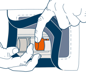 Pour dégonfler l'airbag, ouvre le couvercle de sécurité de la valve de dégagement et appuie sur le bouton orange.