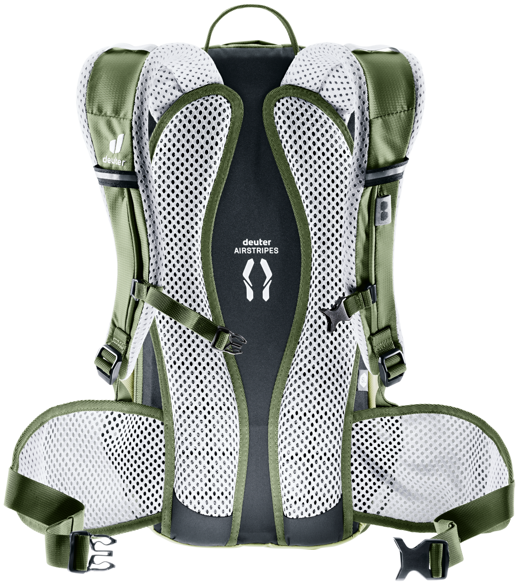 1. 3D AirMesh gefütterte Schultergurte. Anatomisch geformt, garantieren sie komfortablen Bewegungsspielraum. Der Brustgurt sichert die Passform zusätzlich.