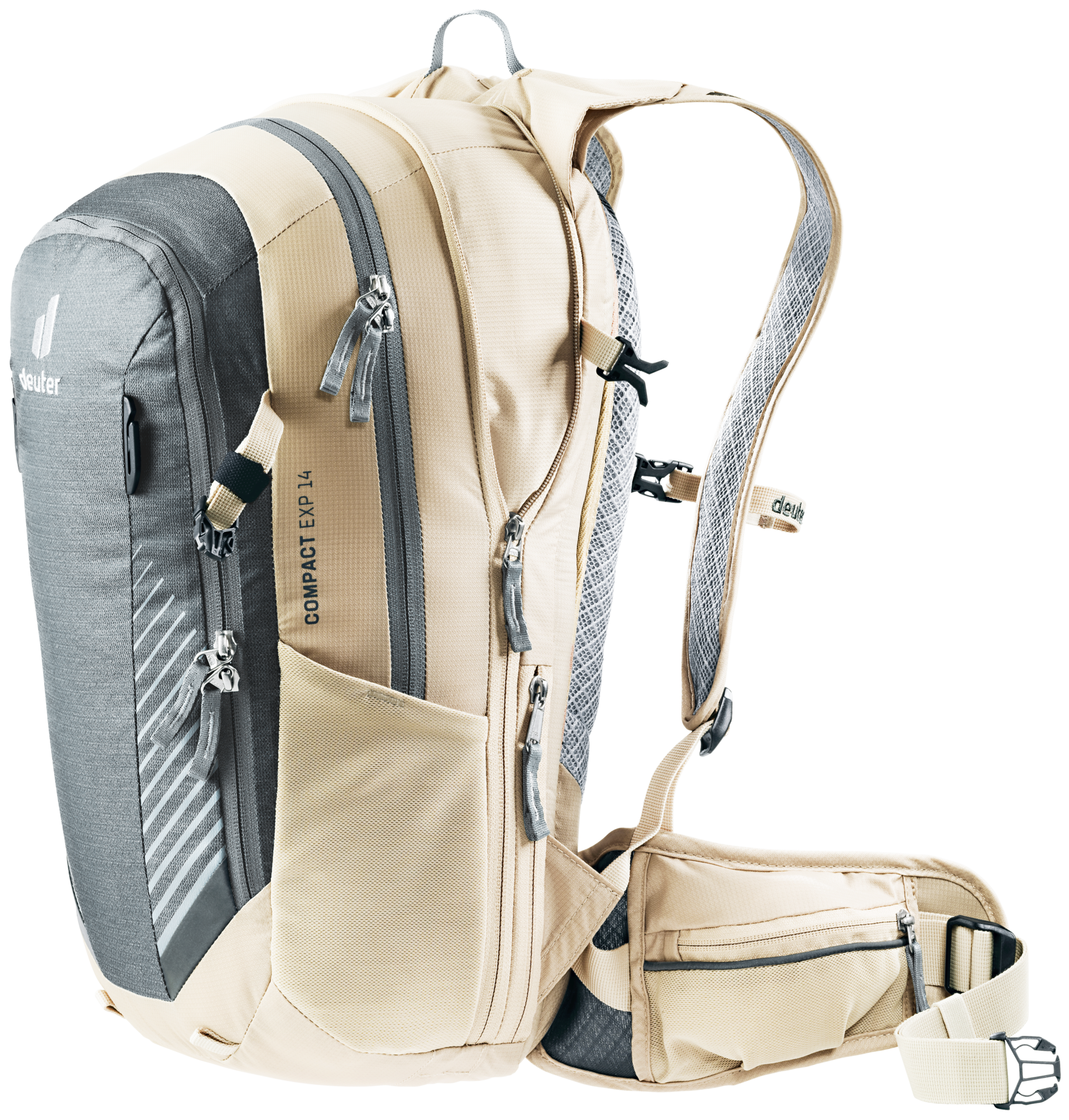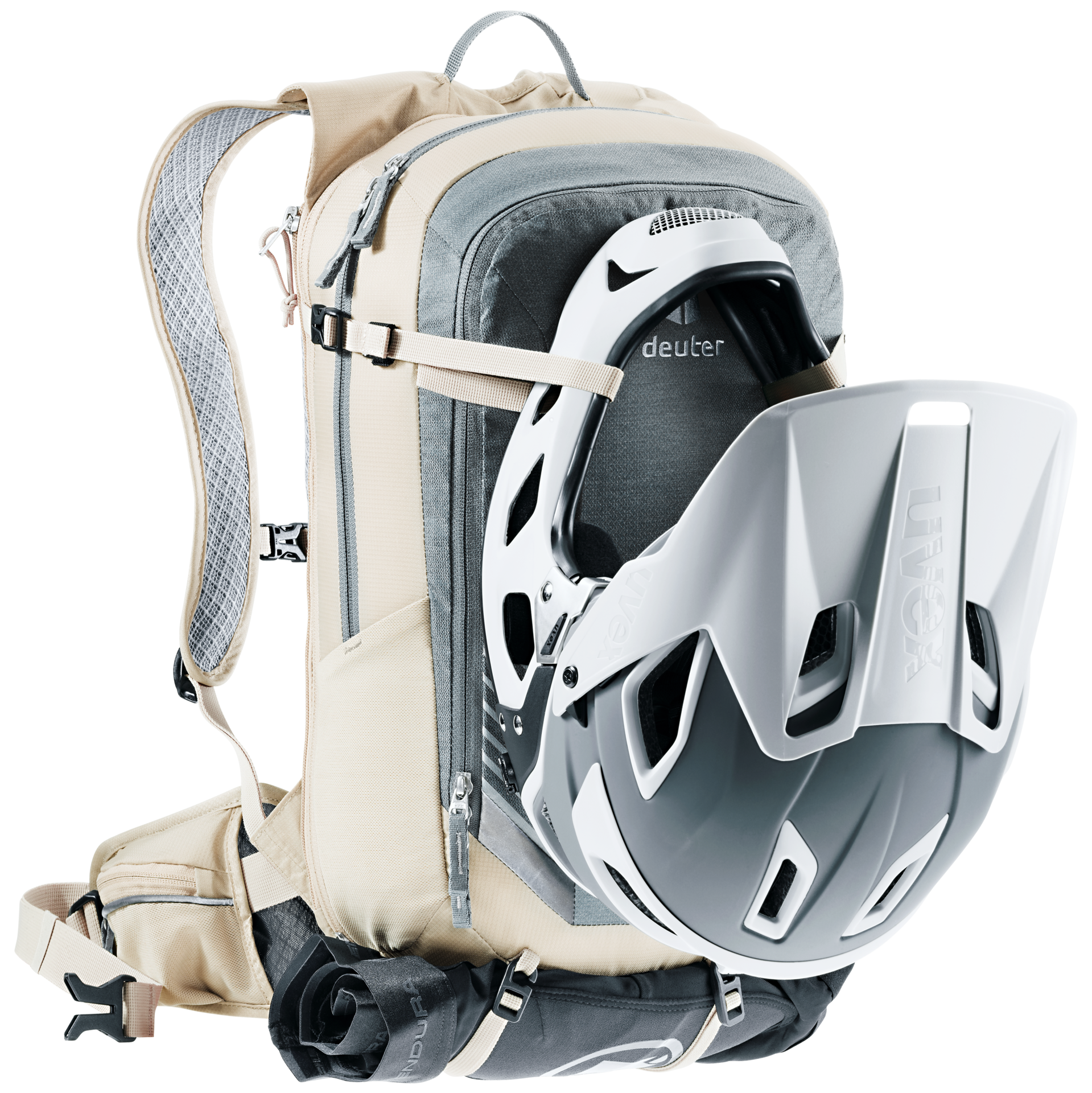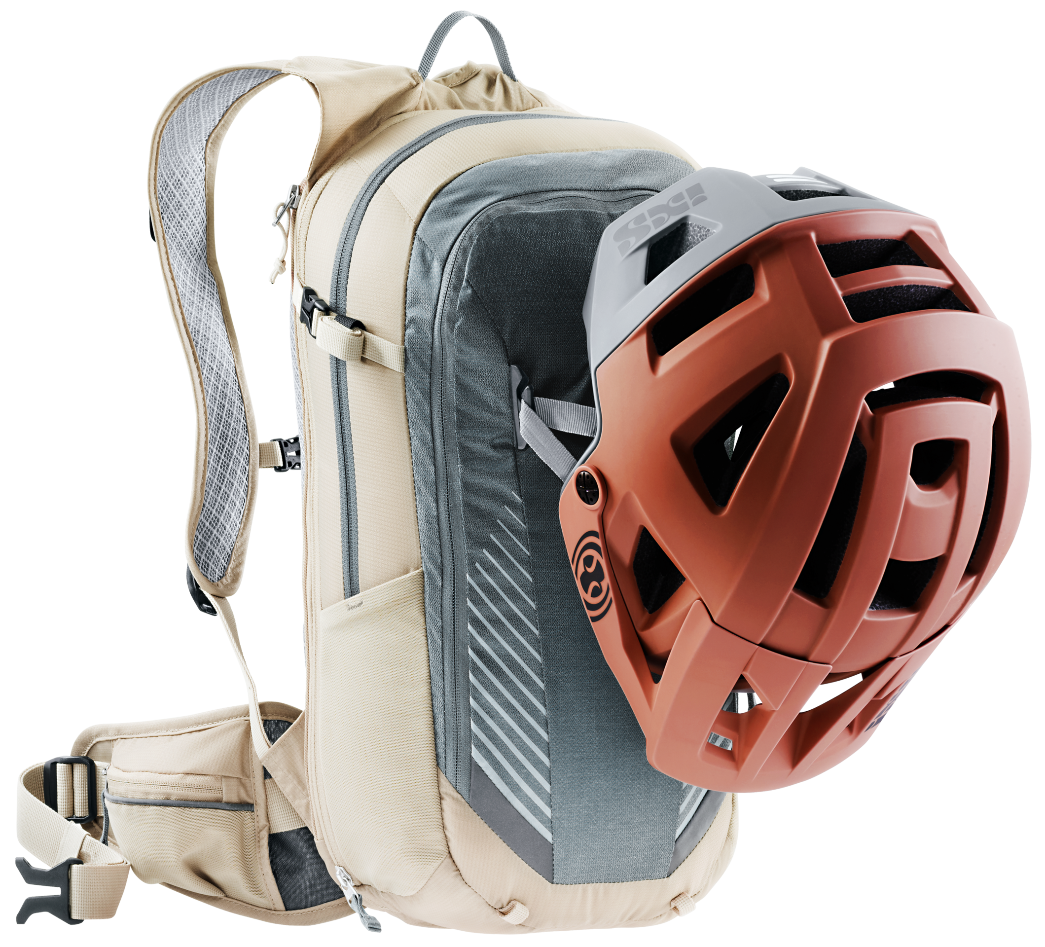 Le Compact est un sac à dos pour les vététistes en montagne avec un maintien dorsal ferme et confortable. Il se distingue notamment par son équipement parfait : il comporte une poche supplémentaire pour la poche d'hydratation, un compartiment séparé pour le smartphone, un compartiment à outils clairement agencé, deux poches zippées sur les stabilisateurs de hanche et deux poches latérales élastiques. Il est, en outre, possible d'augmenter le volume du sac à dos. Pour le casque ouvert, il existe tout simplement des clips de fixation à l'avant du sac à dos, tandis que les sangles de compression latérales permettent de fixer le casque intégral.
