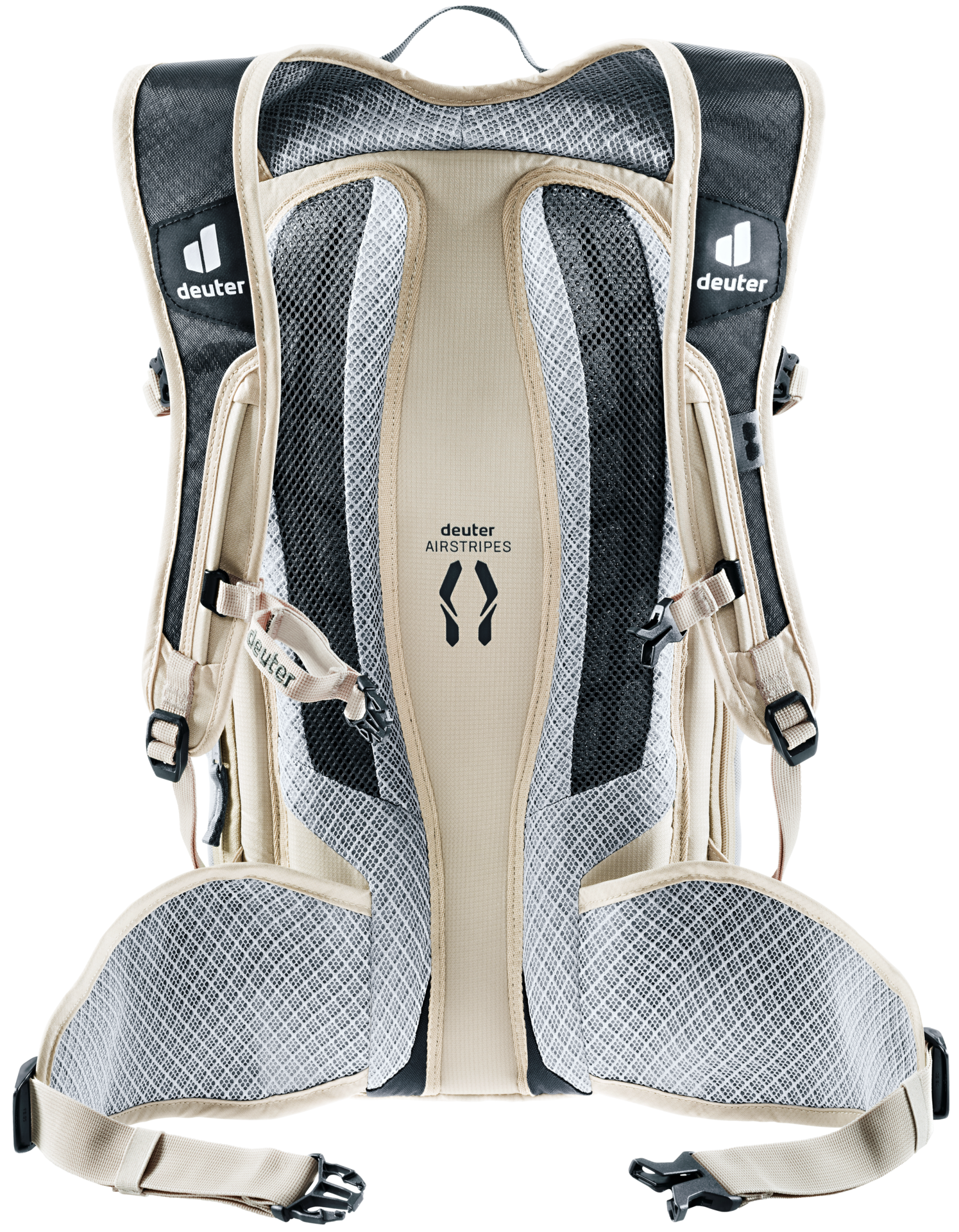 - Bretelles 3D AirMesh doublées. De forme anatomique, elles garantissent des mouvements confortables. La sangle de poitrine assure un meilleur ajustement.