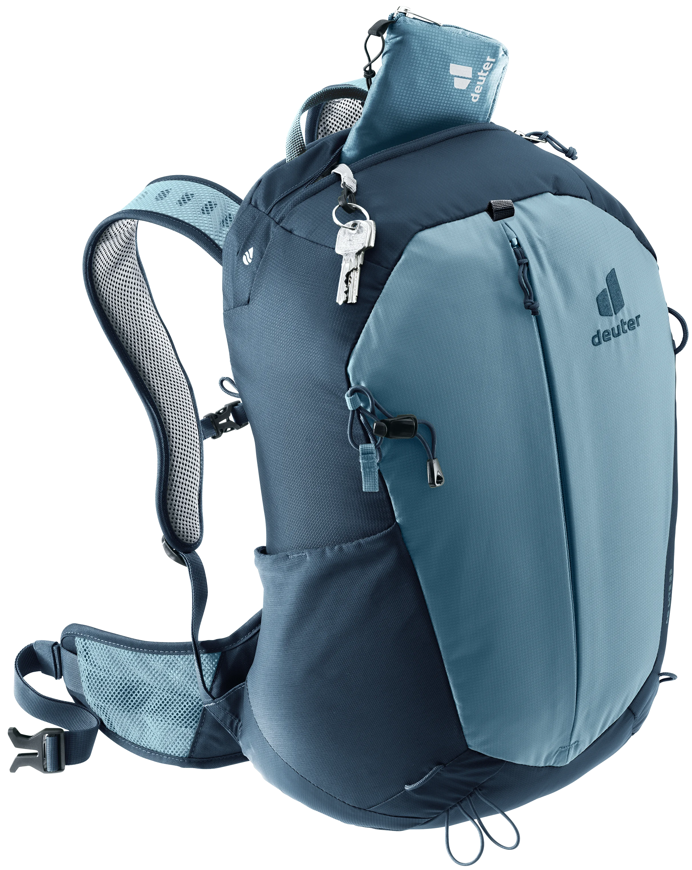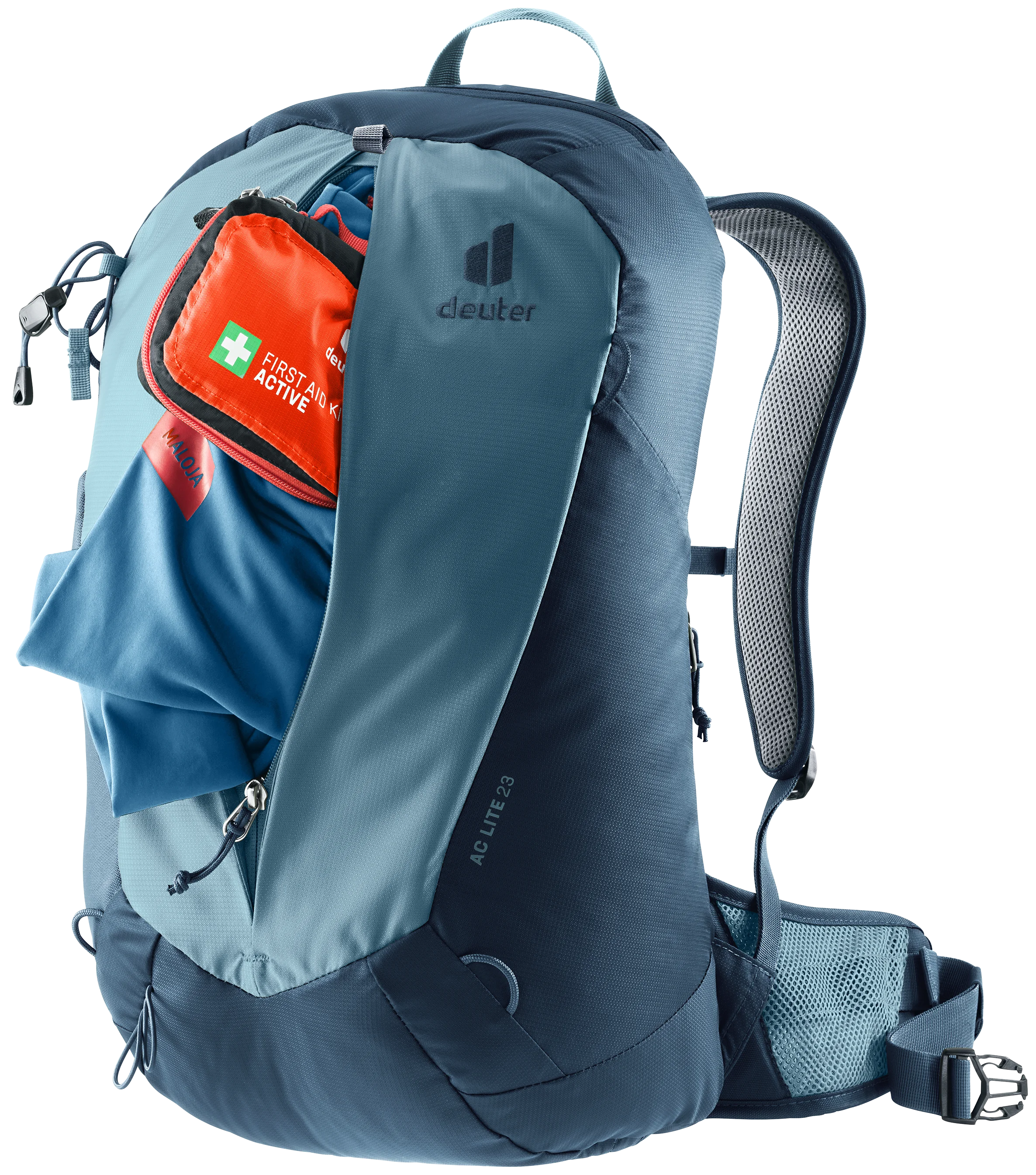Der Rucksack für sportliche Tagesausflüge mit federleichtem, maximal belüftetem Aircomfort-Rückensystem bietet nicht nur eine sehr gute Gewicht-Komfort-Ratio, sondern besitzt auch eine geräumige Reißverschluss-Frontöffnung. So hat man schnell und mühelos Zugriff auf das Hauptfach. Die integrierte Reißverschluss-Garage sichert den Inhalt zusätzlich vor unfreiwilligen Zugriffen. Weitere Verstaumöglichkeiten bieten die Smartphone-Tasche und die Schlaufen zur Befestigung von Gegenständen am Rucksack.