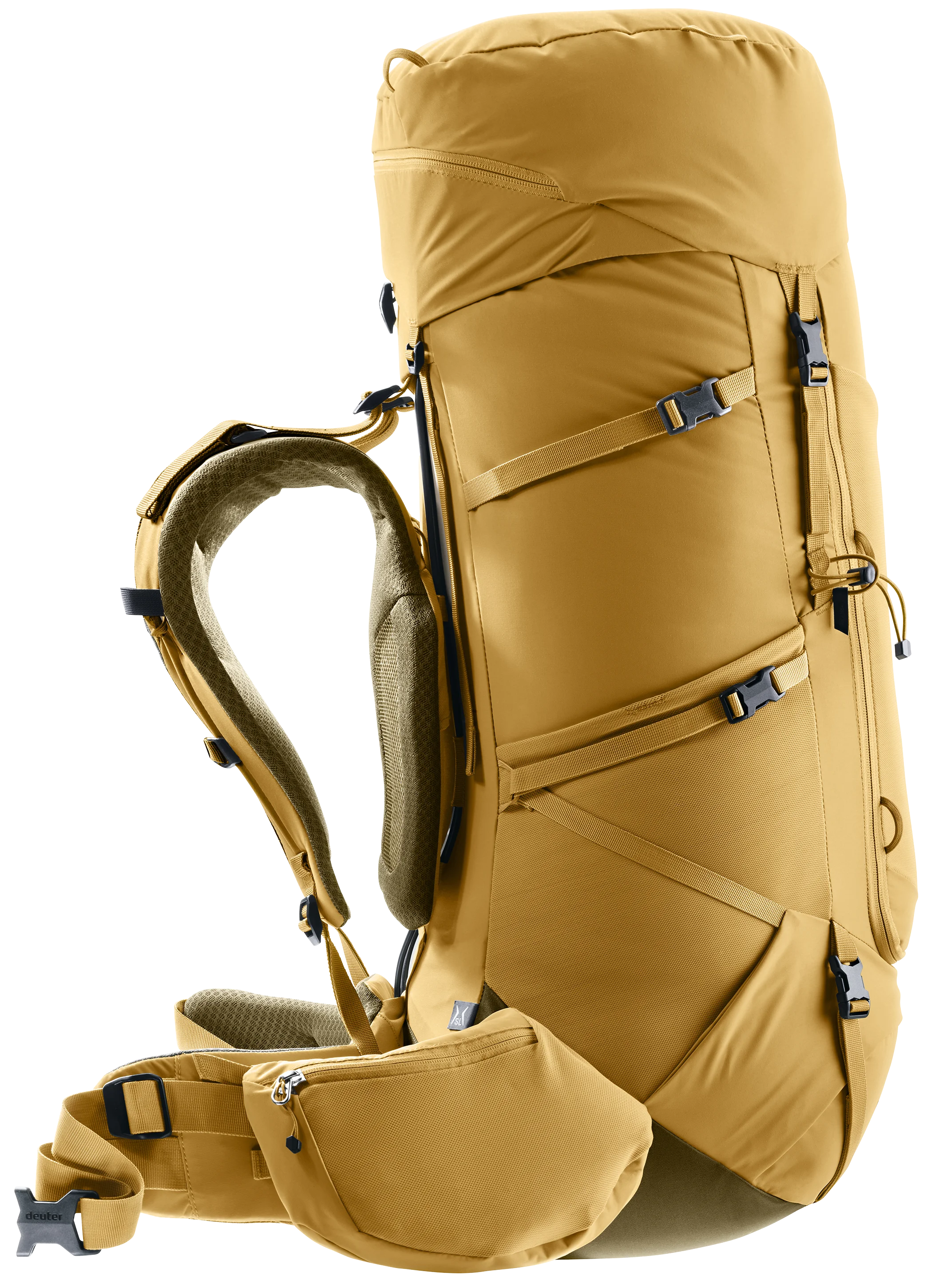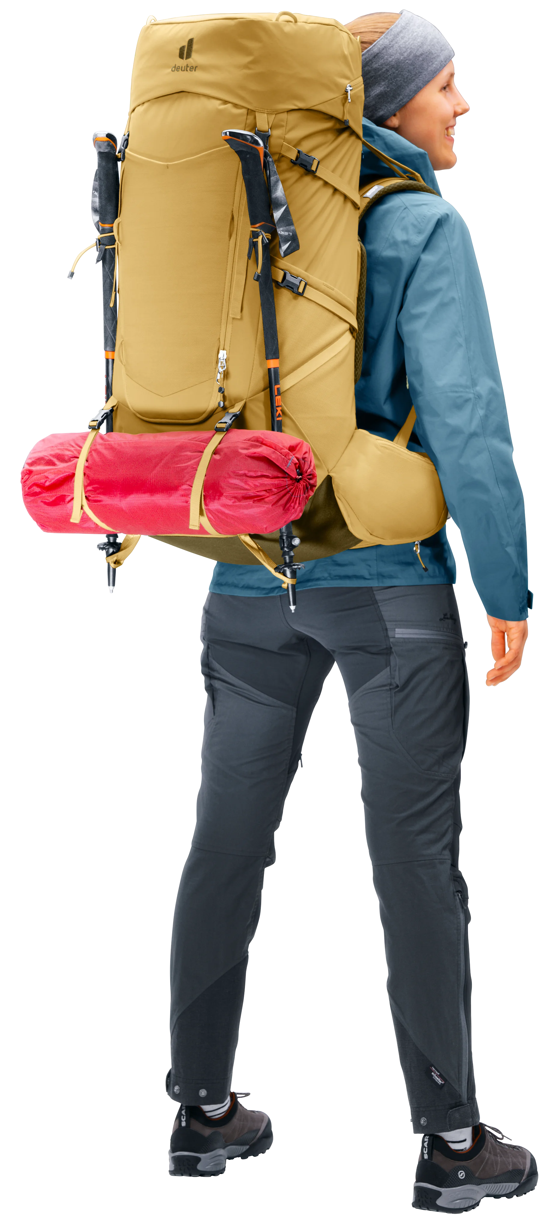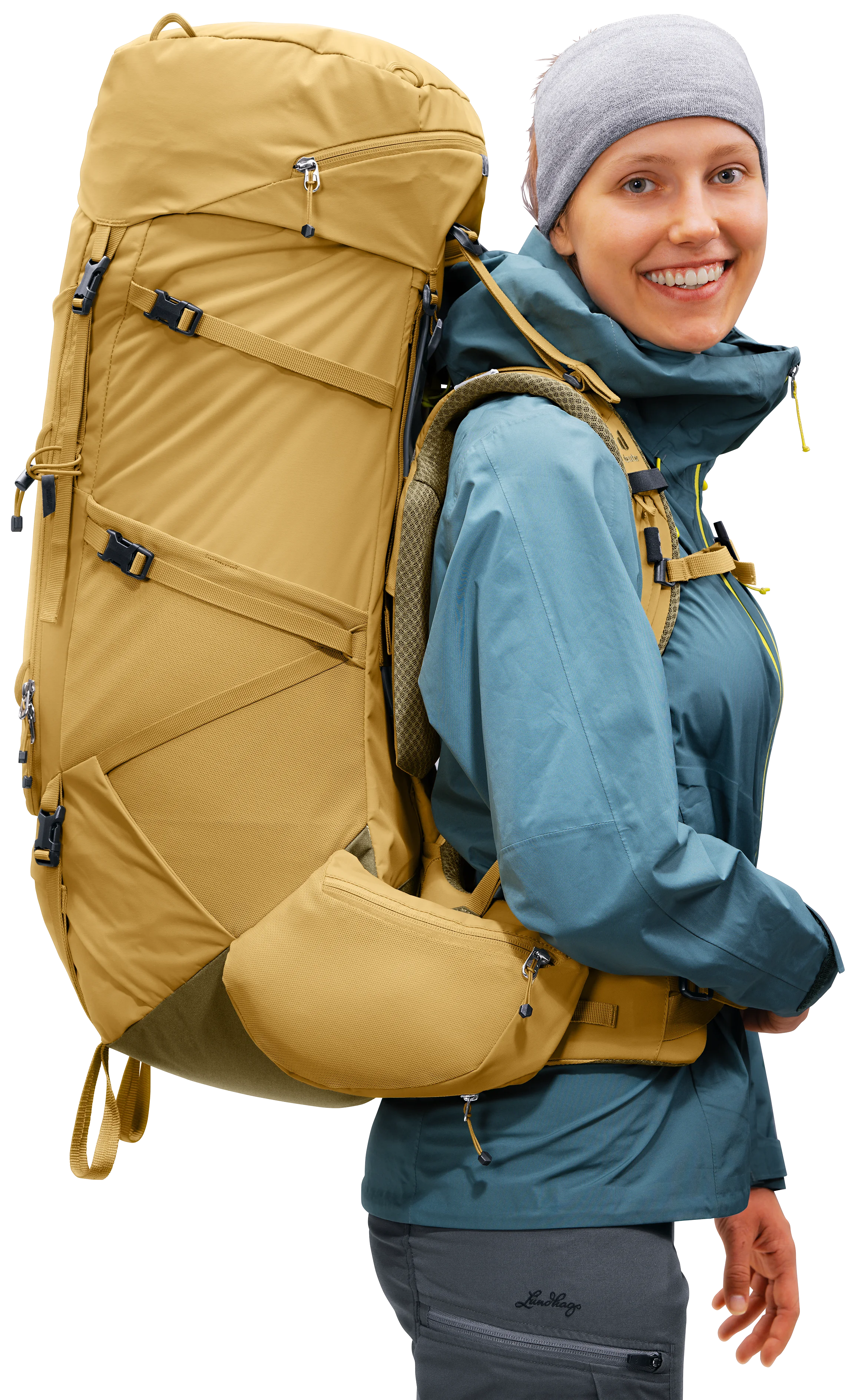 Entwickelt für längeres Trekking lässt sich der Rucksack dank des VariClick-Systems und zwei Positionen für Lageverstellriemen individuell an die Rückenlänge anpassen. Dabei gehen die ActiveBalance-Schulterträger mit der Körperbewegung mit und sorgen zusammen mit dem VariFlex-System für ein ausgewogenes Tragegefühl auch bei schmalerer Statur. Die Hüftflossen verteilen das Gewicht gleichmäßig, und der freiliegende Aluminium-Rahmen sorgt für Stabilität sowie eine gute Belüftung zusammen mit dem Air-Spacer-Mesh. Geräumige Taschen und eine große Frontöffnung machen die Ausrüstung schnell zugänglich.