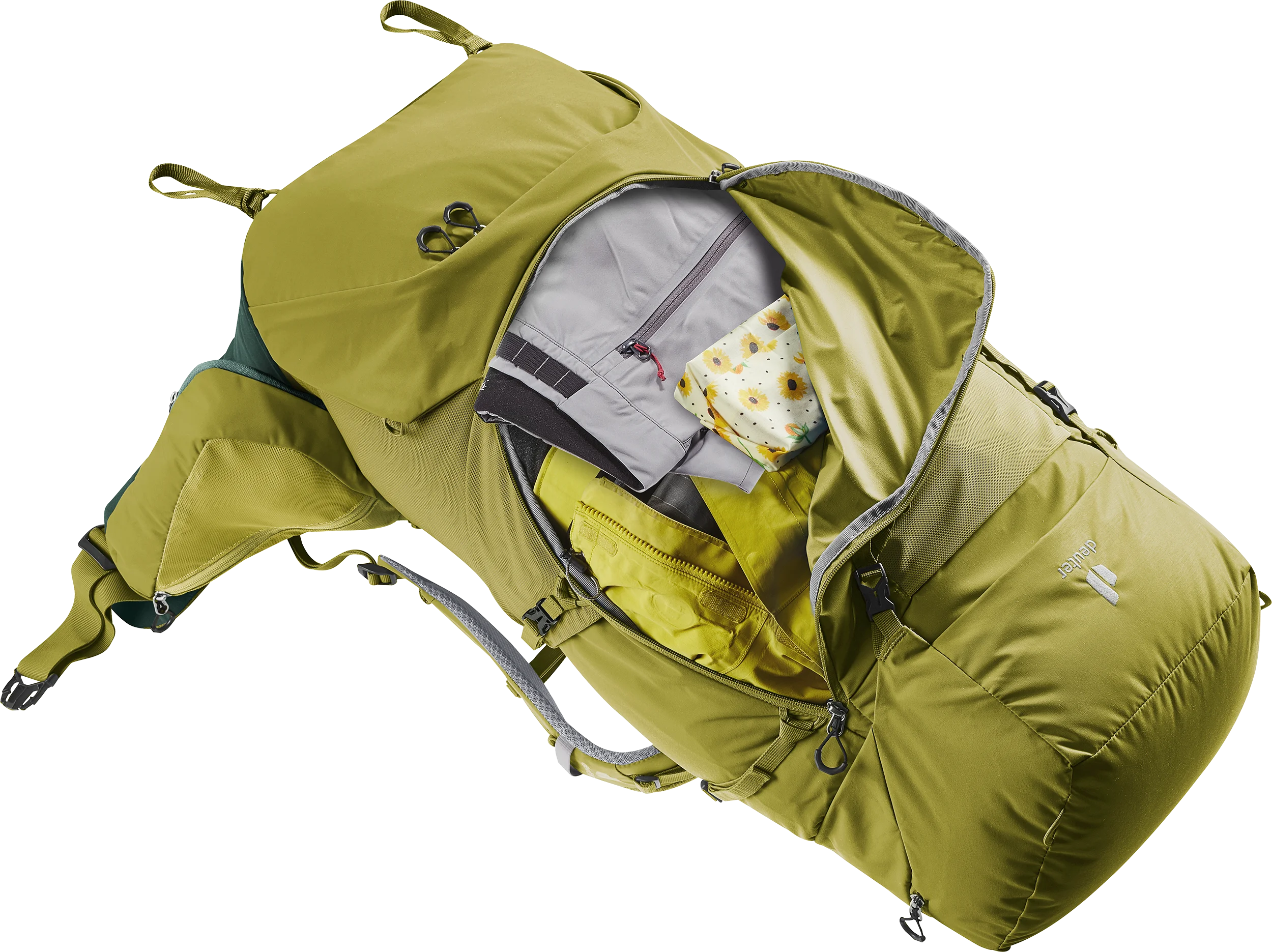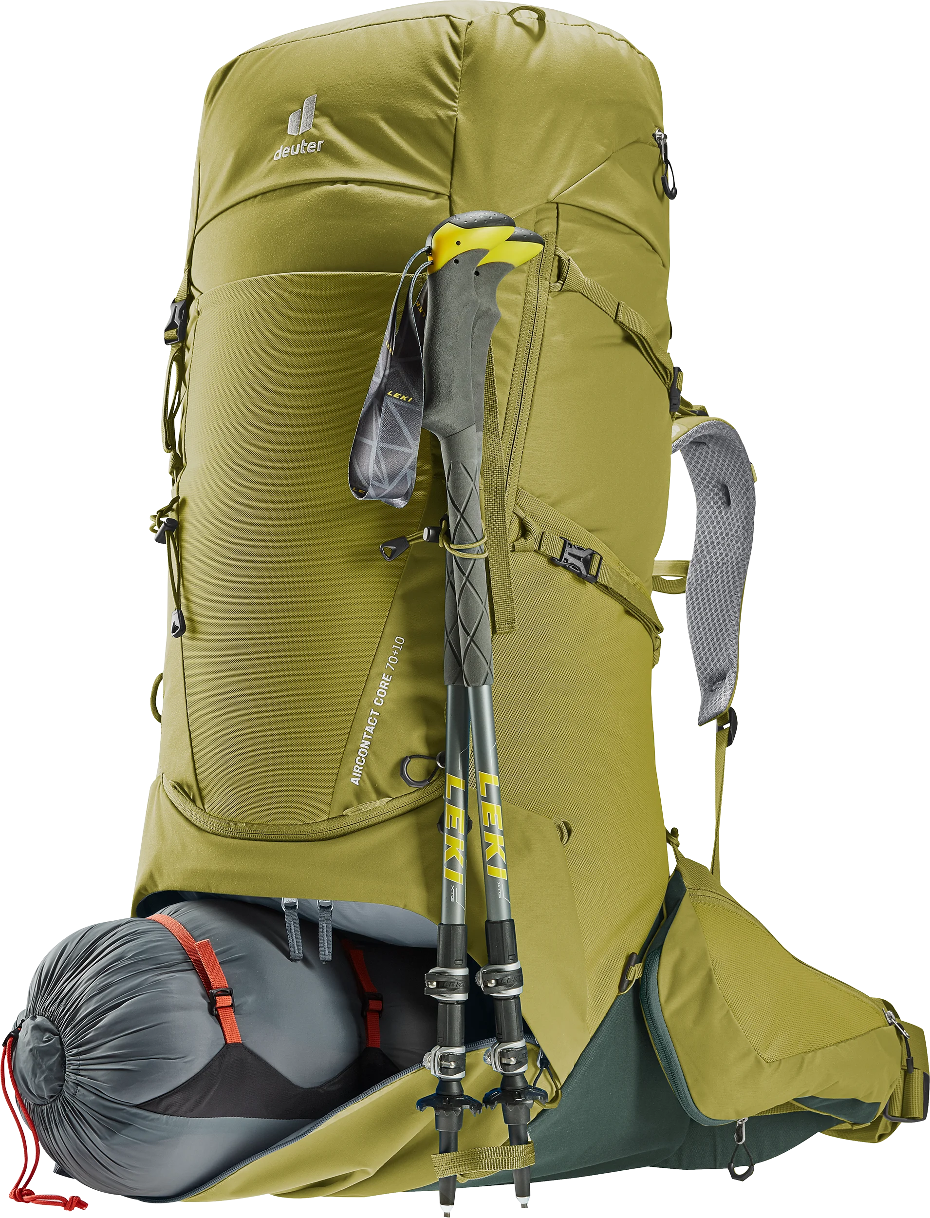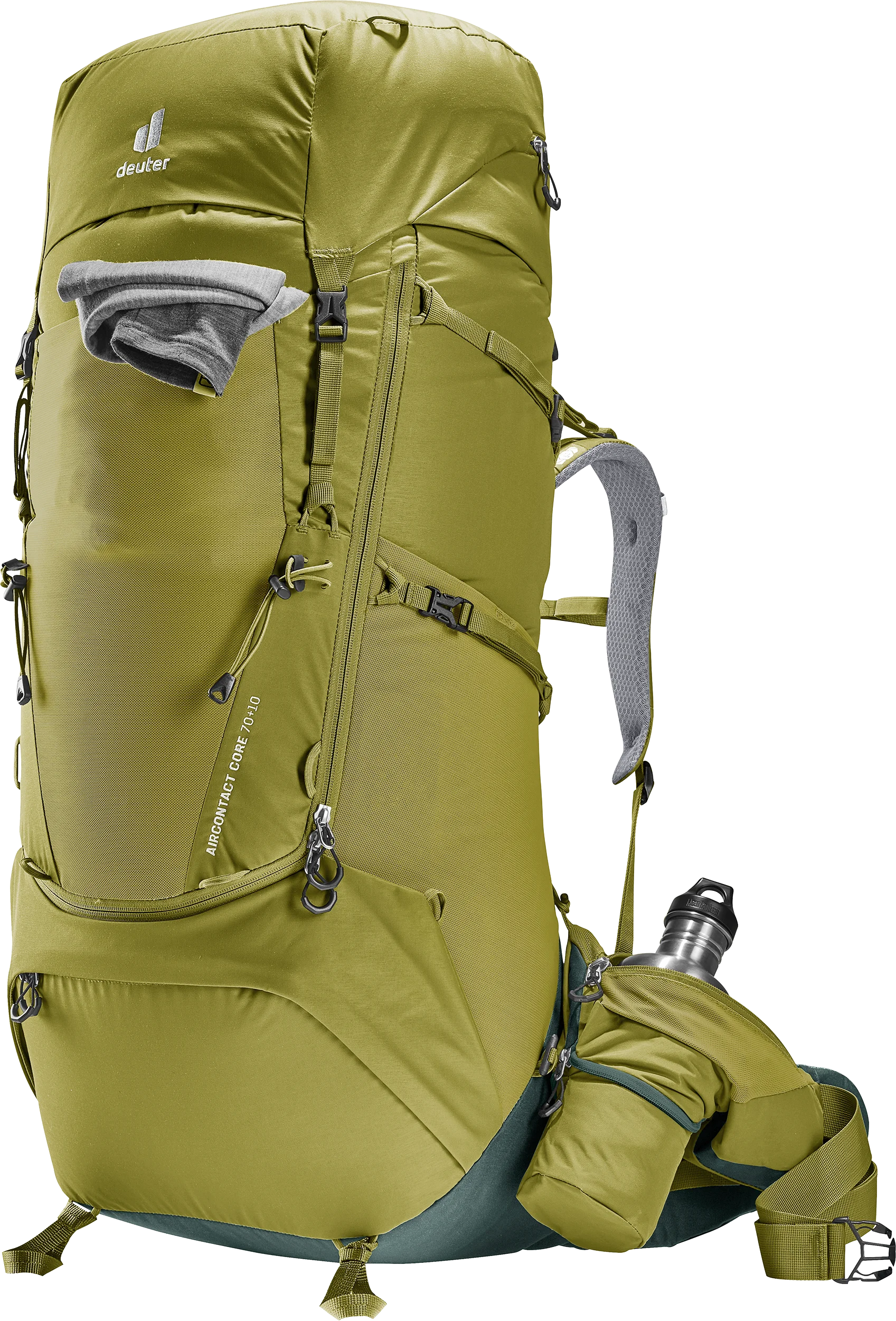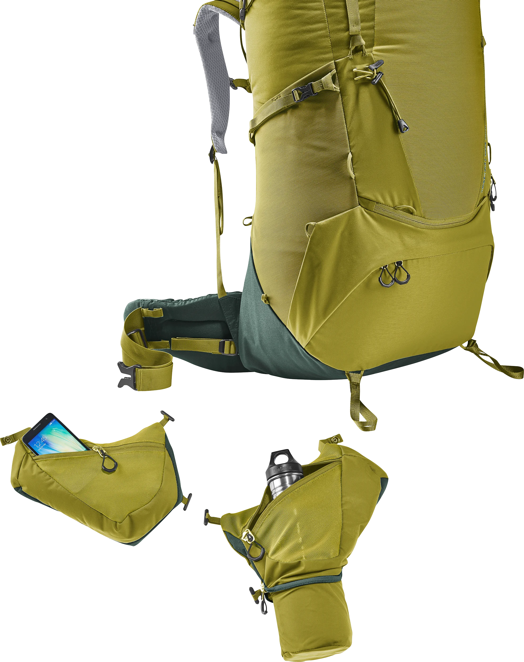 Für hohen Tragekomfort und optimale Lastverteilung sorgen das Aircontact-Rückensystem mit Air Spacer Mesh und großem Belüftungskanal, die bequemen Schulterträger, die beweglichen Hüftflossen und das ergonomische Lumbalpad. Eine große, J-förmige Frontöffnung gewährt mühelosen und schnellen Zugang auf den Rucksackinhalt. Zudem bieten die abnehmbaren 3 Liter Hüftflossentaschen mehr Volumen für persönliche Gegenstände. Und auch Trinkflaschen bis 1,5 Liter finden in einer ausklappbaren Tasche Platz.