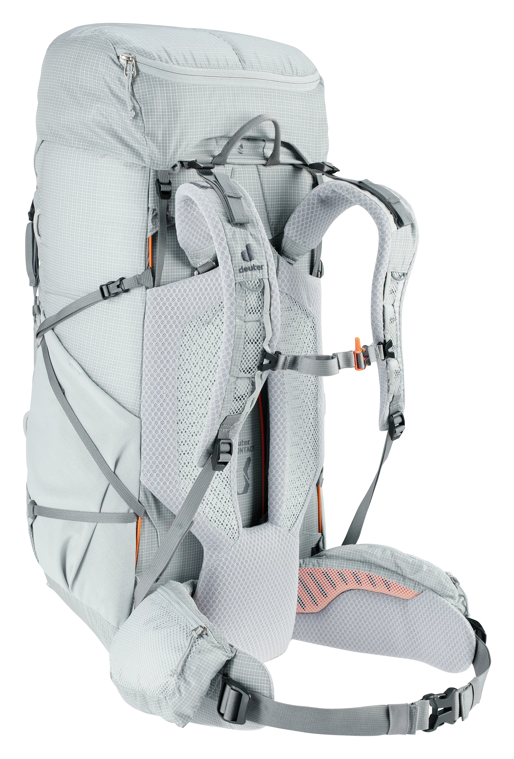 Der leichte Rucksack bietet eine hervorragende Gewicht-Komfort-Ratio. Zusätzlich kann das Gewicht dank abnehmbarem Deckel und Kompressionsriemen optimiert werden. Auch das Aircontact-Rückensystem mit Air Spacer Mesh trägt dazu bei, garantiert aber vor allem die Belüftung des Rückens. Die dank Clip & Loop-Lösung verstellbare Rückenlänge und die ergonomischen Hüftflossen sorgen für passgenauen Tragekomfort und gute Lastverteilung. Auch das robuste Ripstop-Material aus Hochleistungsfasern hält den Strapazen einer Langstreckenwanderung stand.
