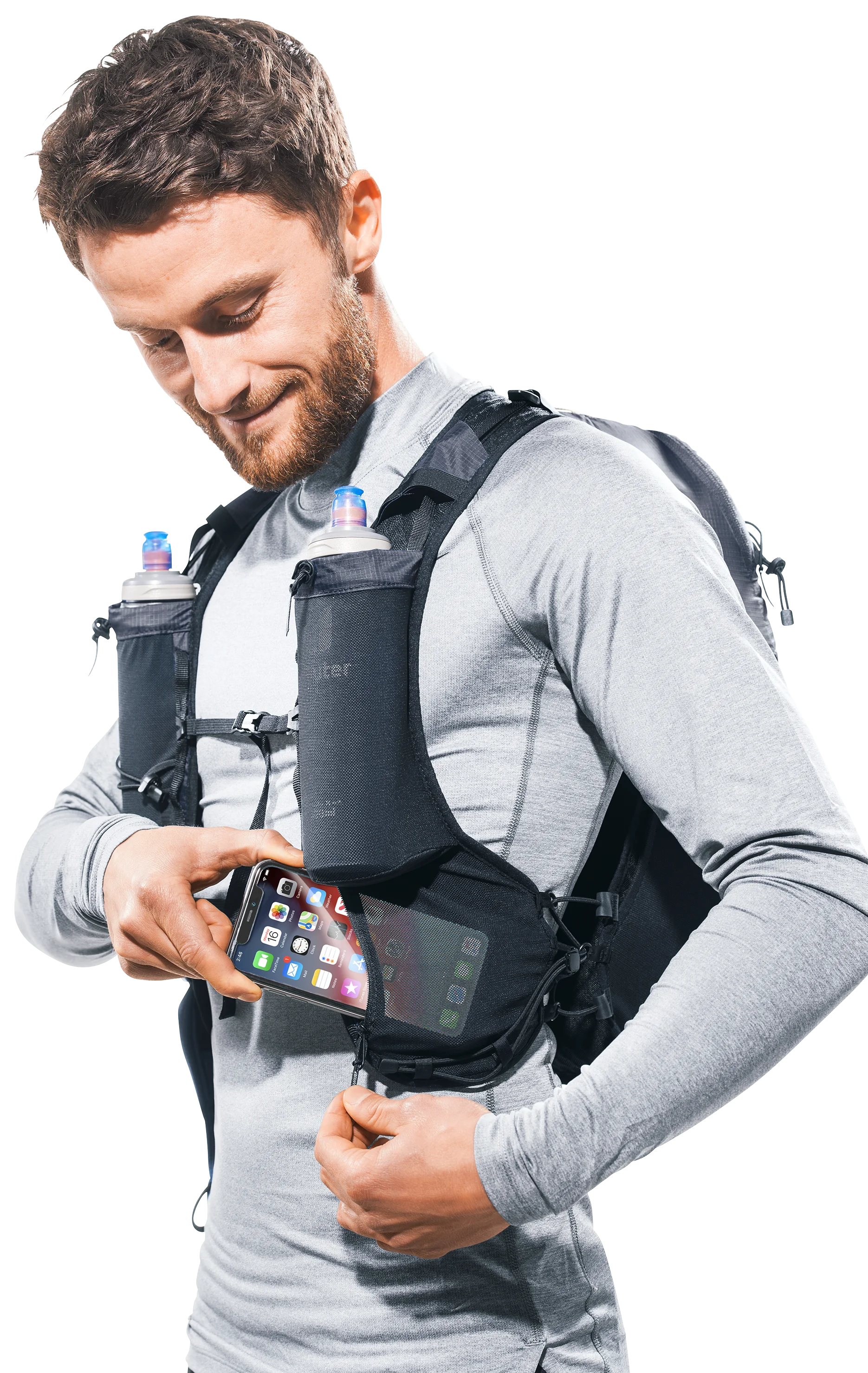 Die innovative Stockhalterung am Schultergurt vorne ermöglicht einen schnellen und unkomplizierten Zugriff auf die Stöcke, ohne dass der Rucksack abgenommen werden muss. So kannst du stets in deinem Laufrhythmus bleiben.