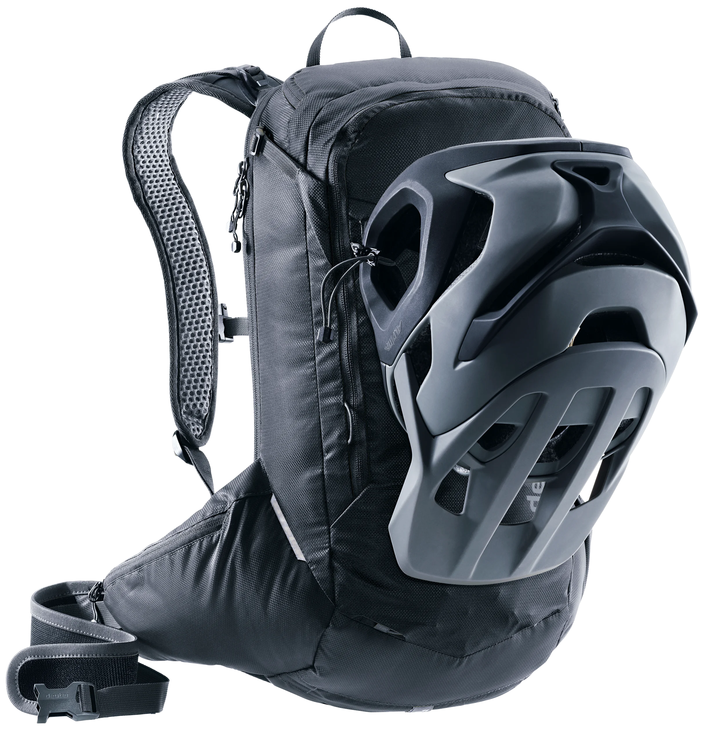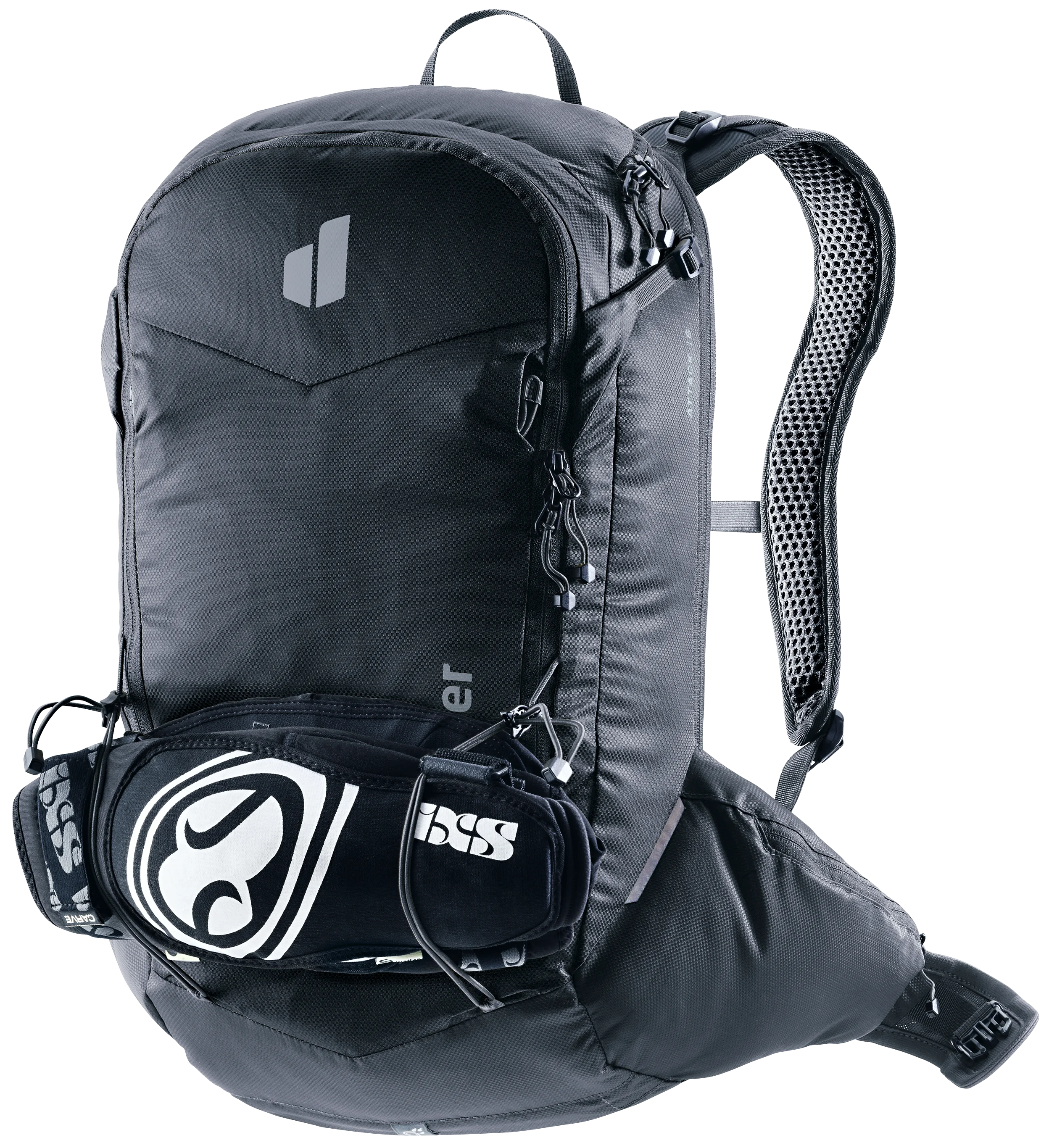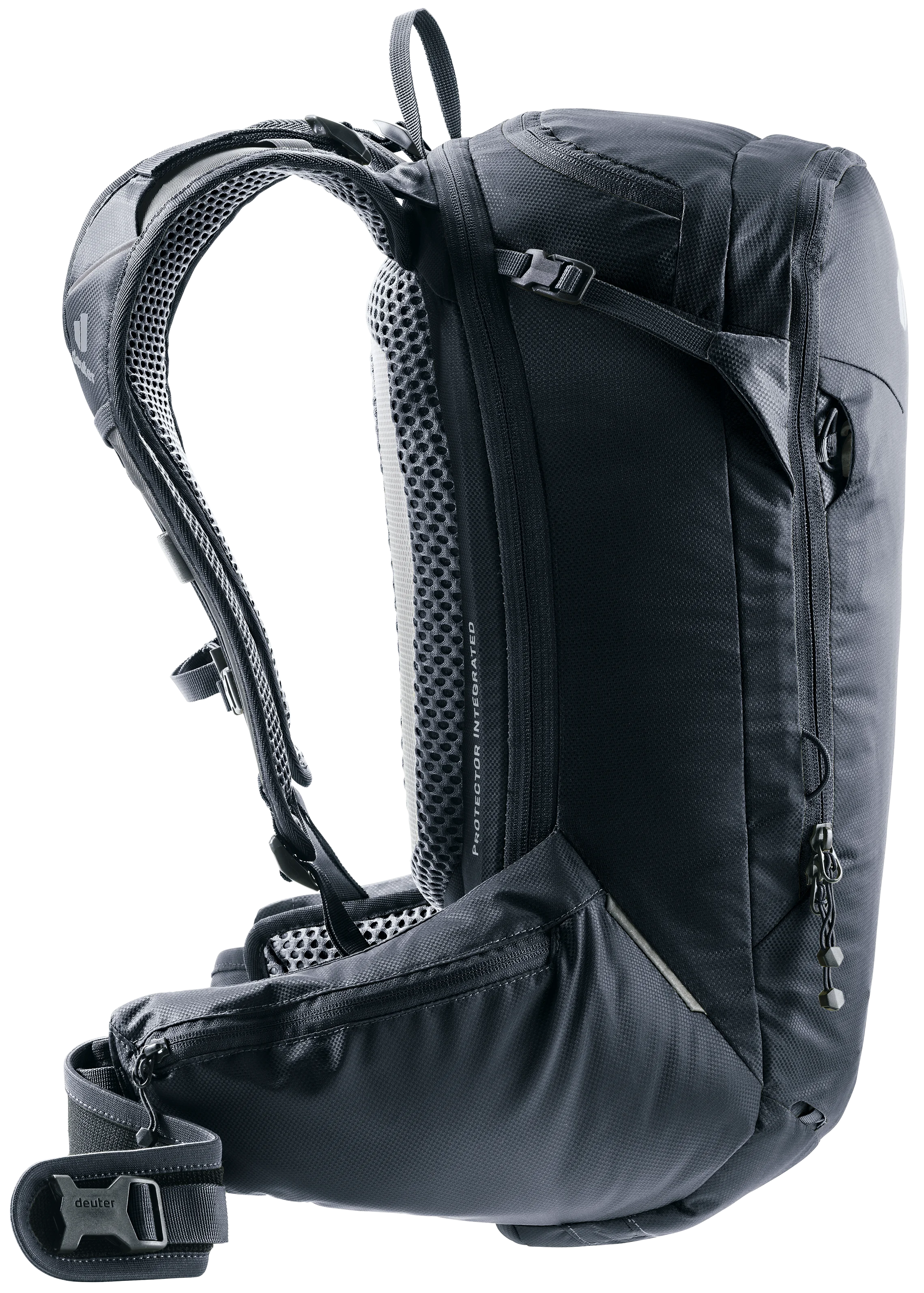 Der kompakte TÜV/GS-zertifizierte Bike-Rucksack kommt mit einem, gemeinsam mit RE ZRO® entwickelten, leichten, mehrschlagtauglichen Rückenprotektor für optimalen Schutz. Den nahtlosen Fit schaffen das Airstripes-Rückensystem, die, an den Packsack ansetzenden Hüftflossentaschen, und die belüfteten Hüftflossen. Sie lassen sich über den doppelten Hüftgurt anpassen, verteilen das Gewicht auf die Hüften und entlasten so Rücken und Schultern. Der Carrying Guard erleichtert Tragepassagen, während Helm und Protektoren bequem über elastische Cords befestigt werden können.