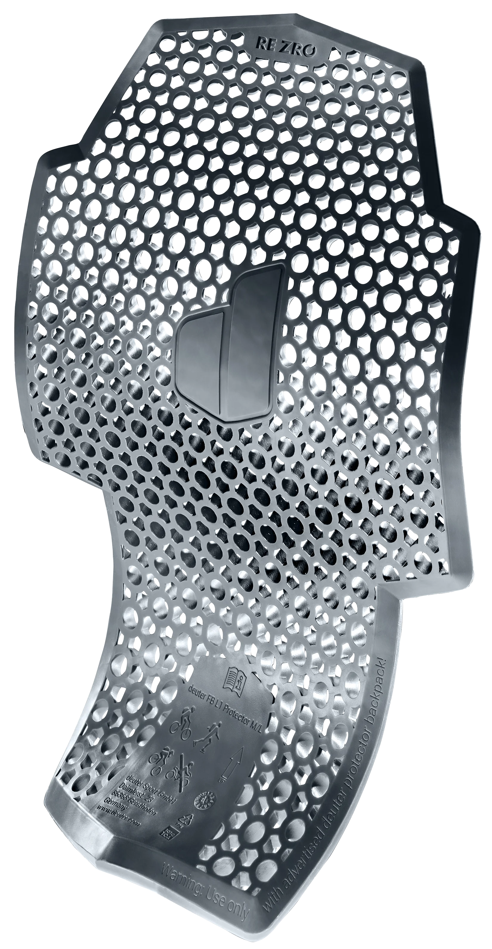 Der gemeinsam mit RE ZRO® entwickelte, herausnehmbare Rückenprotektor aus TPE bietet zuverlässigen Schutz des Rückens und ist mehrschlagtauglich. Seine flexible, besonders belüftete Struktur sorgt für hohen Tragekomfort, während das nachhaltige Material vollständig recyclingfähig und biologisch abbaubar ist. Zusammen mit dem Rucksack macht er den Attack zum TÜV-geprüften High-Performer.