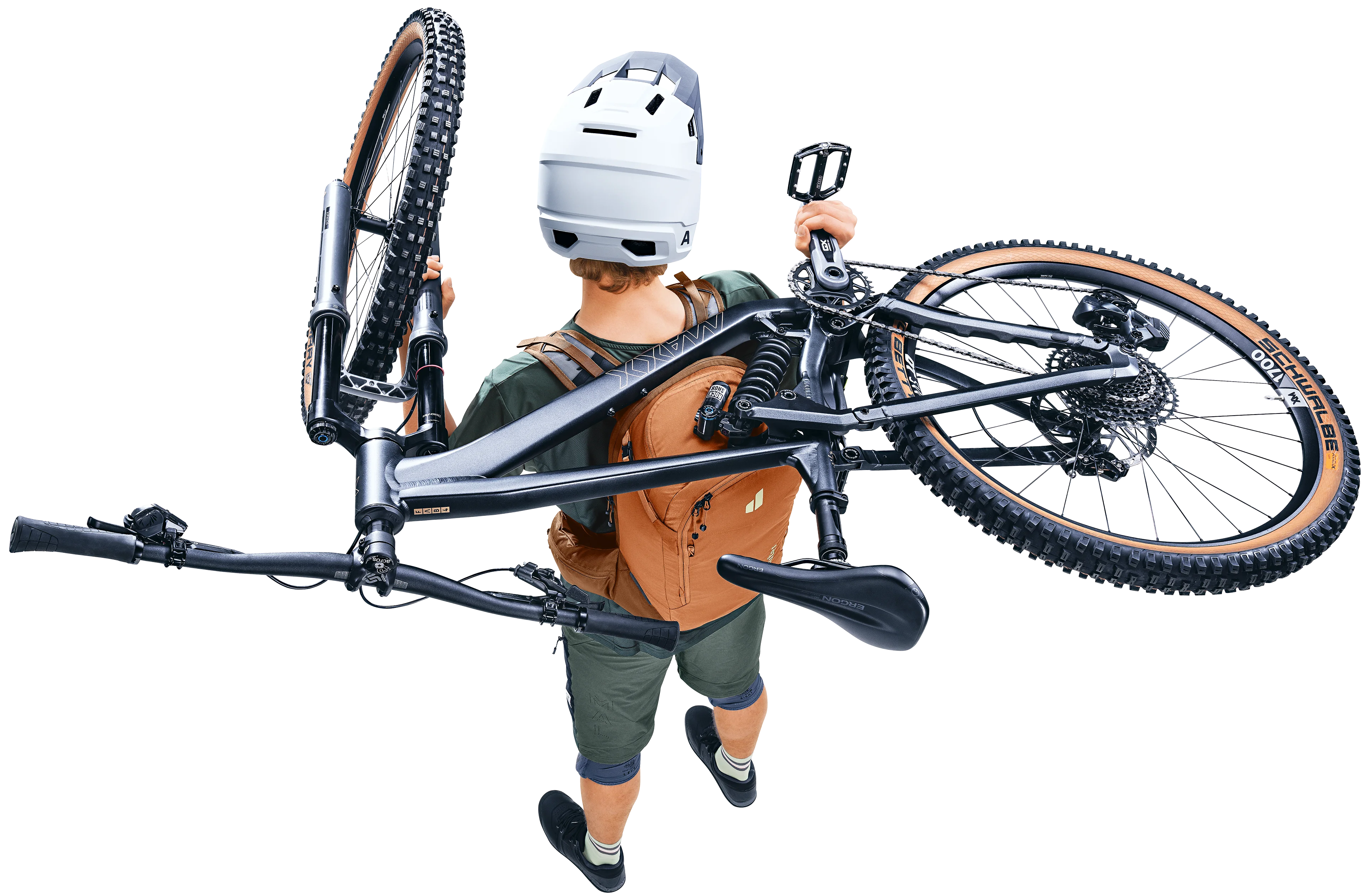 • Carrying Guard: um das Bike in Trage-Passagen fest auf dem Rucksack zu tragen