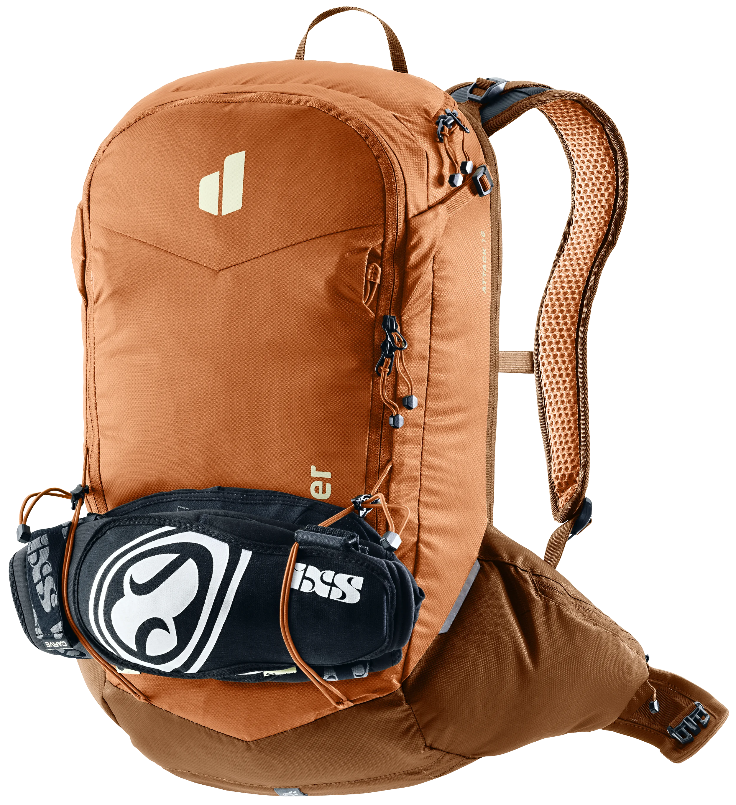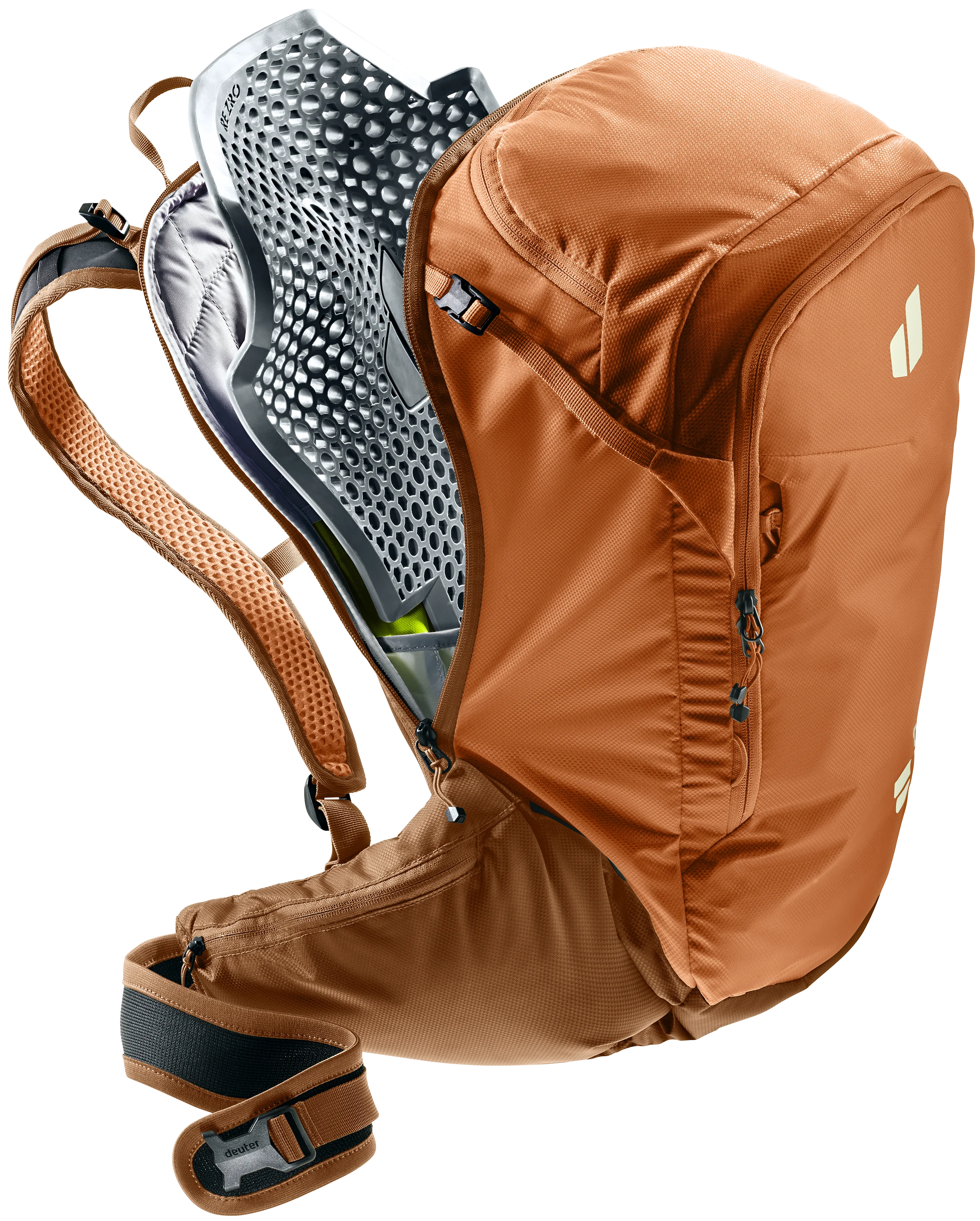 Der gemeinsam mit RE ZRO® entwickelte, herausnehmbare Rückenprotektor aus TPE bietet zuverlässigen Schutz des Rückens und ist mehrschlagtauglich. Seine flexible, besonders belüftete Struktur sorgt für hohen Tragekomfort, während das nachhaltige Material vollständig recyclingfähig und biologisch abbaubar ist. Zusammen mit dem Rucksack macht er den Attack zum TÜV-geprüften High-Performer.