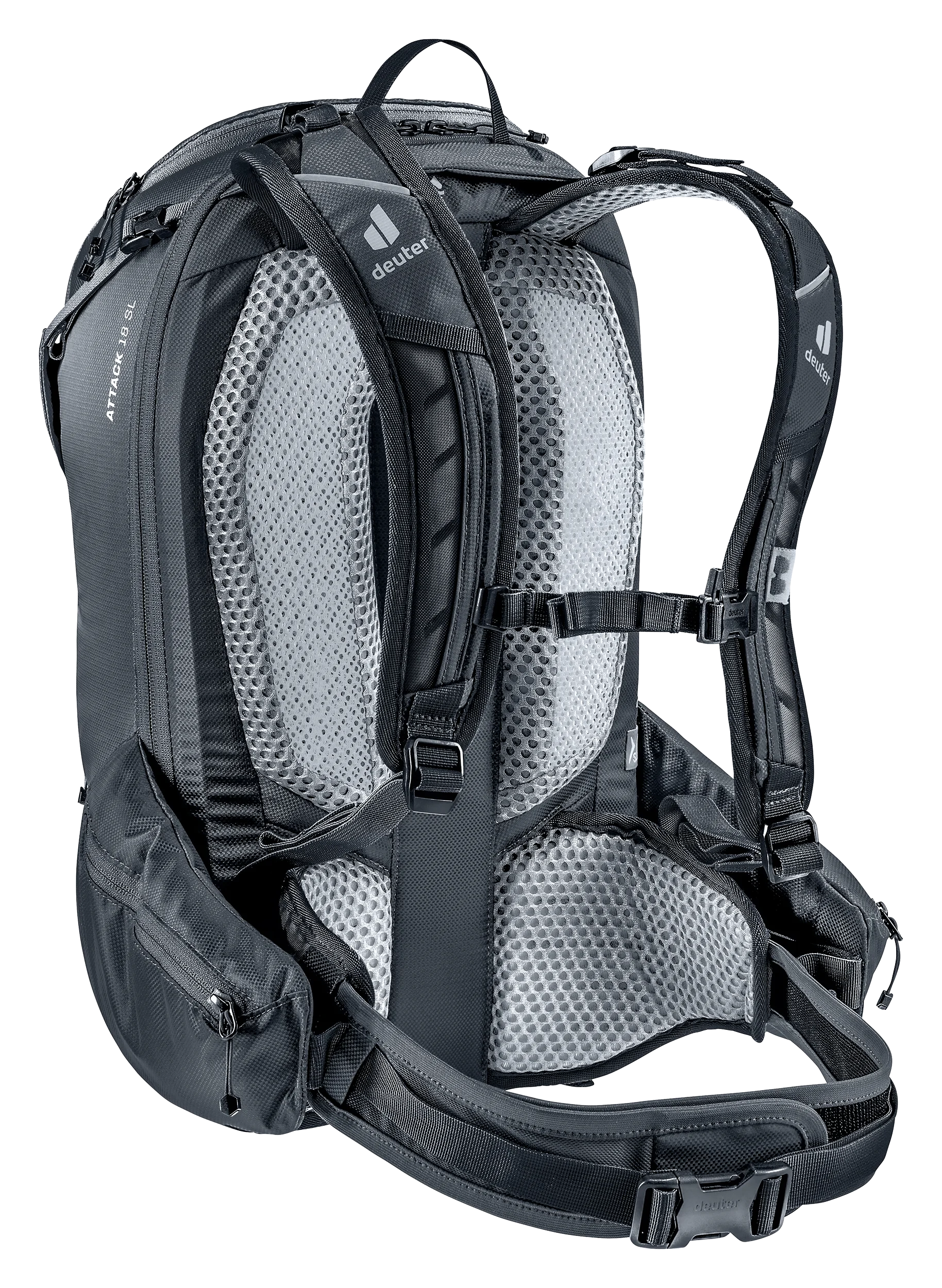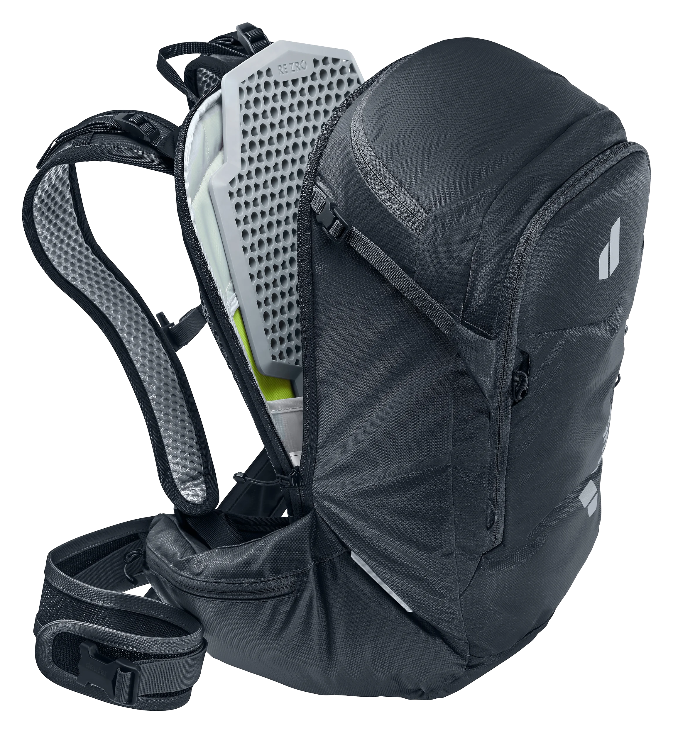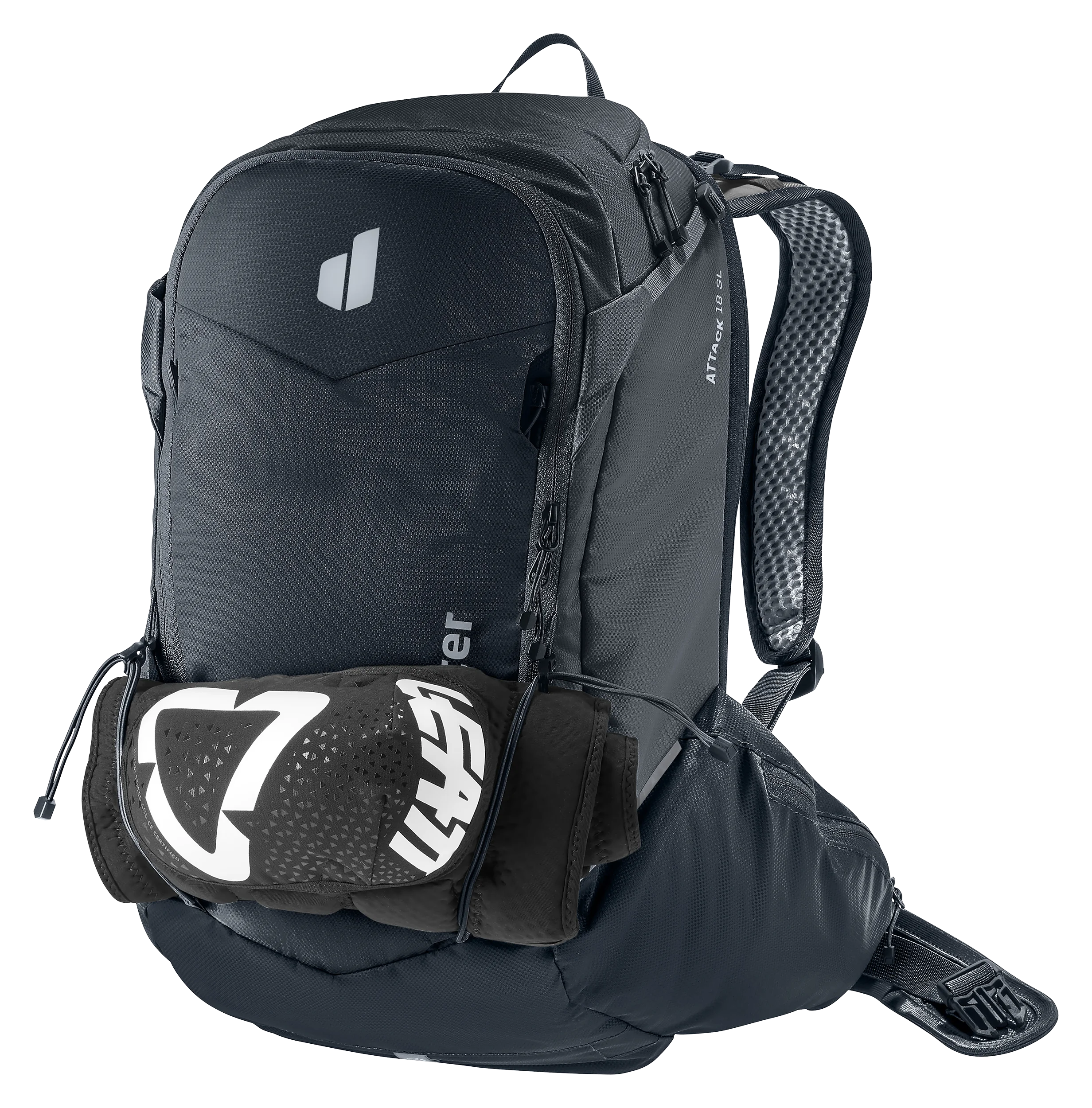 Der gemeinsam mit RE ZRO® entwickelte, herausnehmbare Rückenprotektor aus TPE bietet zuverlässigen Schutz des Rückens und ist mehrschlagtauglich. Seine flexible, besonders belüftete Struktur sorgt für hohen Tragekomfort, während das nachhaltige Material vollständig recyclingfähig und biologisch abbaubar ist. Zusammen mit dem Rucksack macht er den Attack zum TÜV-geprüften High-Performer.