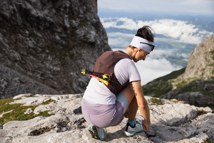 Downhill mit Stöcken erfordert sehr viel Übung, Erfahrung, Koordination und vor allem Konzentration, sonst werden die Stöcke bergab zu einer gefährlichen Stolperfalle. Beim Downhill kannst du die Stöcke auf leichteren Bergab-Abschnitten einsetzen. Zum Beispiel, wenn deine Beine müde sind und sie Entlastung brauchen. Auch die Gelenke werden dabei weniger stark belastet. Oft ist es beim Downhill aber effizienter, sicherer und auch schneller, wenn du deine Hände und Arme frei hast und damit ausbalancieren kannst. Das gilt besonders für lauftechnisch anspruchsvolle Abschnitte. Generell sollte der Stockeinsatz deine Laufleistung und Sicherheit nicht negativ beeinflussen!