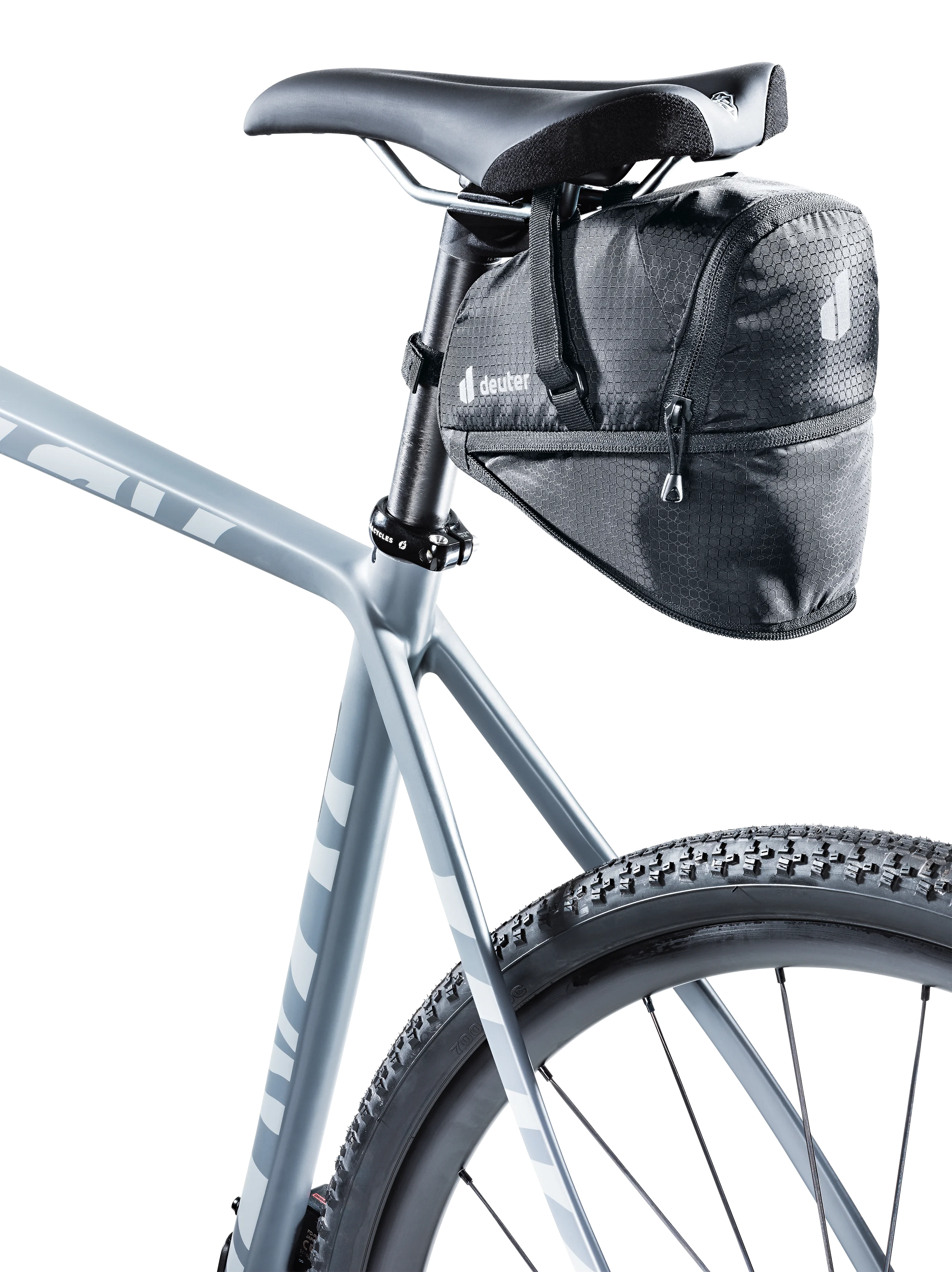 • Klettverschluss fixiert Tasche an Sattelstrebe