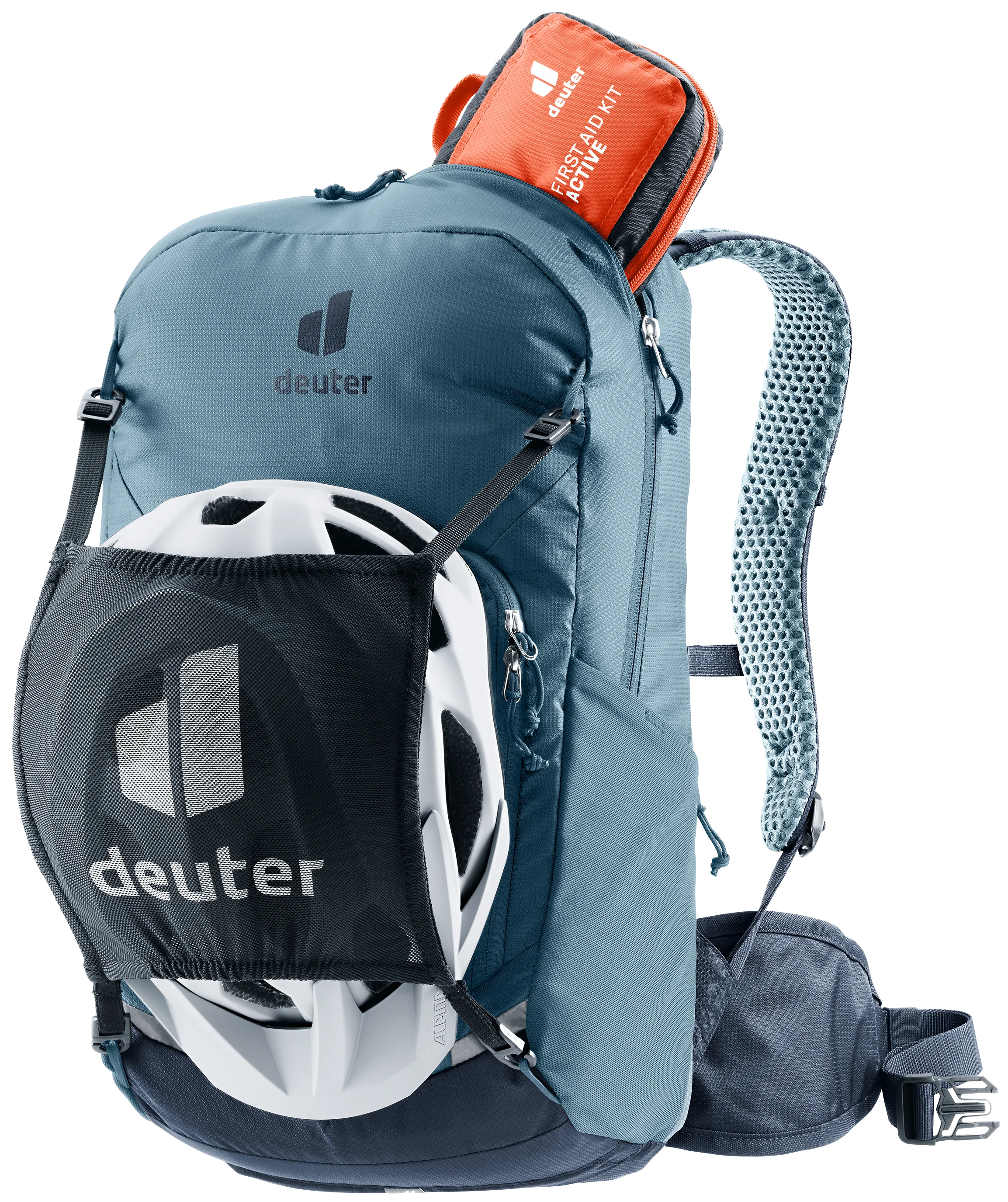 Durch die Funktionalität der praktischen Aufteilung von Fächern, Taschen, Werkzeugeinheit und Pumpenhalterung sowie die Flexibilität der integrierten Stockhalterung und des abnehmbaren Helmnetzes ist dieser Rucksack vom Badeausflug bis zur Bike- & Hike-Tour einsetzbar. Zudem erlaubt das luftdurchlässige Airstripes-Rückensystem den vielseitigen Einsatz. Für Stabilität sorgen der Brustgurt und die belüfteten Hüftflossen, die den Packsack optimal in Position und stabil am Körper halten.