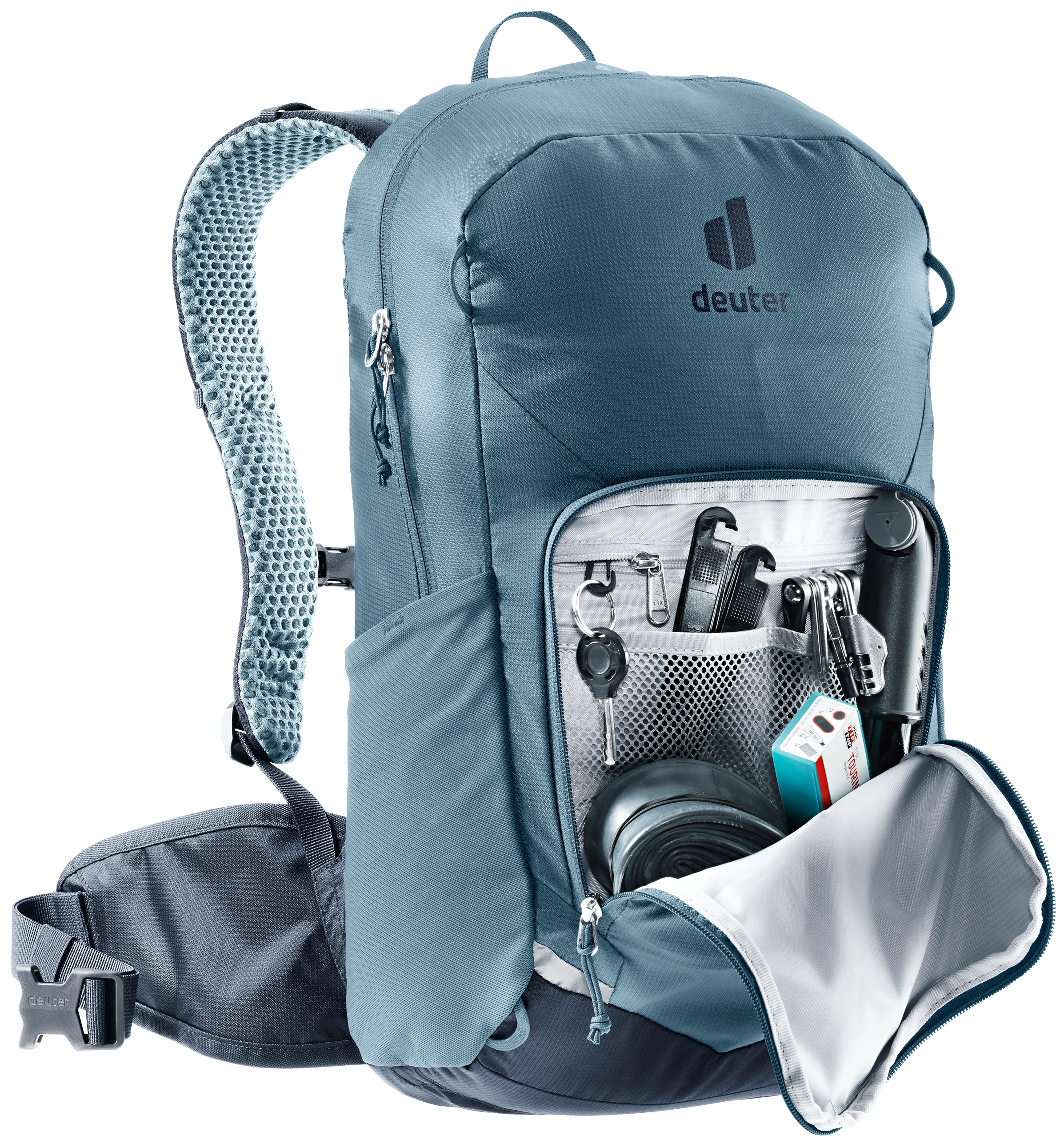 Die praktische Aufteilung von Fächern, Taschen, Werkzeugeinheit und Pumpenhalterung sorgt für echte Funktionalität und erleichtert die Organisation.