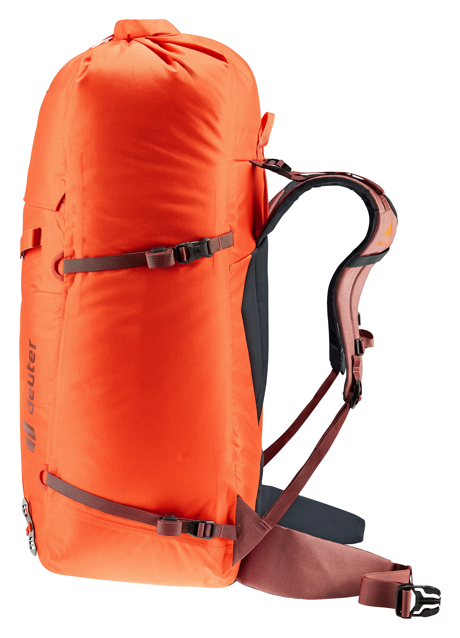 Die seitlich verstaubaren Hüftflossen sorgen nicht nur für ein herausragendes Verhältnis von Tragekomfort zu Gewicht, sondern ermöglichen zudem vielseitige Einsatzmöglichkeiten des Rucksacks sowie das Tragen eines Klettergurtes.