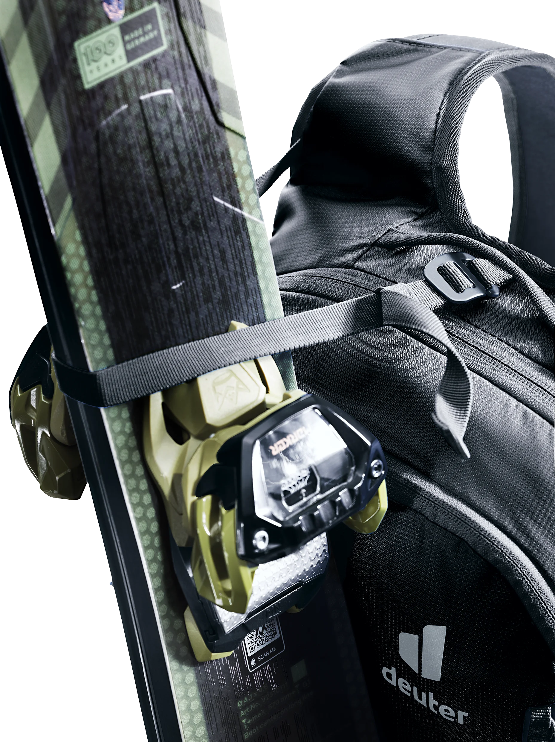 Der All-Mountain Rucksack mit komfortablem Alpine-Rückensystem hat einen körpernahen Lastenschwerpunkt und sorgt so für einen kompakten Sitz. Pickel- und Stockhalterung können in eine diagonale Skifixierung gewandelt werden. Die seitlichen Kompressionsriemen in eine Snowboardfixierung auf der Rucksackfront. Der schnelle Zugriff auf das Haupt- und Sicherheitsausrüstungsfach machen den Rucksack geländetauglich - auf und neben der Piste.