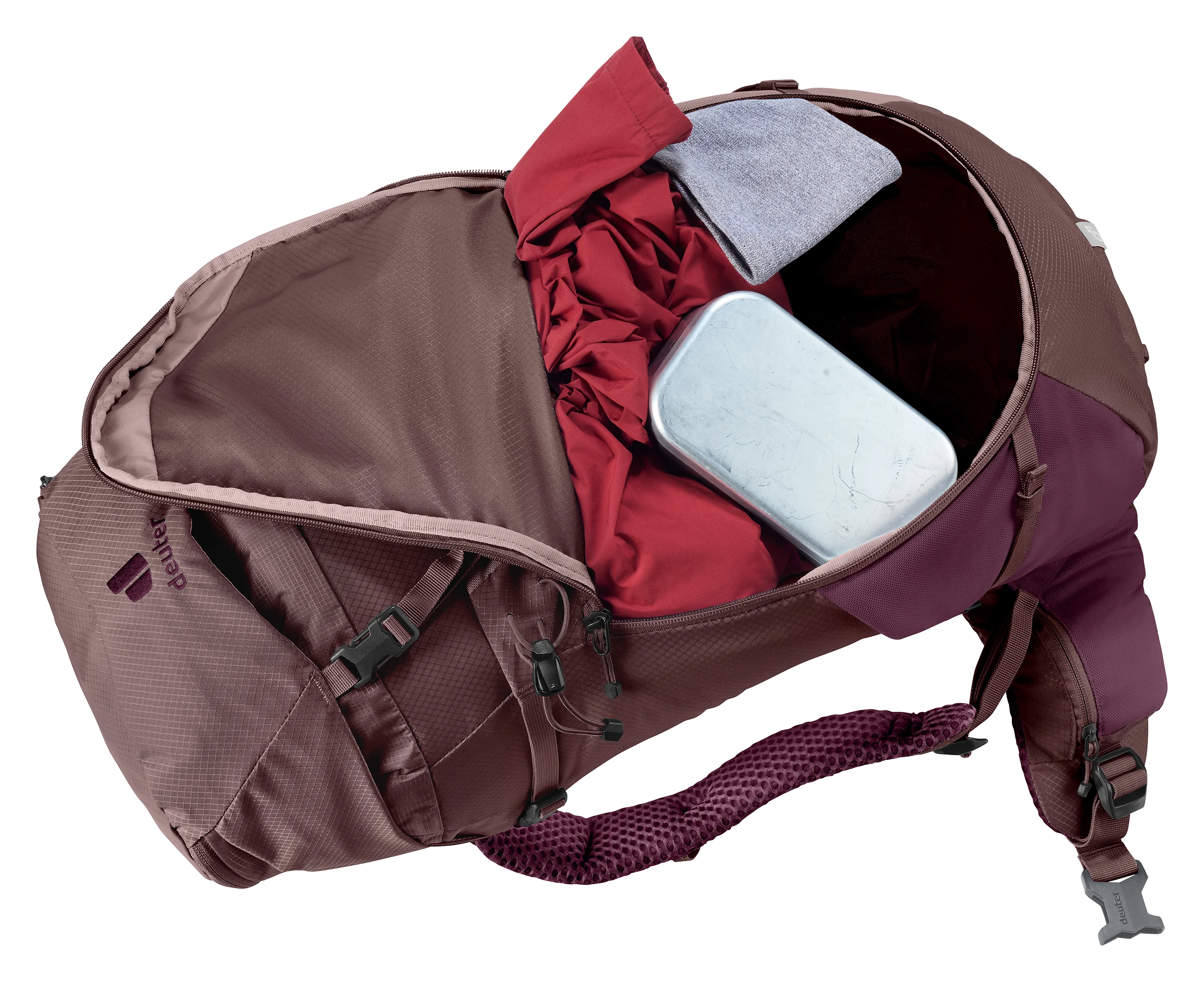 Der speziell auf eine schmalere Statur abgestimmte, leichte Wanderrucksack sorgt dank Aircomfort-Rückensystem mit ActiveFit-Schulterträgern und Hüftflossen mit Pull-Forward-Verstellung für eine optimale Gewichtsverlagerung, gleichmäßige Lastenverteilung und angenehme Belüftung. Die Ausrüstung für längere Tages- und Mehrtageswanderungen kann in einer Vielzahl an Taschen, Fächern, über die geräumige Frontöffnung oder an Befestigungsschlaufen und Stockhalterung verstaut werden.