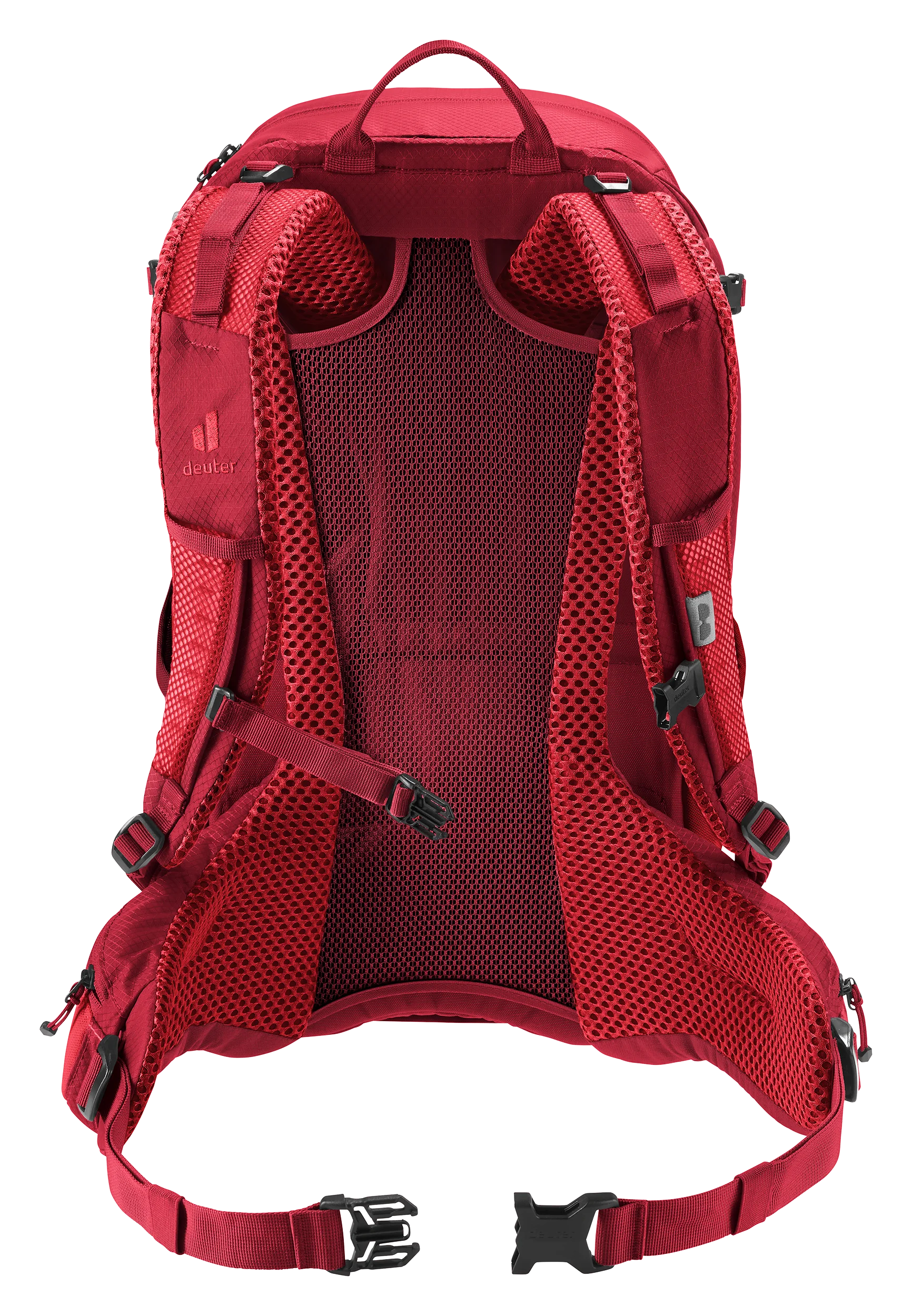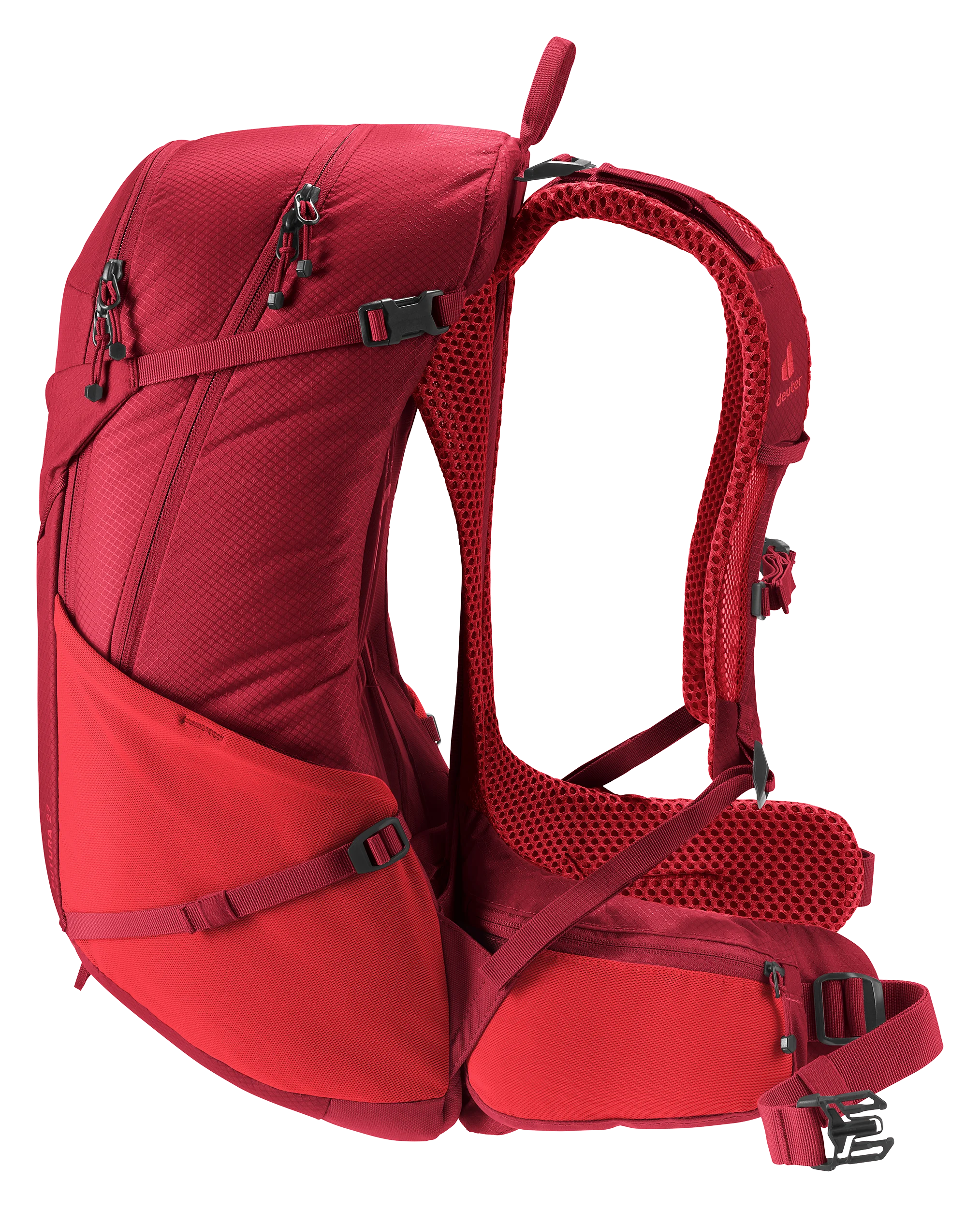 Der optimierte Materialeinsatz macht das Aircomfort-Rückensystem noch leichter und luftdurchlässiger bei verbessertem Tragekomfort. Die Verbreiterung des Rückennetzes im Lendenwirbelbereich sowie ein weicheres Netzmaterial sorgen nicht nur für maximale Belüftung, sondern auch für einen besonders anschmiegsamen Sitz des Rucksacks.