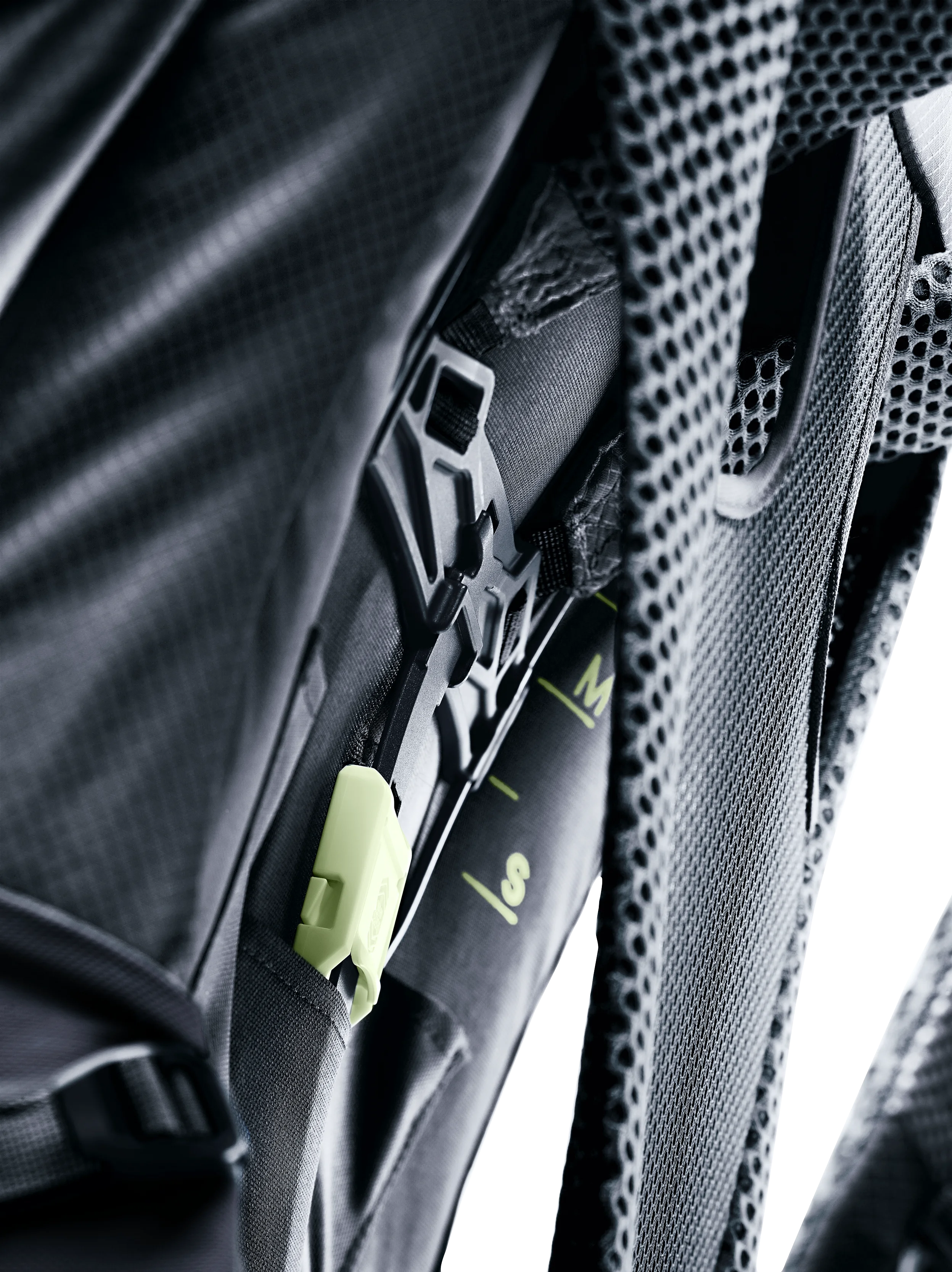 Der optimierte Materialeinsatz macht das Aircomfort-Rückensystem noch leichter und luftdurchlässiger bei verbessertem Tragekomfort. Die Verbreiterung des Rückennetzes im Lendenwirbelbereich sowie ein weicheres Netzmaterial sorgen nicht nur für maximale Belüftung, sondern auch für einen besonders anschmiegsamen Sitz des Rucksacks.