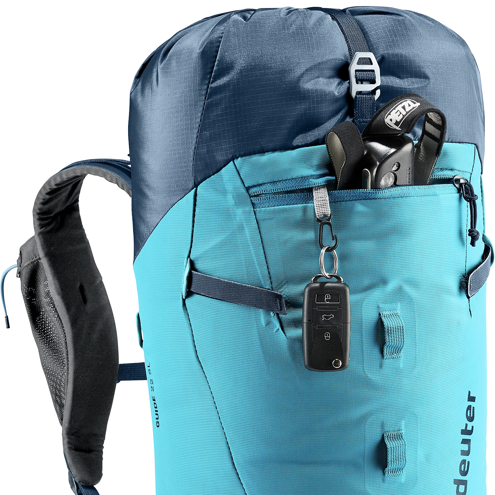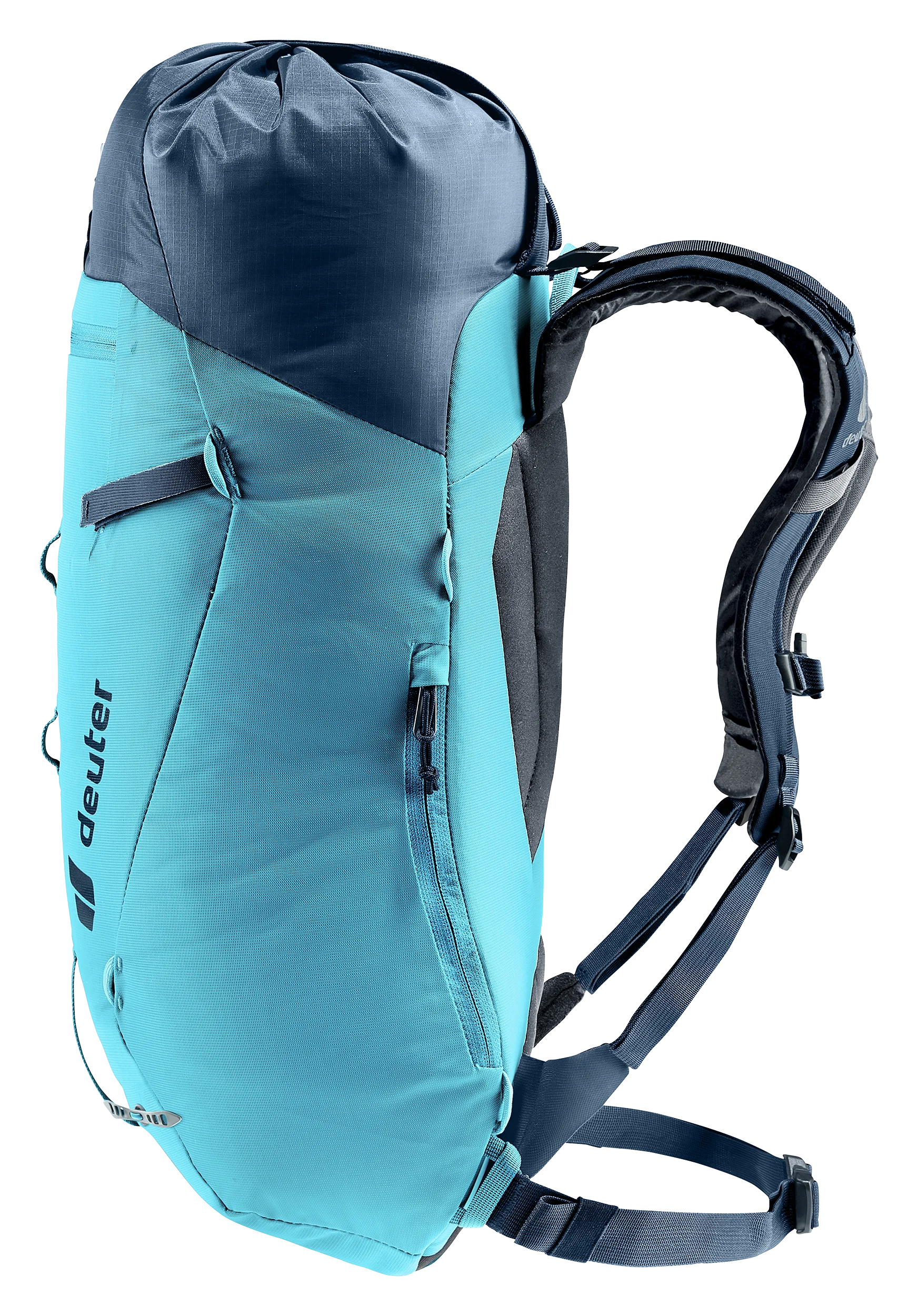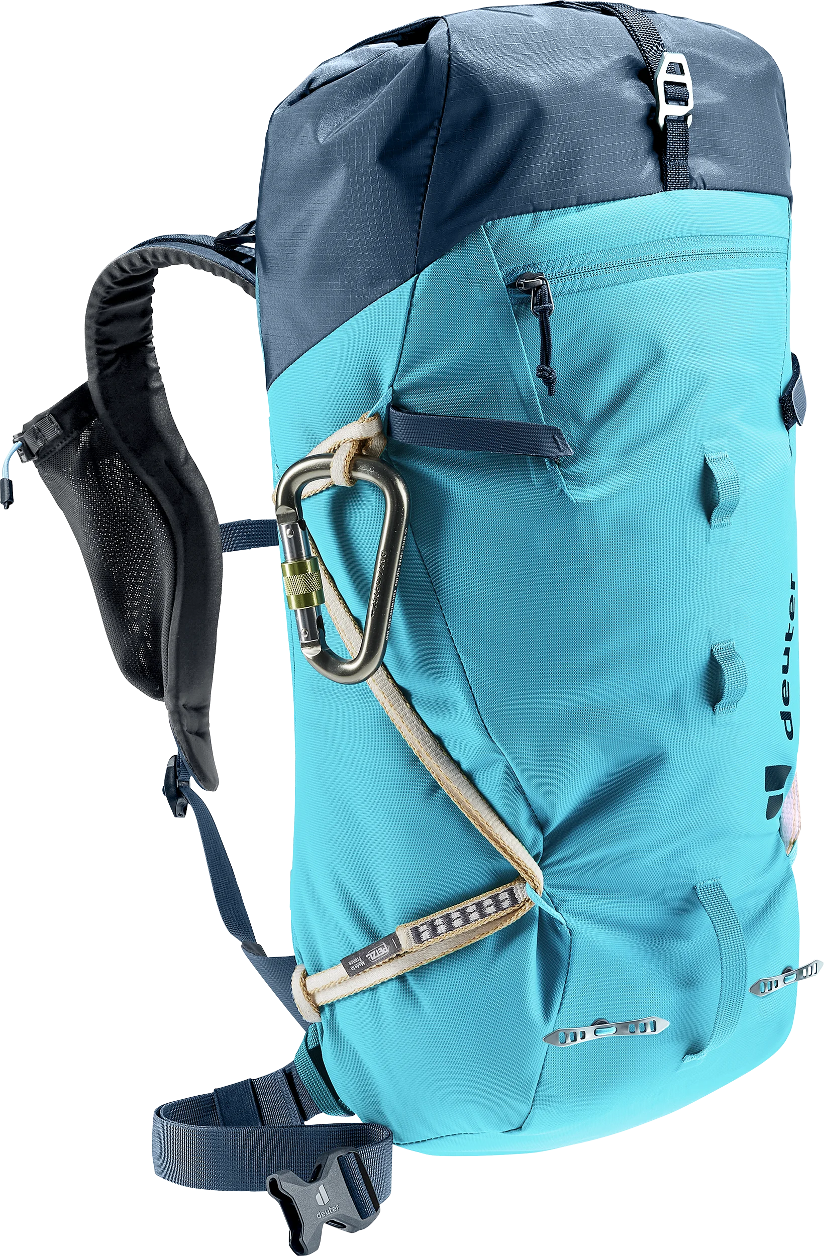 Die seitlich verstaubaren Hüftflossen sorgen nicht nur für ein herausragendes Verhältnis von Tragekomfort zu Gewicht, sondern ermöglichen zudem vielseitige Einsatzmöglichkeiten des Rucksacks sowie das Tragen eines Klettergurtes.