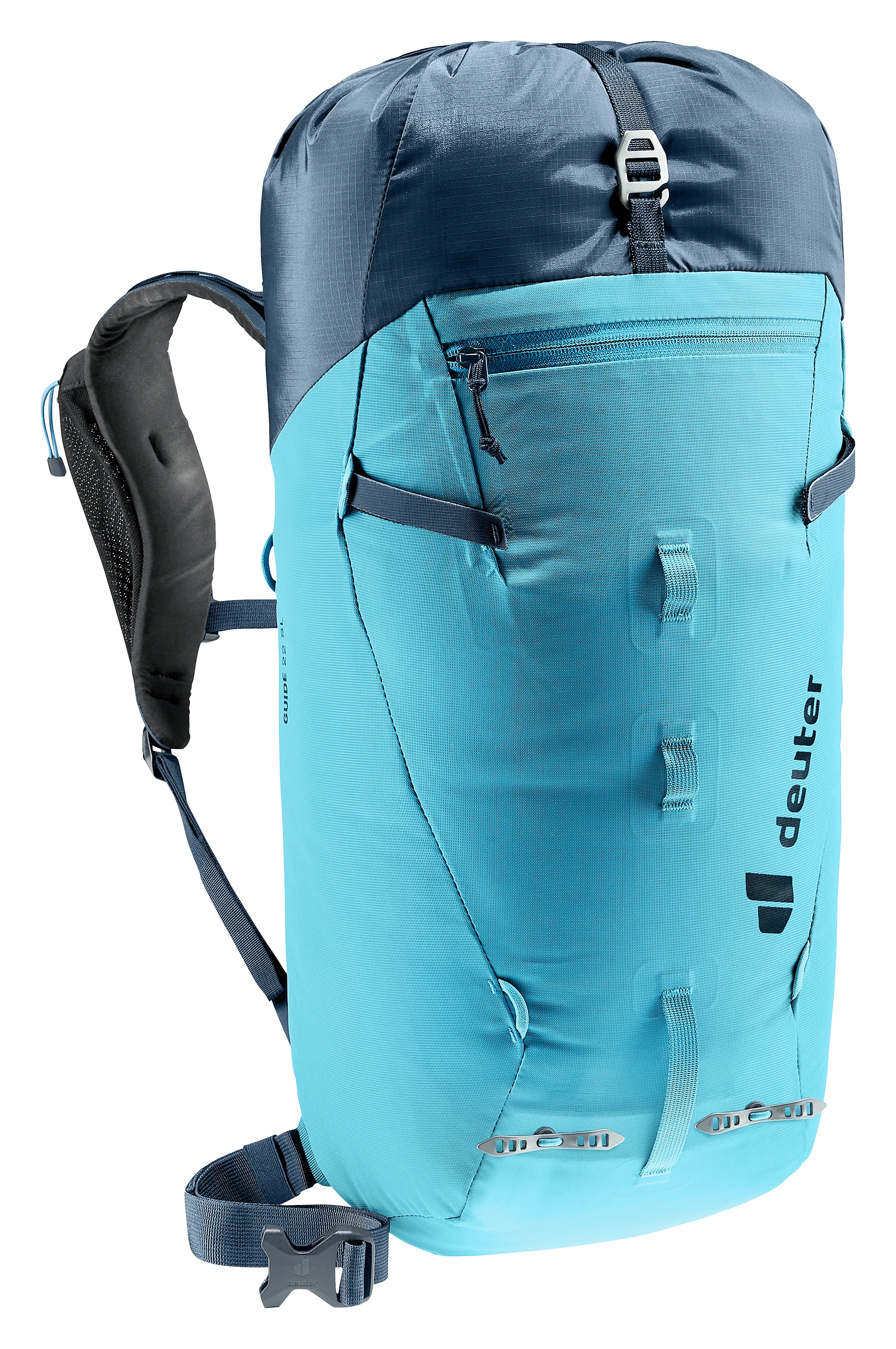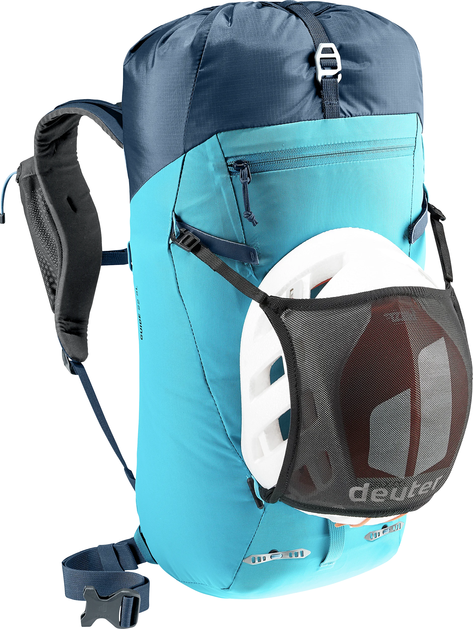 Der klimaneutrale, PFAS-freie Guide SL überzeugt durch niedriges Gewicht und zuverlässiges Handling. Robuste Materialien, hochwertige Verarbeitung, ausgefeilte Befestigungsmöglichkeiten für Pickel und Helm sowie die verstaubare Seilfixierung machen den Rucksack zum Klassiker für anspruchsvolle alpine Unternehmungen. Die Deckelkonstruktion erlaubt einen schnellen Zugriff auf das Hauptfach. Mit dem im Deckel integrierten, abnehmbaren Netz lässt sich der Helm je nach Bedarf entweder oben am Deckel oder an der Rucksackfront befestigen.