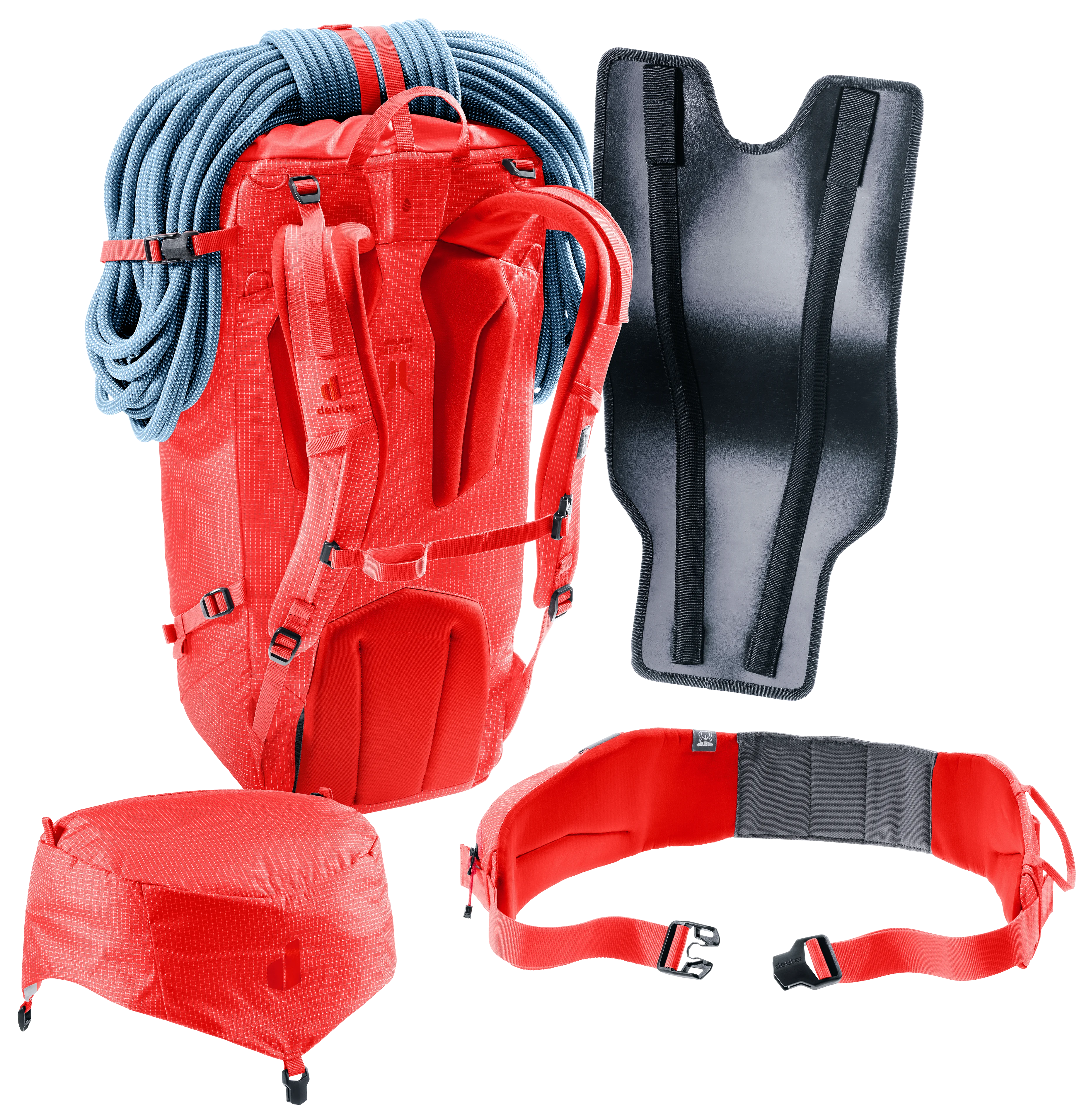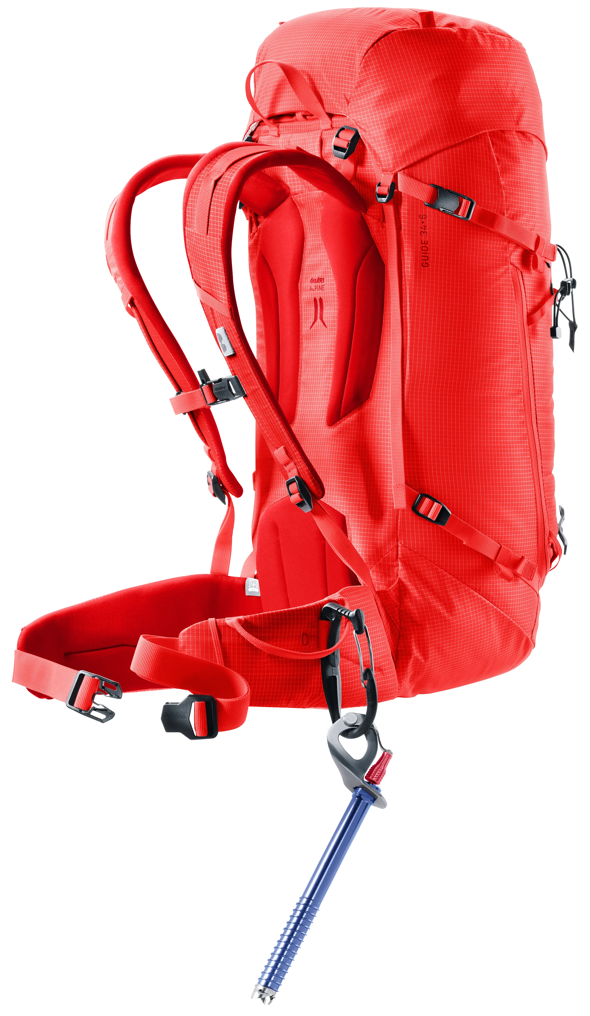 Mit alpinistischer Ausstattung und robusten Materialien bietet der Rucksack alles, was Bergsteiger benötigen. Abnehmbare Hüftflossen und Deckelkonstruktion, Material- und Befestigungsschlaufen, beidseitige Pickelhalterung, seitliche Ski-Fixierung, Seilfixierung, Helmnetz und eine Volumenerweiterung bieten große Vielseitigkeit. Das Alpine-Rückensystem mit ergonomischer Rückenplatte und Federstahlrahmen garantiert Stabilität, gute Belüftung und hohen Tragekomfort, selbst bei schwerer Beladung.