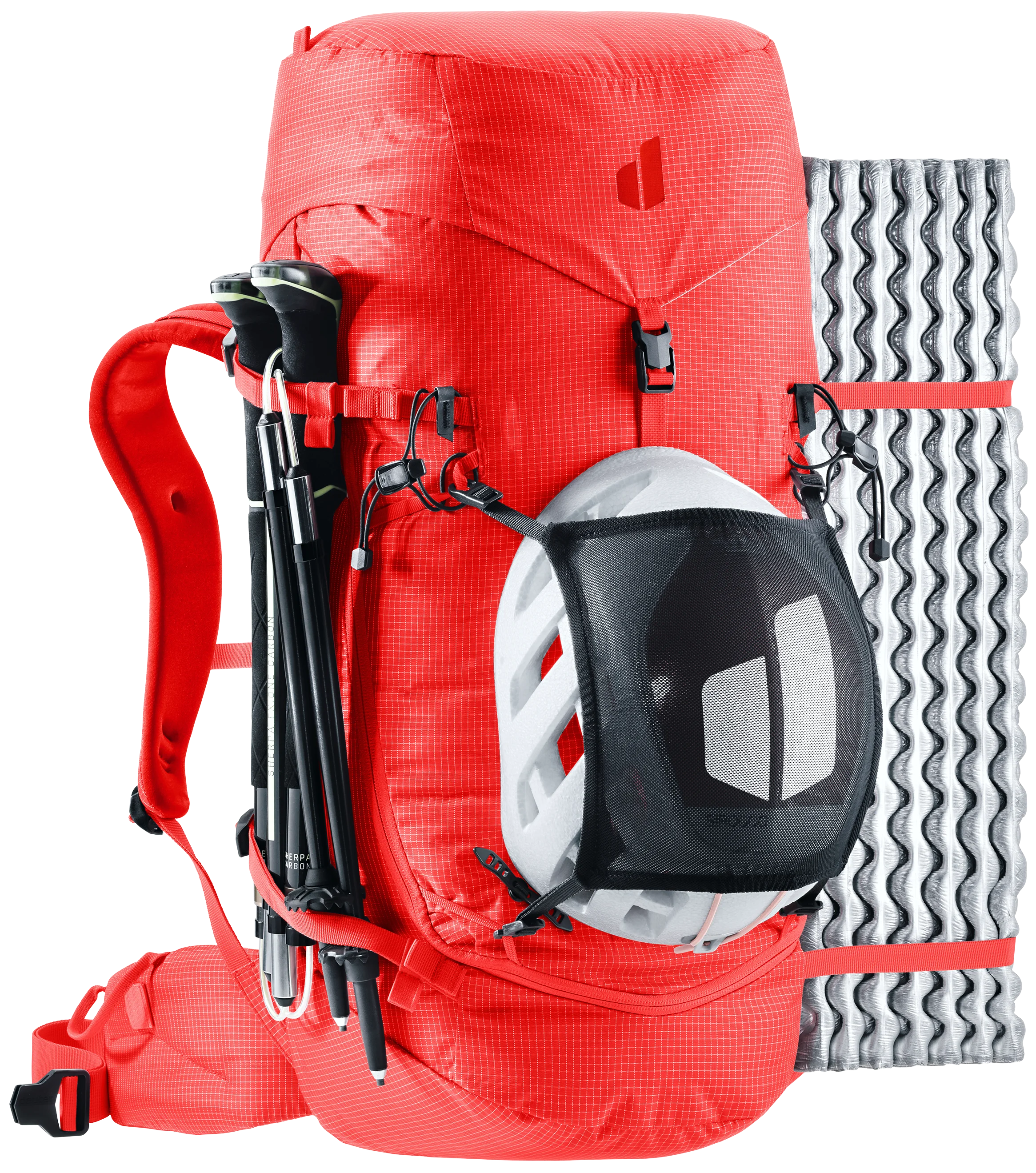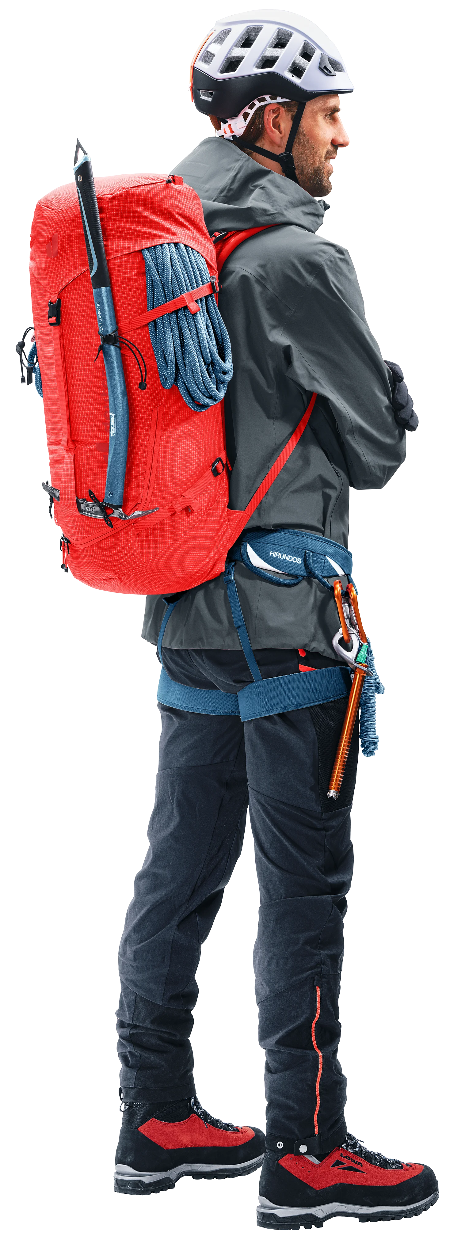 Dank abnehmbarer Hüftflossen und Deckelkonstruktion, Material- und Befestigungsschlaufen, beidseitiger Pickelhalterung, seitlicher Ski-Fixierung, Seilfixierung, Helmnetz und einer Volumenerweiterung bietet dieser Rucksack alles, was Alpinist*innen benötigen. Ob mit Klettergurt in ausgesetzten Passagen, befestigten Skiern am steilen Gipfelaufschwung oder bei anderen alpinen Herausforderungen - der Einsatz des Rucksacks ist nahezu grenzenlos.
