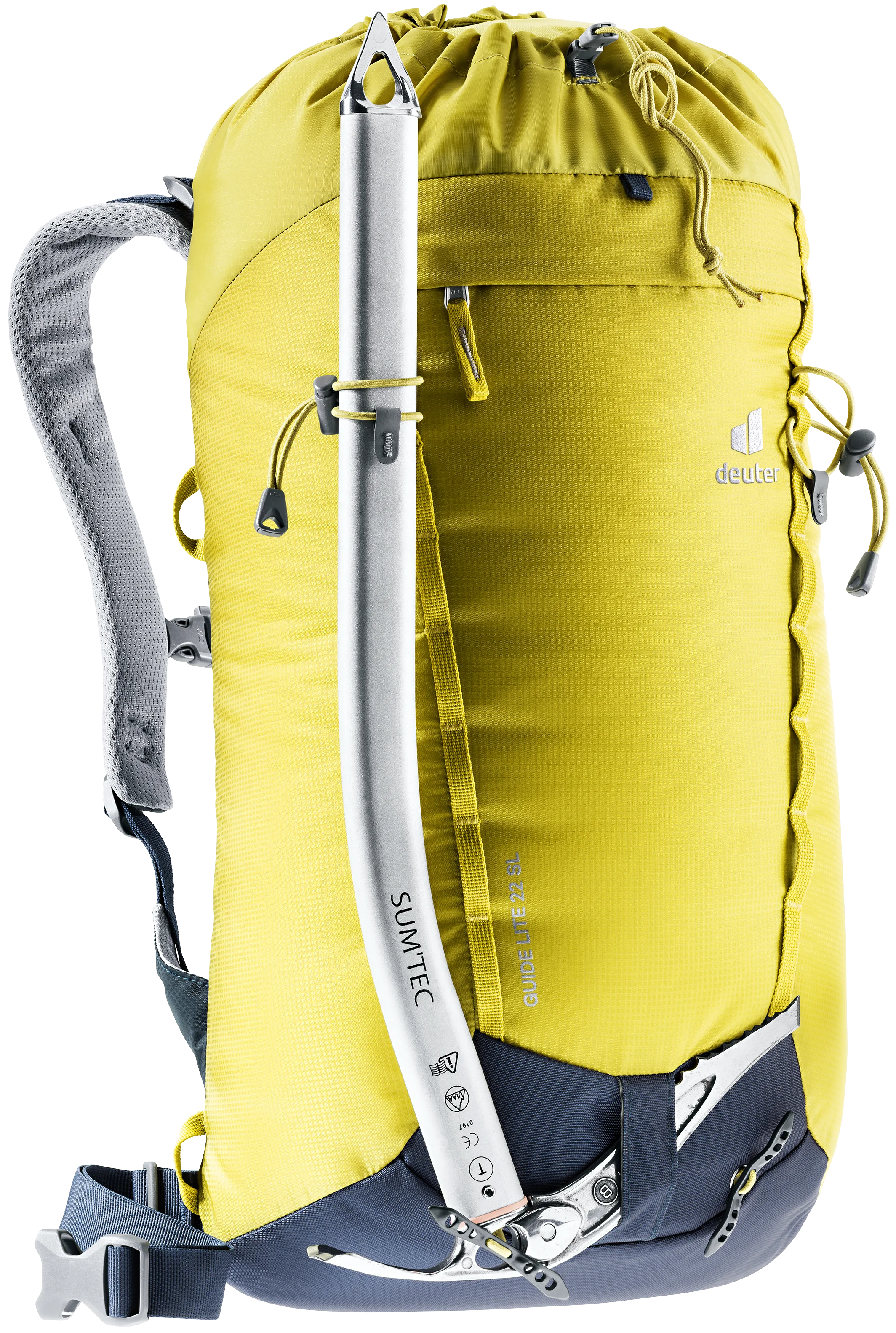 mit der 3-Punkt-Fixierung für den Eispickel. Dank der neuen Halterung bleibt der Pickel fest und nah am Rucksack.