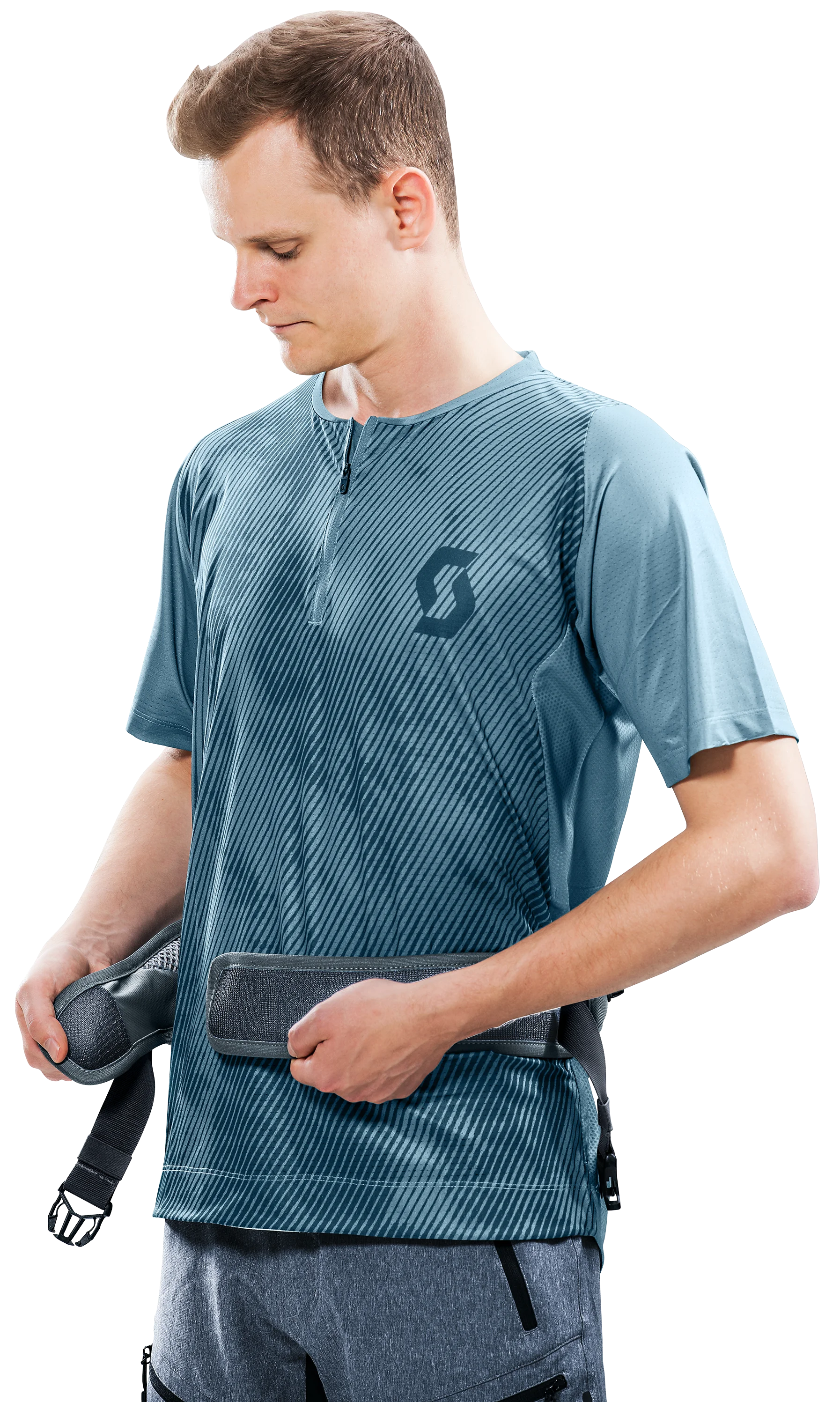Das komfortable Tragesystem mit elastischem Hüftgurt und neuem, luftdurchlässigen, schnell trocknenden Abstandsgewirke (Air Spacer Mesh) garantiert eine maximale Belüftung des Rückens und sitzt auch auf sportlichen Trails kompakt am Körper.
