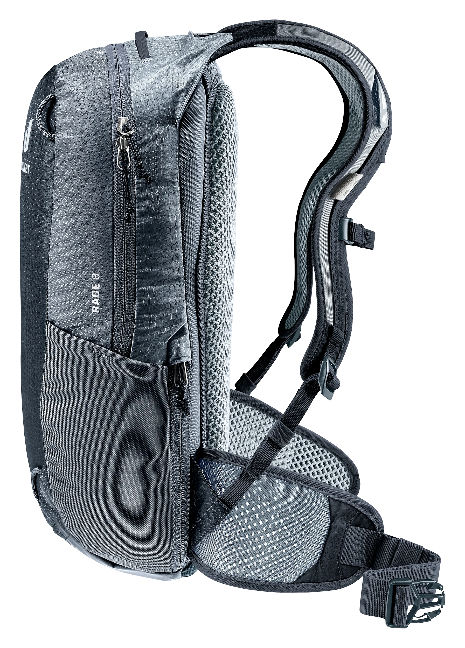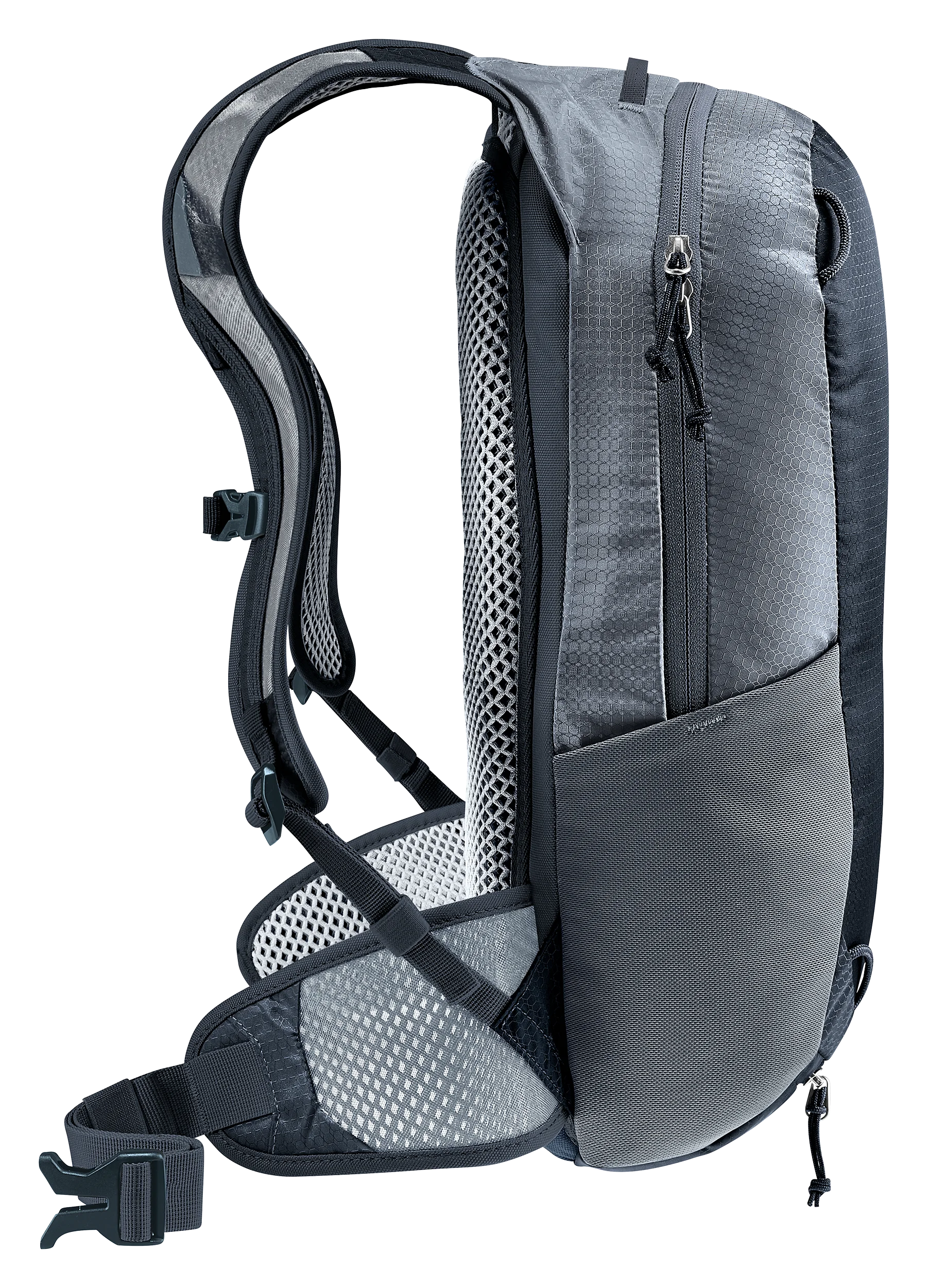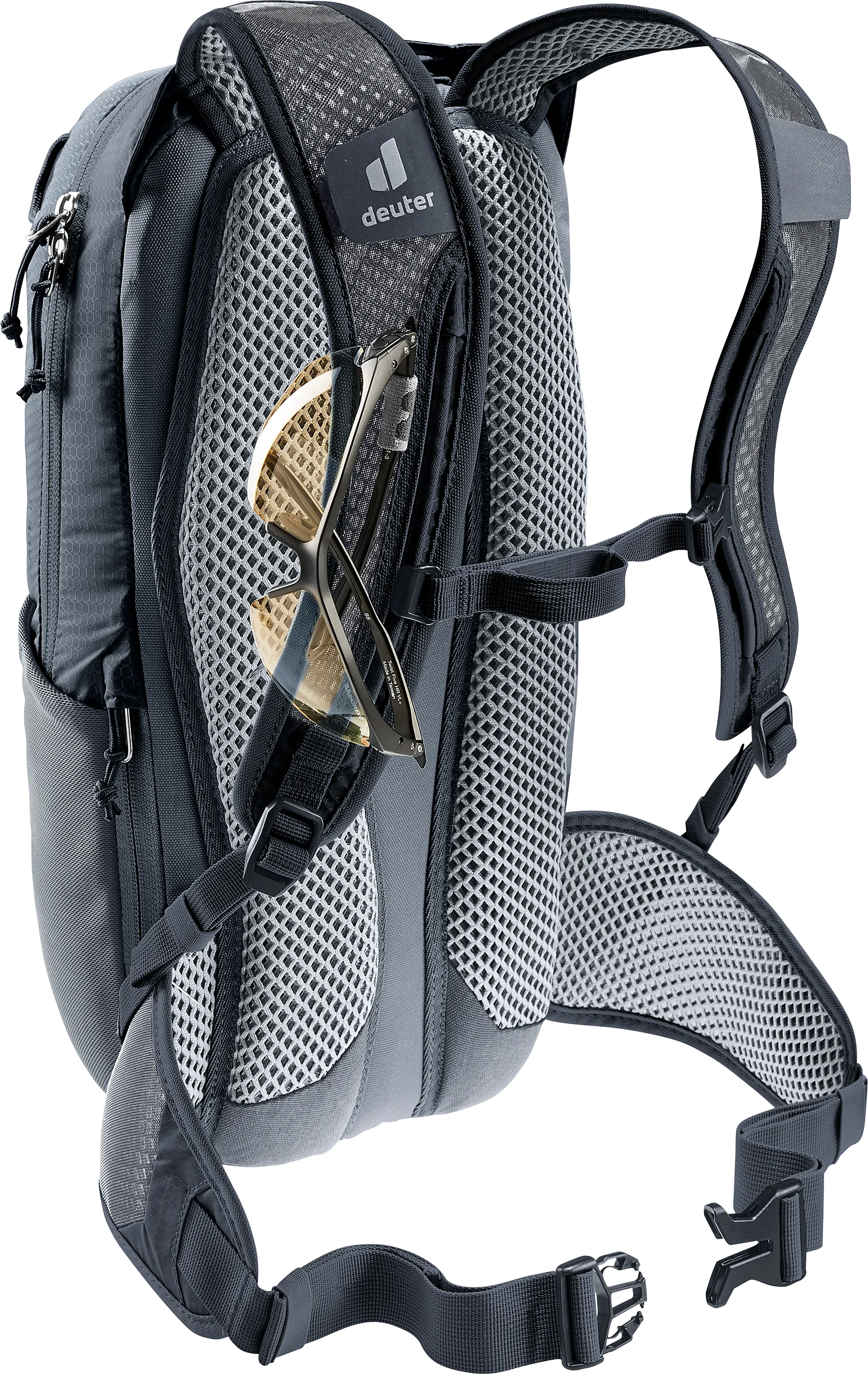 Das luftdurchlässige Airstripes Rückensystem garantiert eine gute Belüftung des Rückens und sitzt auch auf sportlichen Trails kompakt am Körper. Zusätzlich halten der Brustgurt mit neuer einhändig bedienbarer Brustgurtschnalle und die Netzhüftflossen den Packsack optimal in Position, auch wenn es mal ruppiger zugeht.