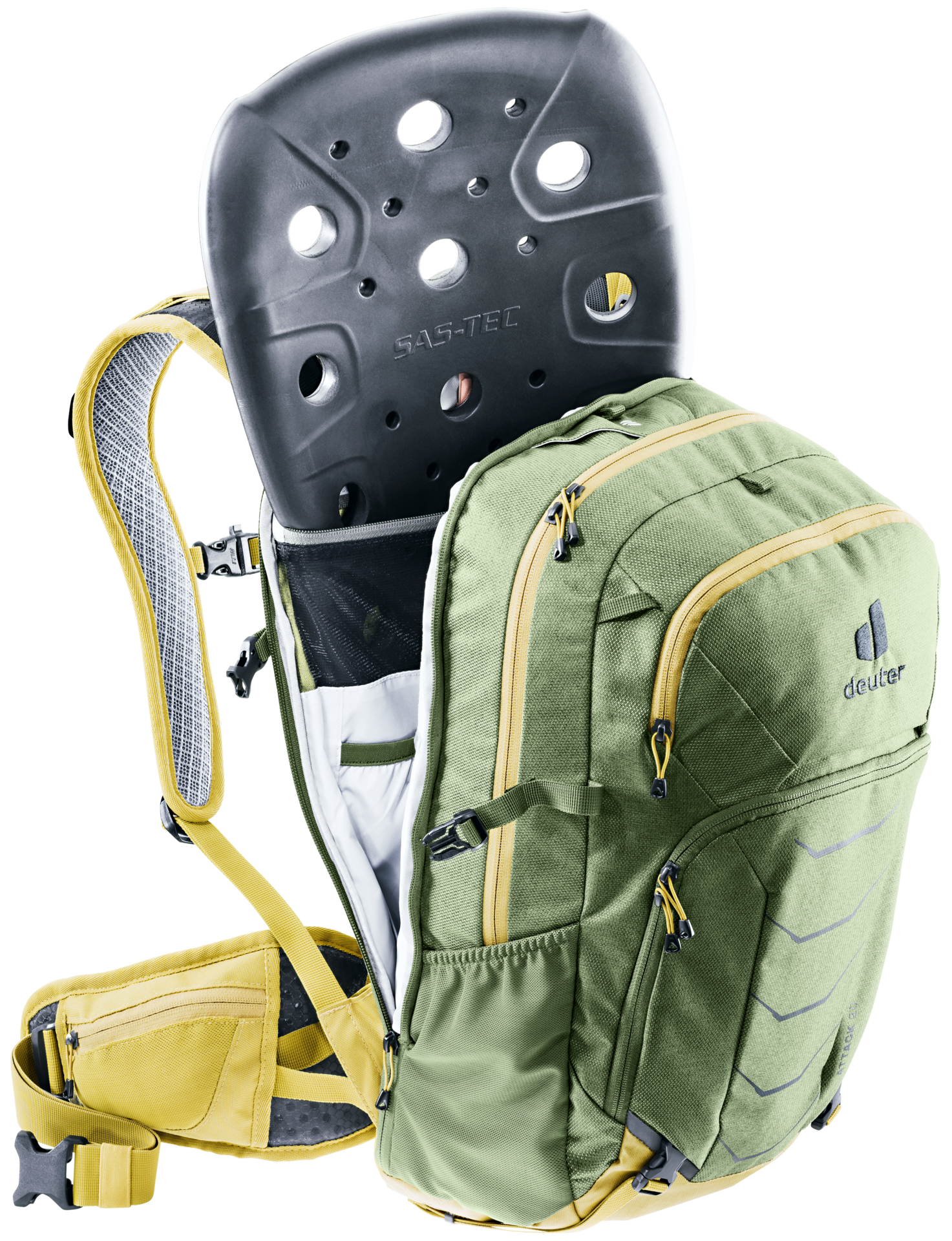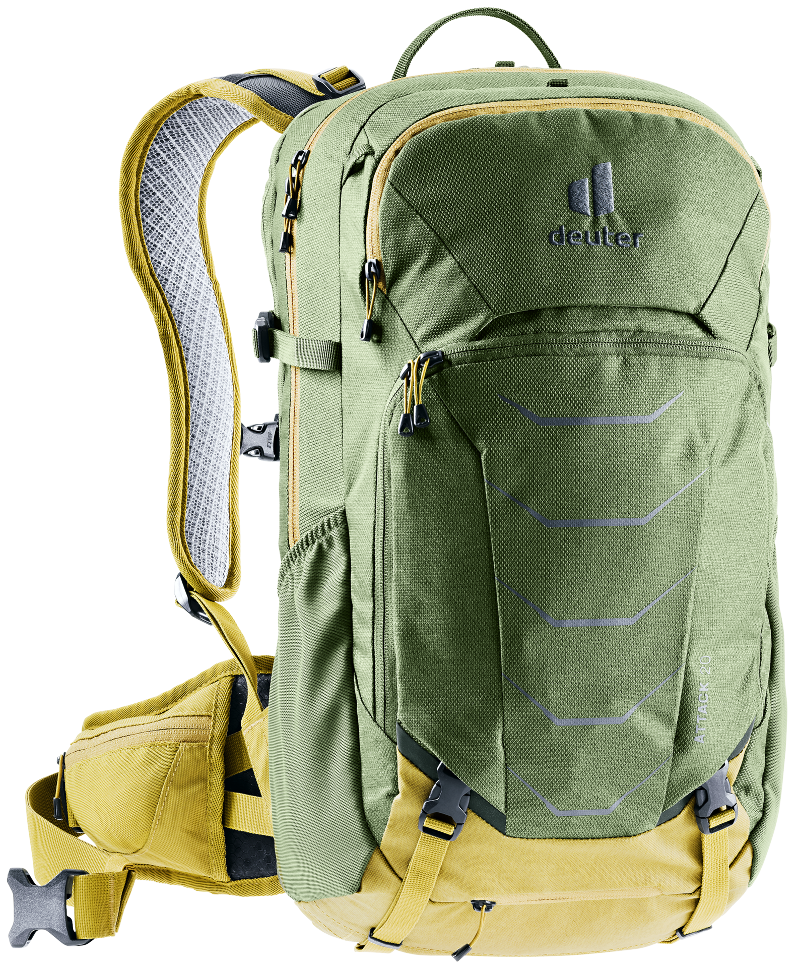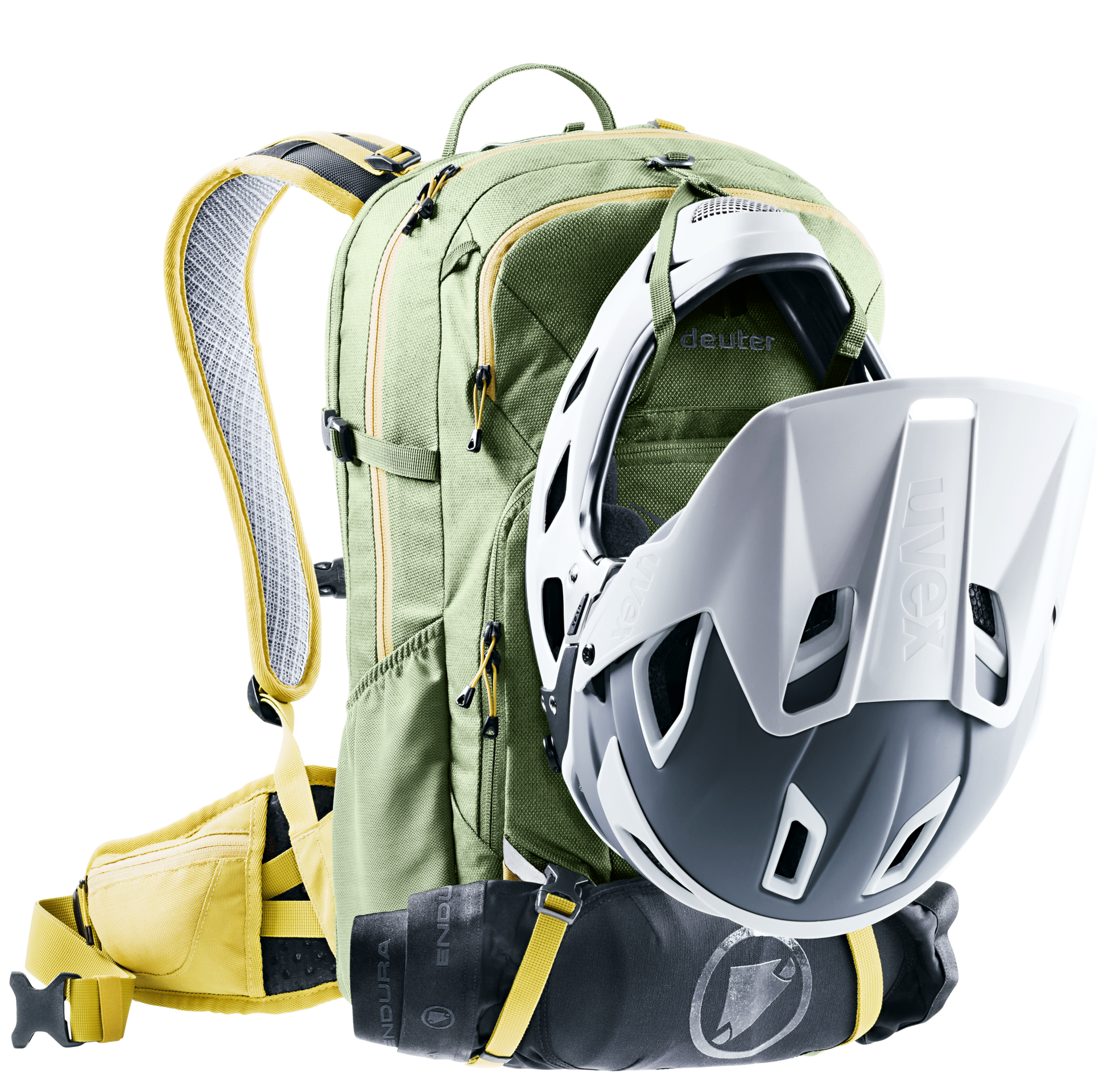 Mit dem neuen TÜV/GS zertifizierten Protektor-Rucksack Attack sind ambitionierte Biker*innen auf anspruchsvollen Trails bestens geschützt. Der herausnehmbare Rückenprotektor, der nach Deformation die ursprüngliche Form wieder annimmt, bietet zusammen mit dem Tragesystem einen Aufprallschutz, der dem Standard für Motorradfahrer entspricht. Zudem bleibt der Bike-Rucksack dank des hohen Hüftflossen-Ansatzes auch auf ruppigen Abfahrten fest am Rücken. Tragepassagen erleichtert der Carrying Guard und bei schweißtreibenden Auffahrten sind Helm und Protektoren ganz einfach außen am Rucksack zu befestigen.