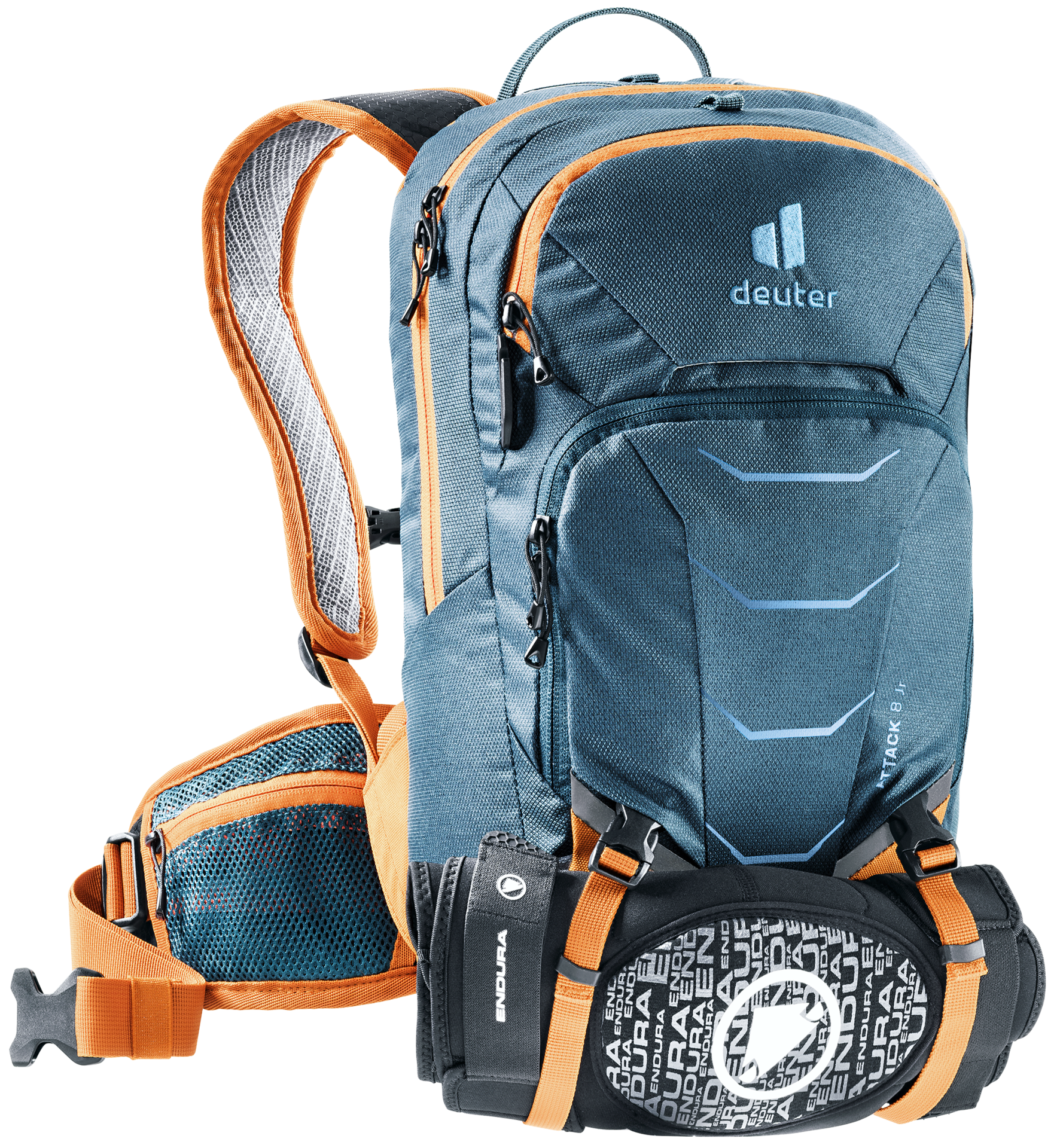 Unser Attack hat Nachwuchs bekommen: den Attack 8 JR. Mit dem TÜV/GS zertifizierten Protektor-Rucksack fühlen sich auch die jungen Wilden auf anspruchsvollen Trails bestens geschützt. Der herausnehmbare Rückenprotektor, der nach Deformation seine ursprüngliche Form wieder annimmt, bietet zusammen mit dem Tragesystem einen Aufprallschutz, der dem Standard für Motorradfahrer entspricht. Außerdem bleibt der Bike-Rucksack dank des hohen Hüftflossen-Ansatzes auch auf ruppigen Abfahrten fest am Rücken. Helm und Protektoren können zudem ganz einfach außen am Rucksack befestigt werden.