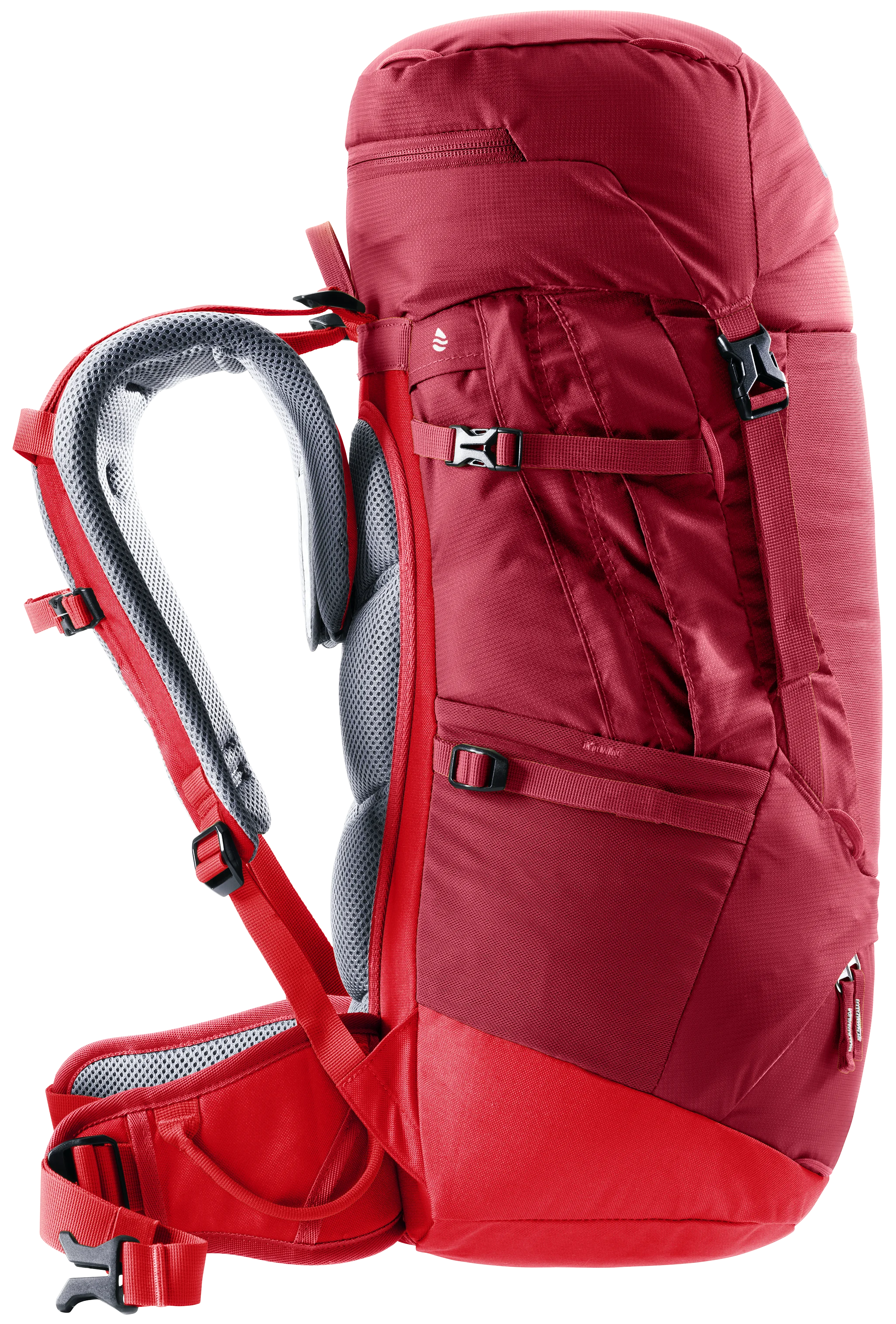 Am leichtesten lassen sich hohe Lasten komfortabel tragen, wenn Rucksack und Träger eine Einheit bilden. Hier setzt unser Aircontact-Prinzip an: Das Tragesystem liegt direkt am Körper an, das Gewicht wird nah am Körperschwerpunkt gehalten. Das garantiert volle Kontrolle und effektive Lastenübertragung. Gleichzeitig sorgen die atmungsaktiven Aircontact-Rückenpolster für spürbar angenehme Belüftung durch einen Pumpeffekt bei jeder Bewegung