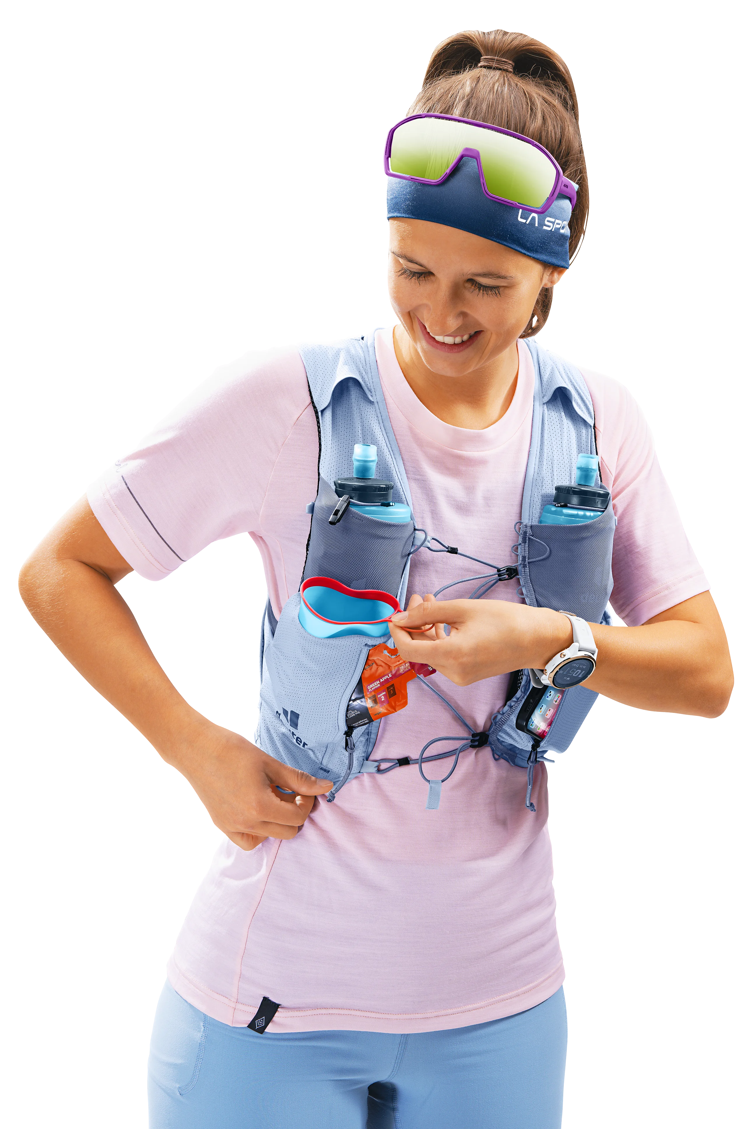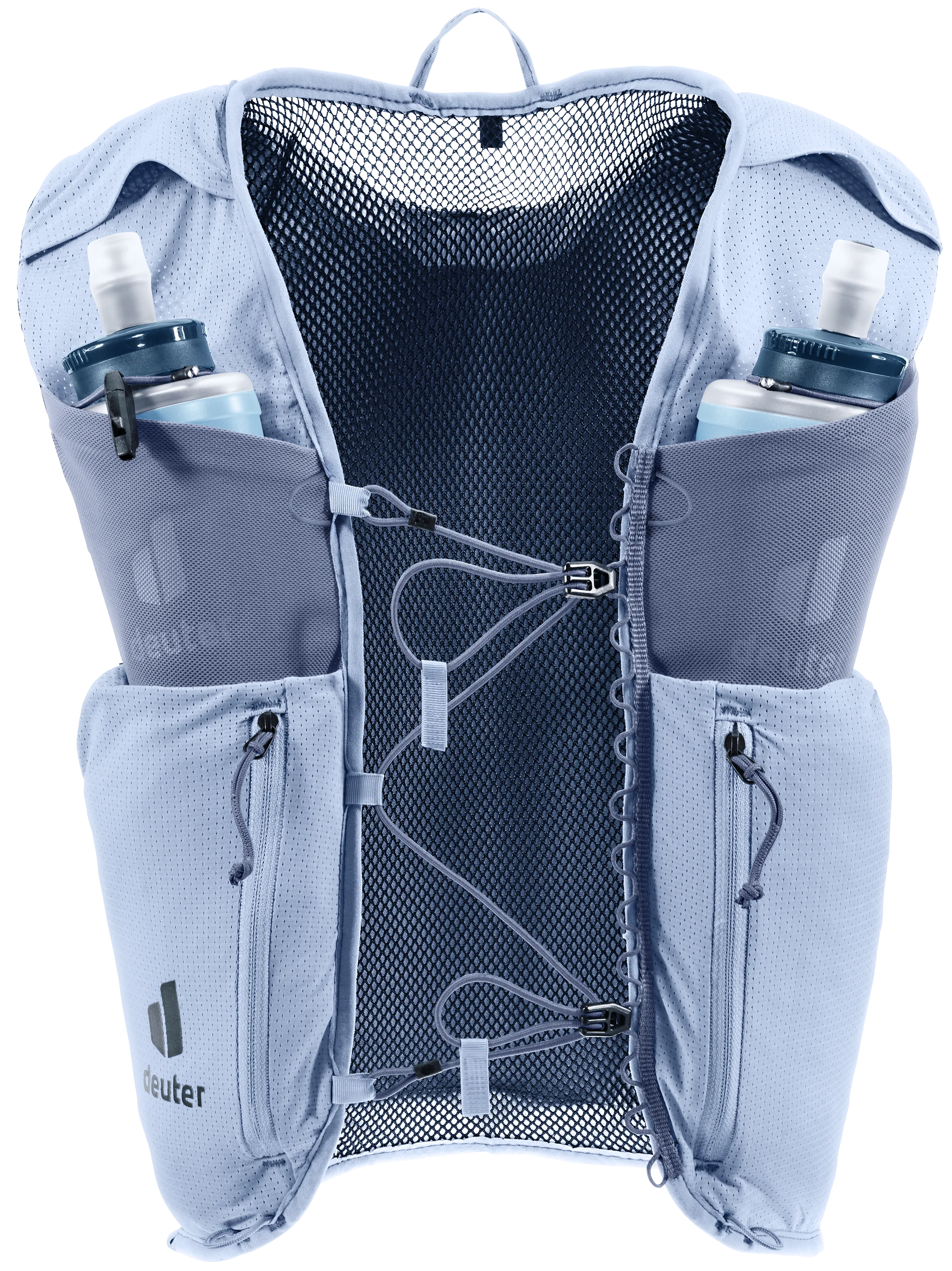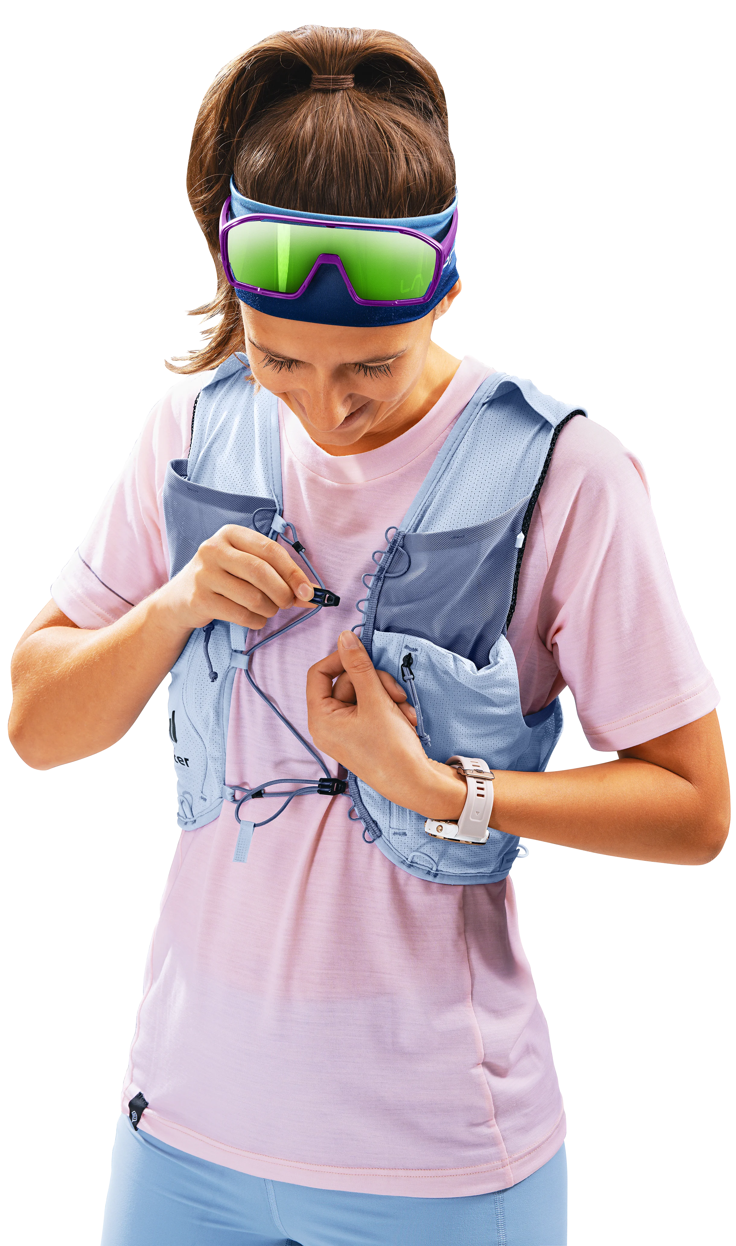 Die enge Passform und das besonders atmungsaktive Stretch-Material der Weste schmiegen sich reibungslos an den Oberkörper an. Zusätzlich ermöglicht die elastische Brustgurt-Konstruktion nicht nur ein schnelles, individuelles Verstellen und Befestigen, sondern auch ein komfortables Atmen bei jeder Intensität. Modulare elastische Befestigungskordeln für eine zusätzliche seitliche Kompression runden das Paket ab und sorgen so für optimalen Tragekomfort, festen, körpernahen Sitz und uneingeschränkte Bewegungsfreheit.