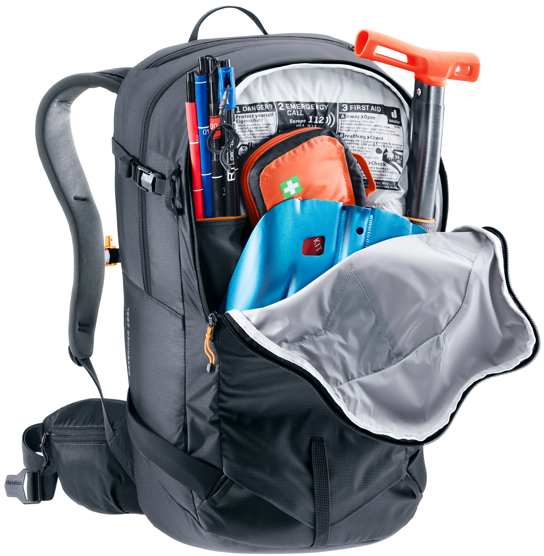 Das LiteSnow-Rückensystem bietet hohen Komfort bei minimalem Gewicht und verhindert dank innovativem Design und Material das Haften von Schnee und die Aufnahme von Feuchtigkeit. Mit knapp einem Kilo Gewicht kombiniert der Rucksack Leichtigkeit mit umfassender Funktionalität. Die große Rückenöffnung ermöglicht schnellen Zugriff auf das Hauptfach, während Skier, Snowboard, Pickel und Stöcke sicher auf der Rucksackfront befestigt bleiben können. Ein spezielles Fach für Lawinensicherheitsausrüstung sorgt für schnellen Zugriff im Notfall.