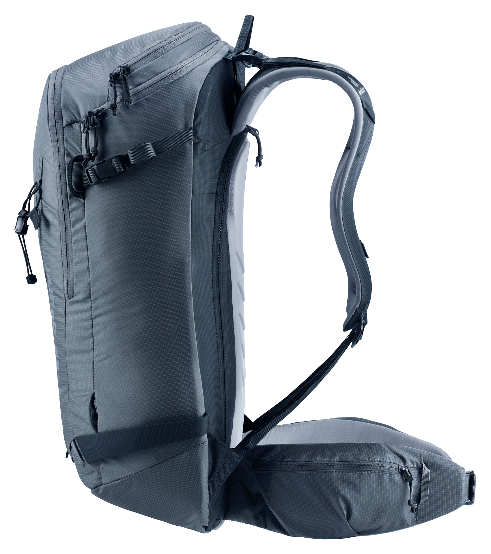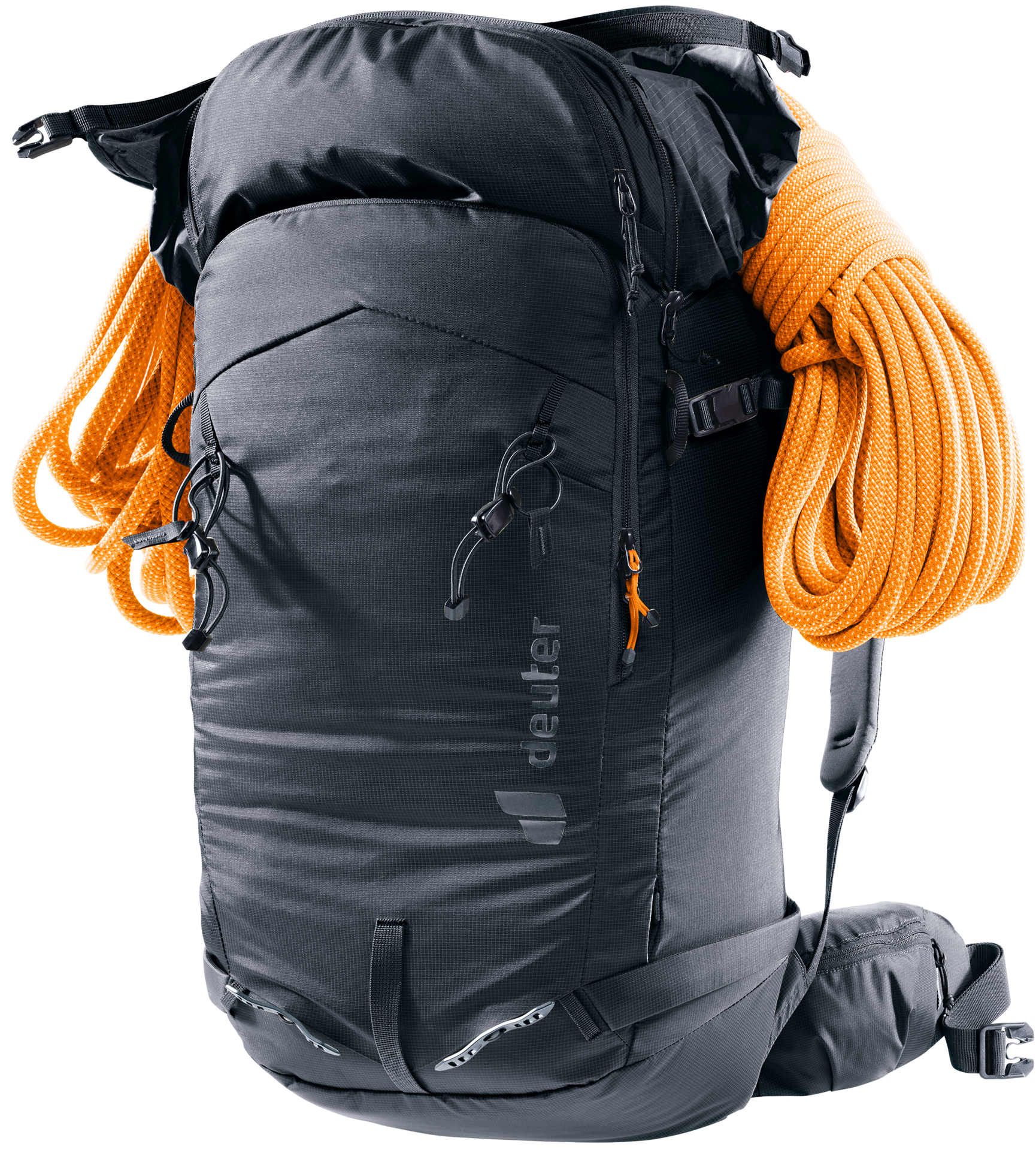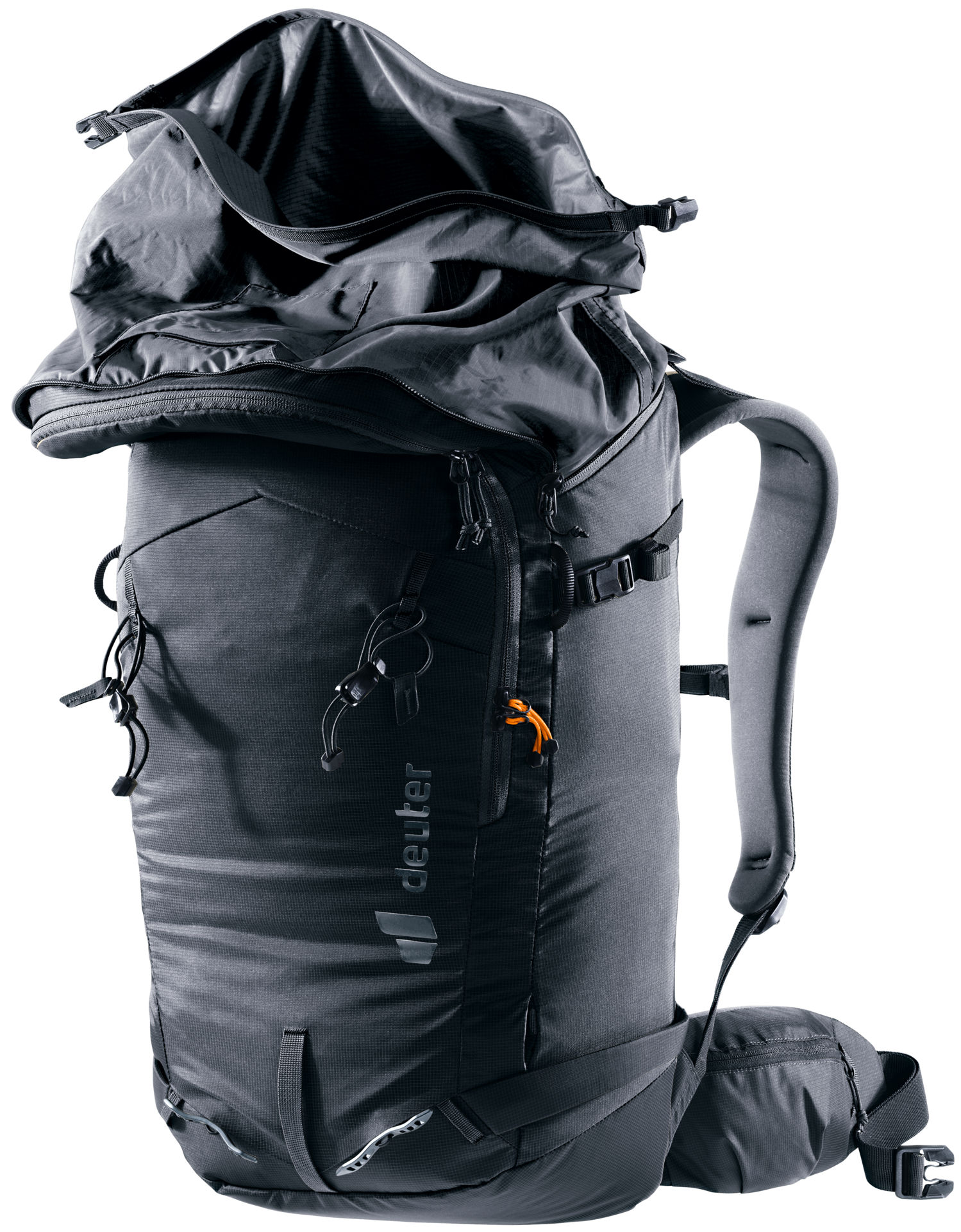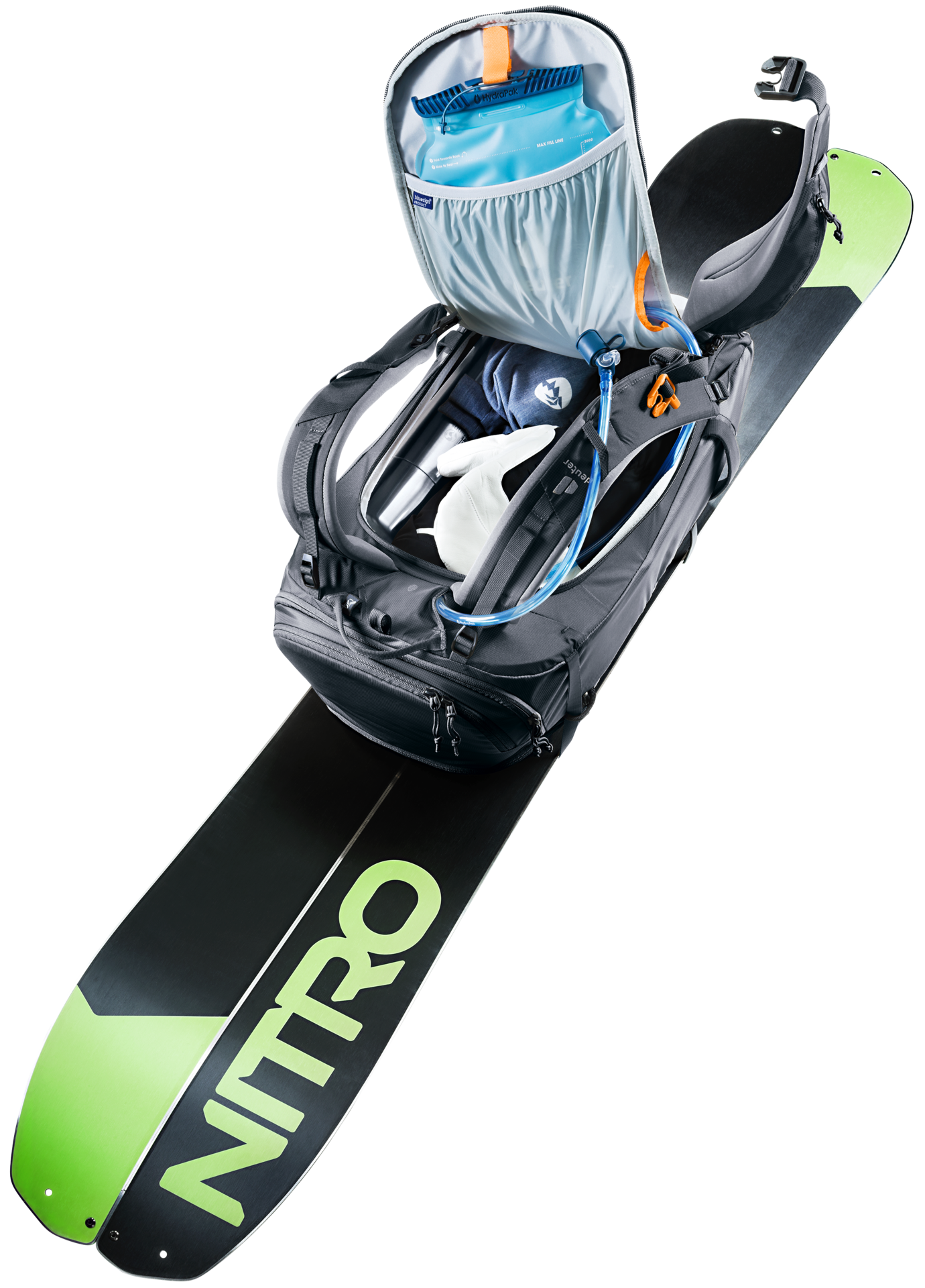 Das LiteSnow-Rückensystem bietet hohen Komfort bei geringem Gewicht und verhindert dank innovativem Design und Material das Haften von Schnee und die Aufnahme von Feuchtigkeit. Dank Roll-Top kann das Volumen um 10 Liter erweitert werden. Verstaubare Riemen sorgen für sichere Fixierung von Seil, Skiern oder Snowboard. Und auch Pickel und Stöcke können fix auf der Rucksackfront befestigt werden. Die große Rückenöffnung ermöglicht einen schnellen Zugriff auf das Hauptfach. Ein spezielles Fach für Lawinensicherheitsausrüstung gewährleistet einen schnellen Zugriff im Notfall.