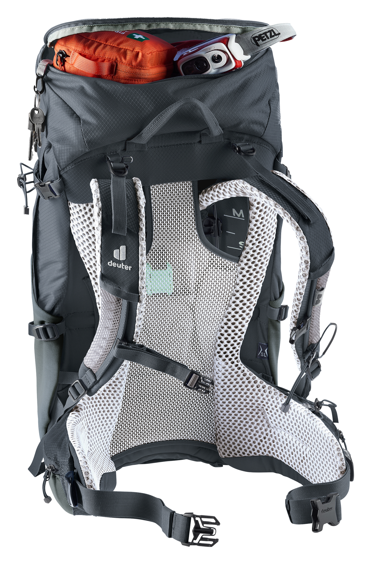 Dieses Modell ist als SL-Version verfügbar. Das frauenspezifische der SL-Rückenlänge zeigt sich bereits bei der Rückenlänge: Frauen haben im Durchschnitt einen nicht ganz so langen Rücken wie Männer. Das Tragesystem der SL-Modelle ist deshalb etwas kürzer angelegt als bei den deuter Standard-Rucksäcken. Zudem ist das Tragesystem speziell an die weibliche Anatomie angepasst. Mehr Infos über unsere Passformen