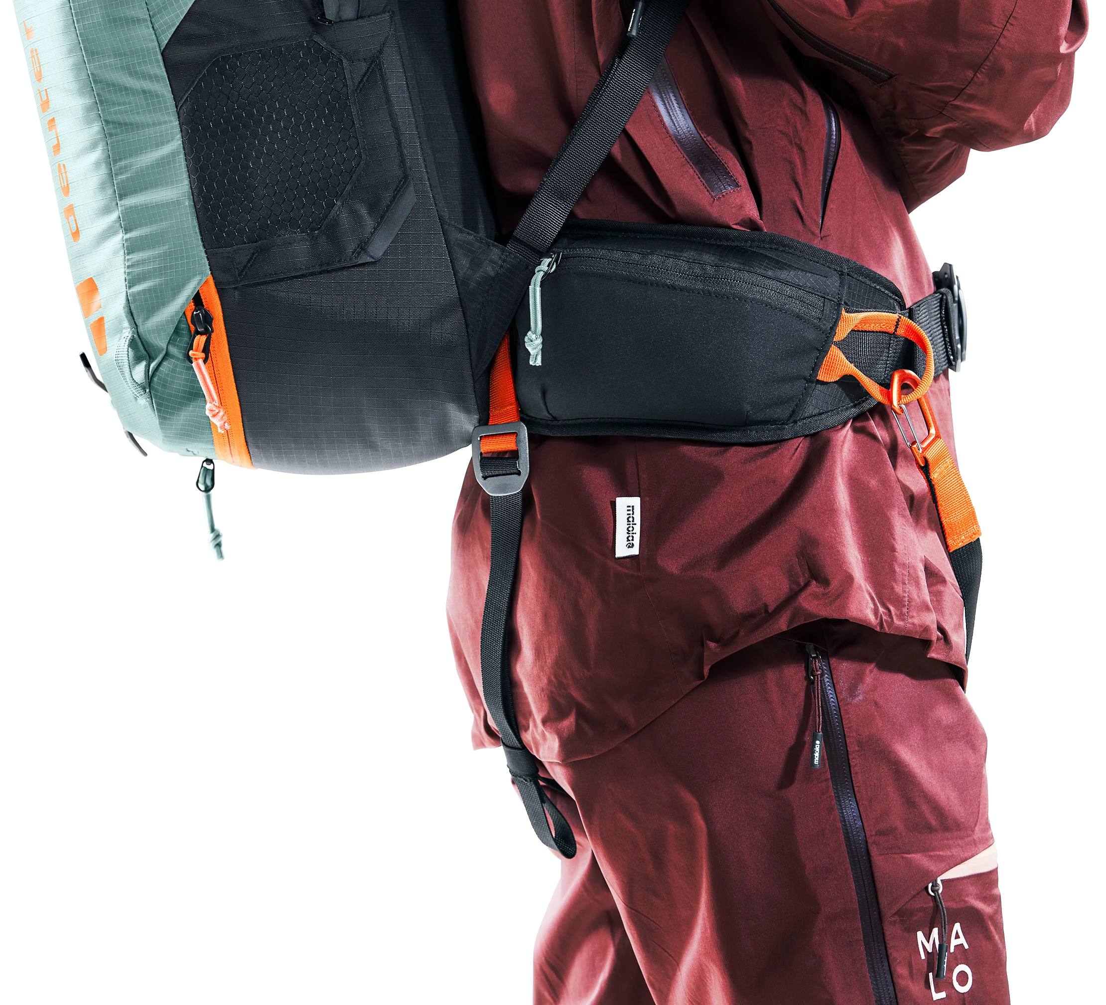 The waist belt, fully-adjustable sternum strap and leg safety strap all work together to prevent the backpack from being ripped off during an avalanche. The leg strap is also easily secured, without having to undo the waist belt.