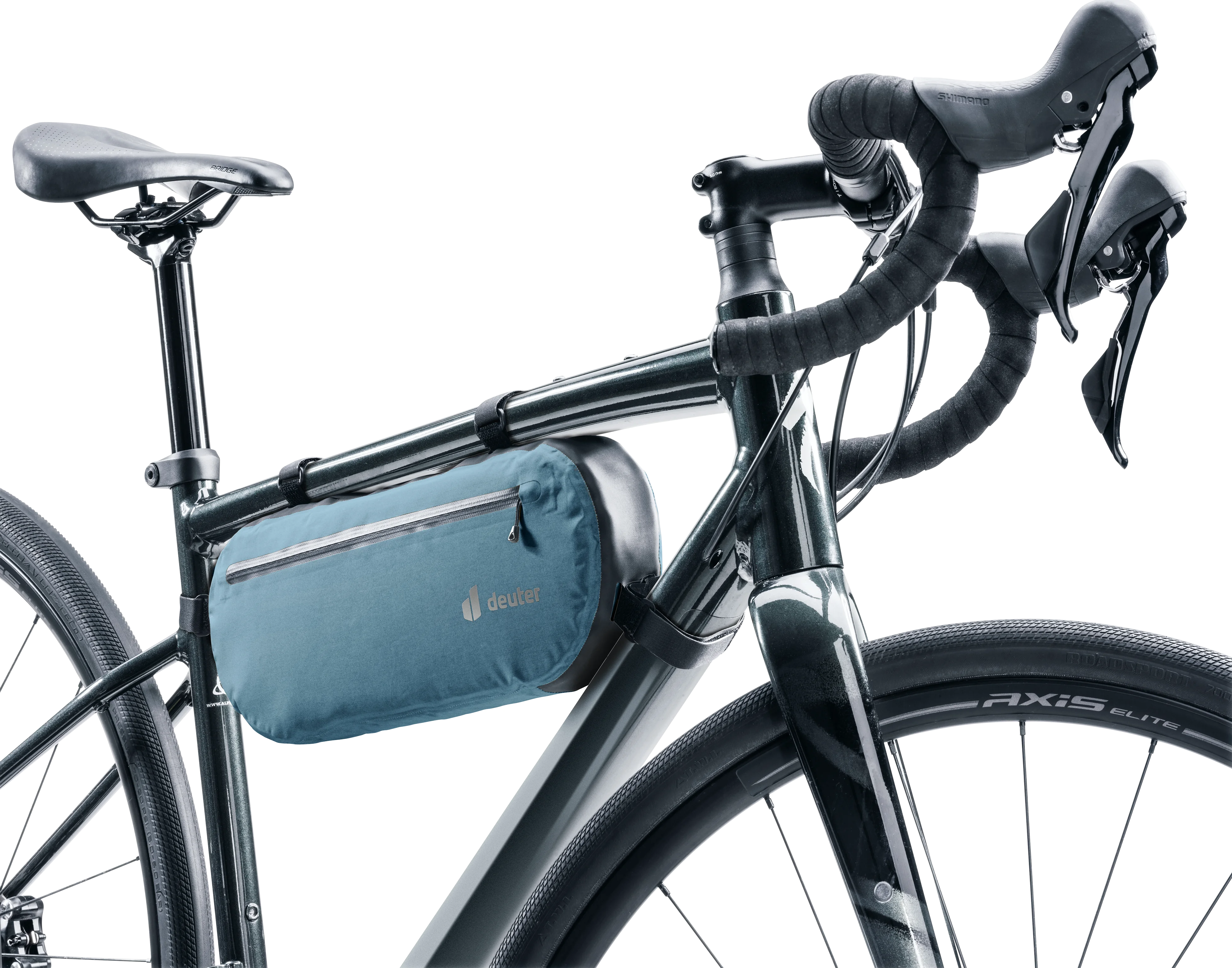 La construcción en dos piezas de las bolsas del manillar y del sillín permite cargarlas y descargarlas rápidamente. Durante un descanso rápido, la bolsa seca se puede desmontar fácilmente mientras el arnés permanece en la bicicleta.