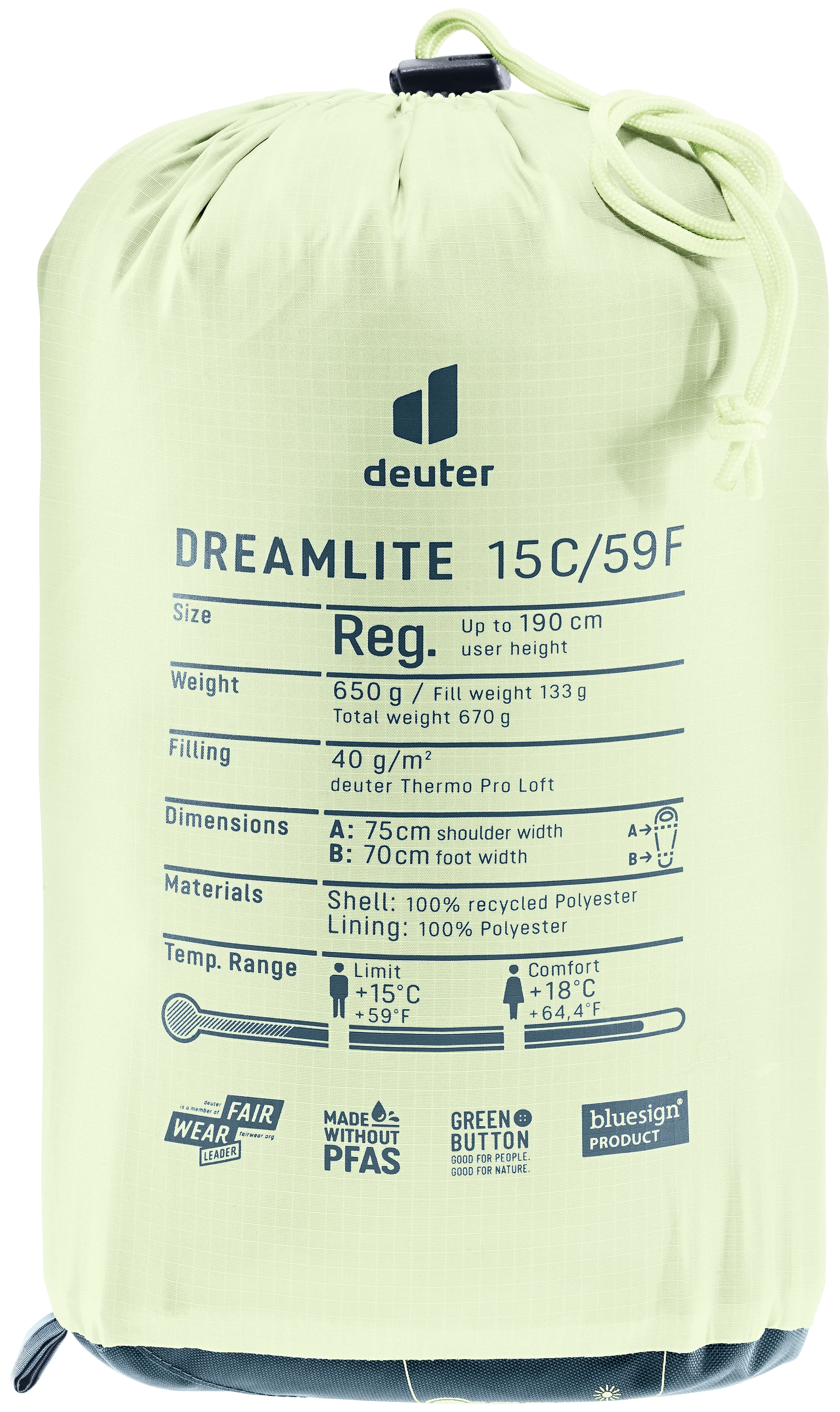THE LIMIT TEMPERATURE is based on the lowest temperature at which an ‘average’ adult male (25 yrs. / 70 kg / 173 cm) can expect to sleep comfortably in a relaxed position. An experienced user can optimise the insulation qualities by his choice of clothing and further factors.