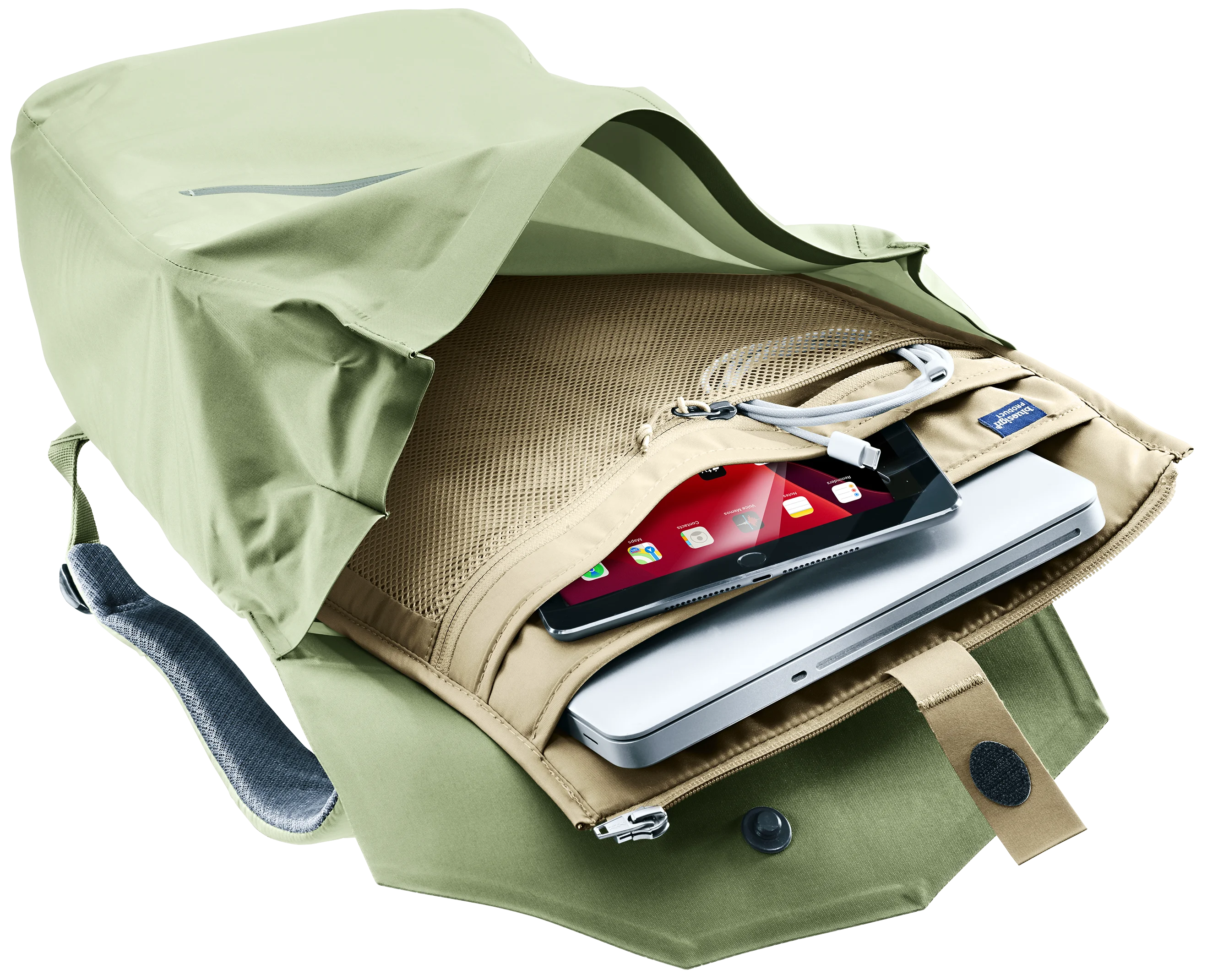 - Unidad organizadora con cremallera para tabletas, documentos y compartimento reforzado para portátil (16")