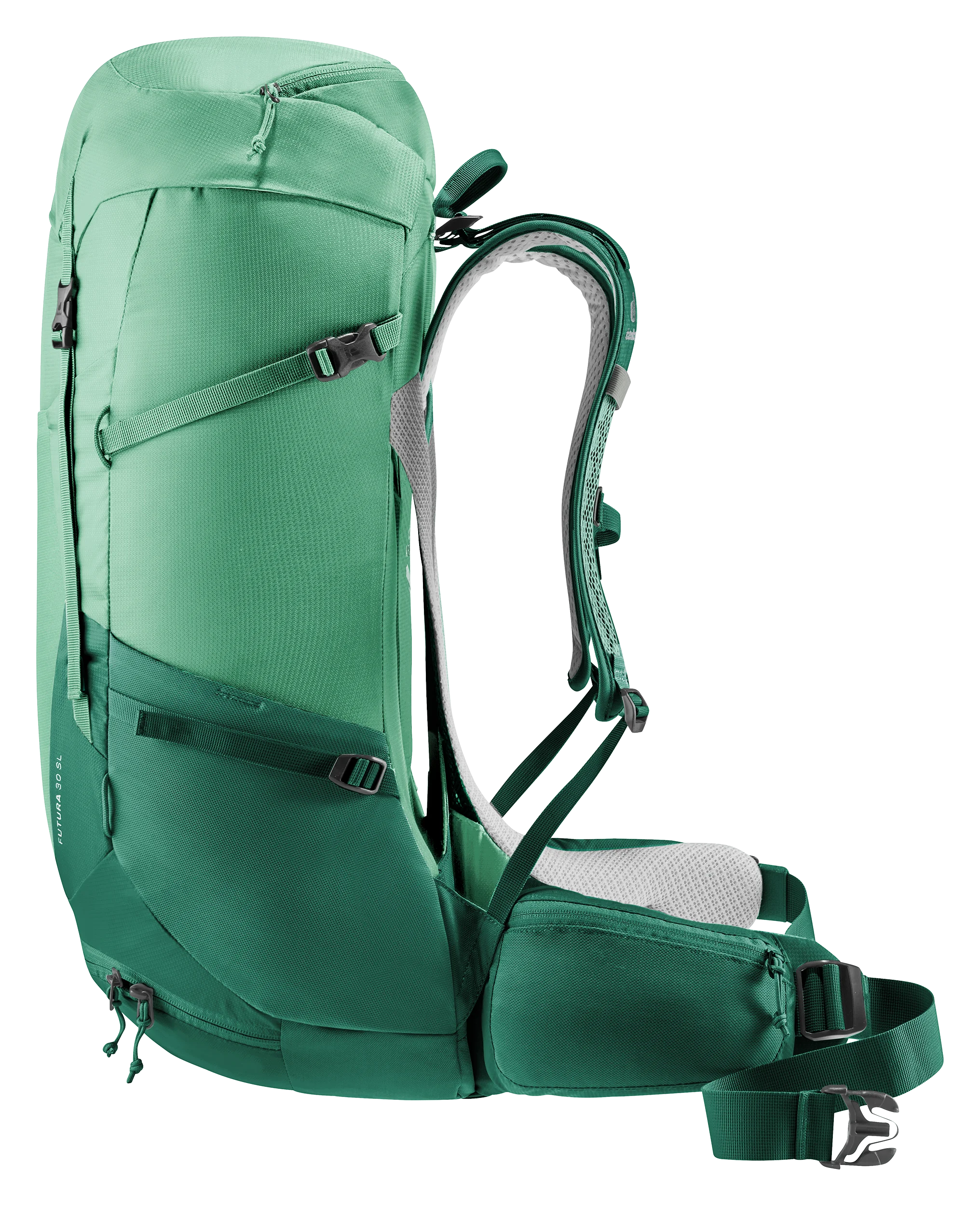 El Futura SL está especialmente diseñado para la anatomía femenina debido a su espalda más corta, sus tirantes más estrechos y sus aletas de la cadera de forma cónica, lo que garantiza una mayor comodidad en las excursiones de varios días. Además, la nueva malla del sistema de espalda Aircomfort ofrece la máxima ventilación y reduce así la sudoración hasta un 25%. El compartimento inferior separado también permite un fácil acceso al contenido de la mochila.